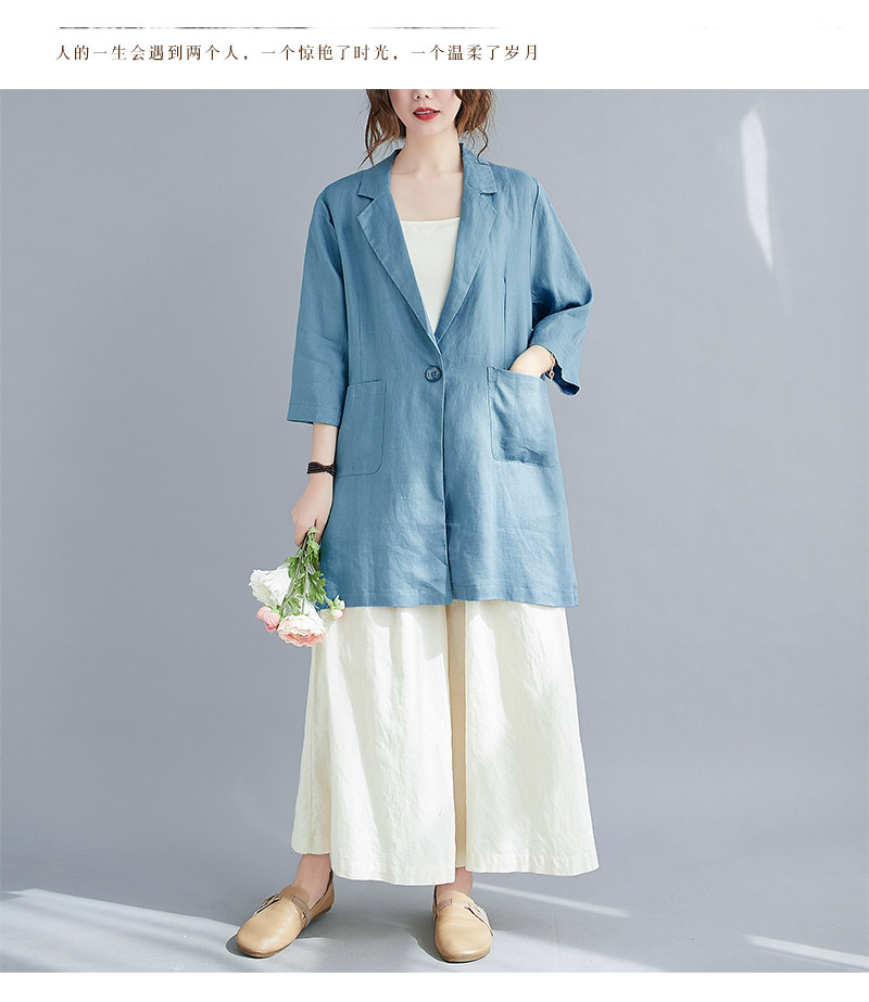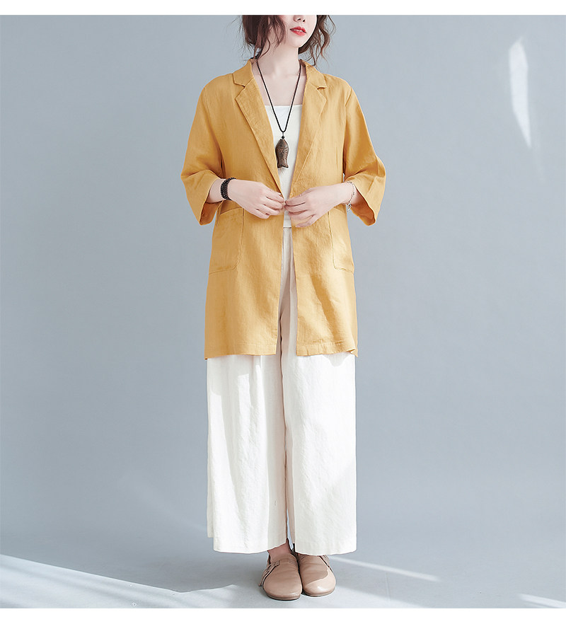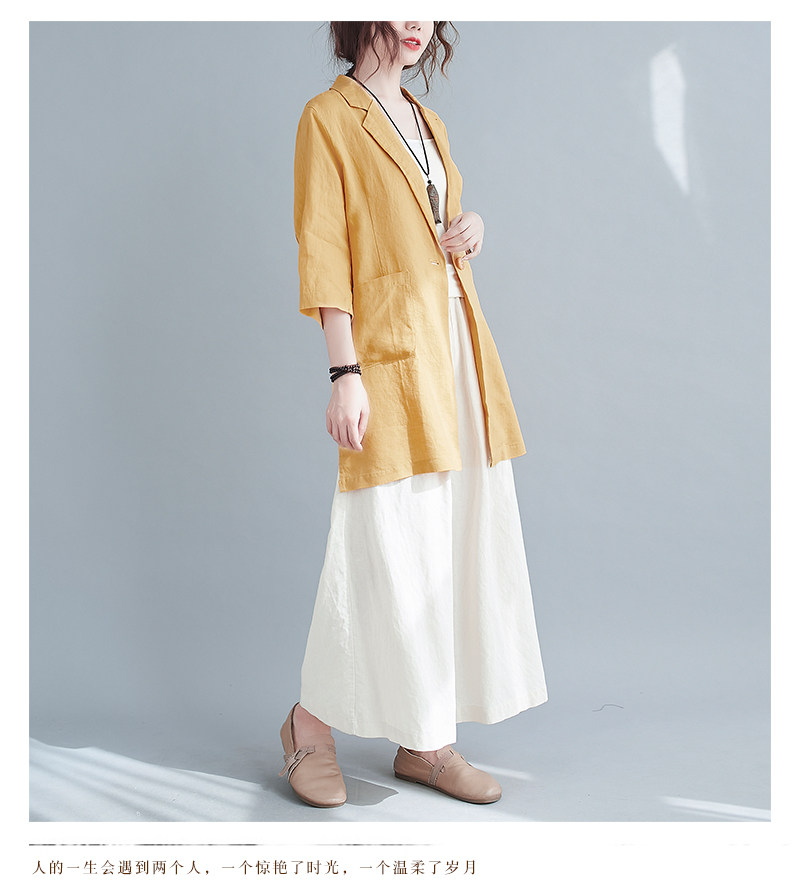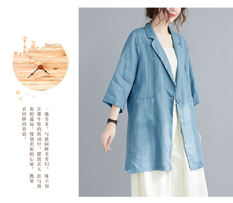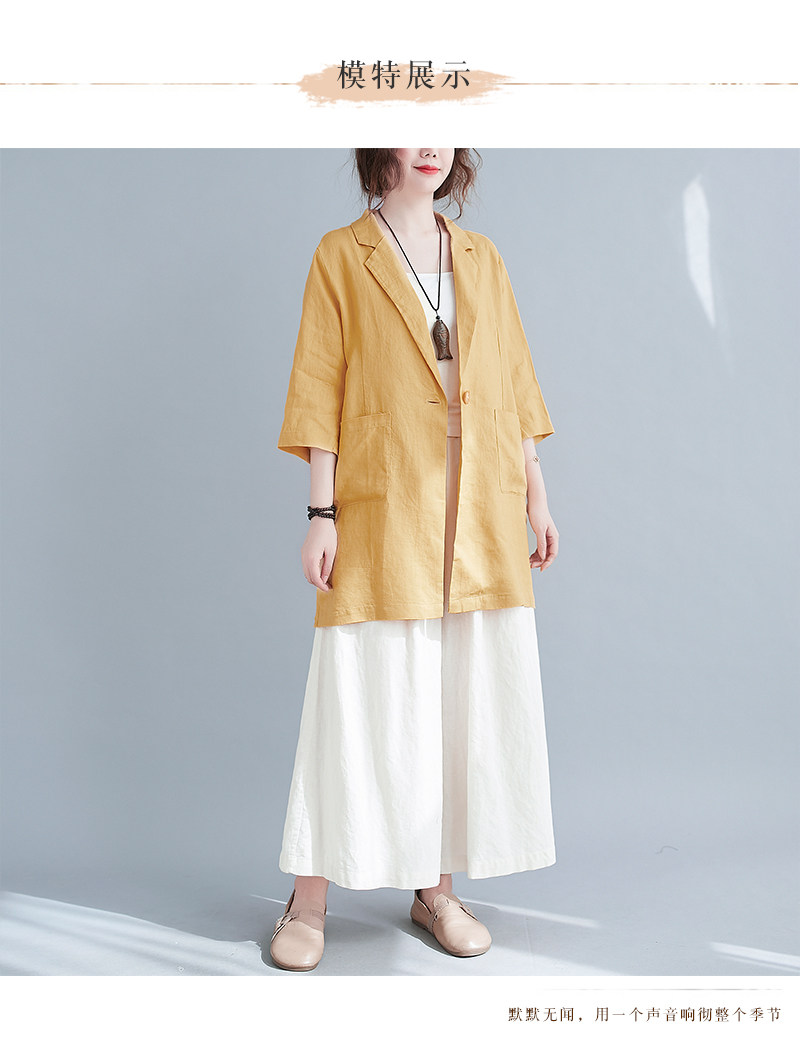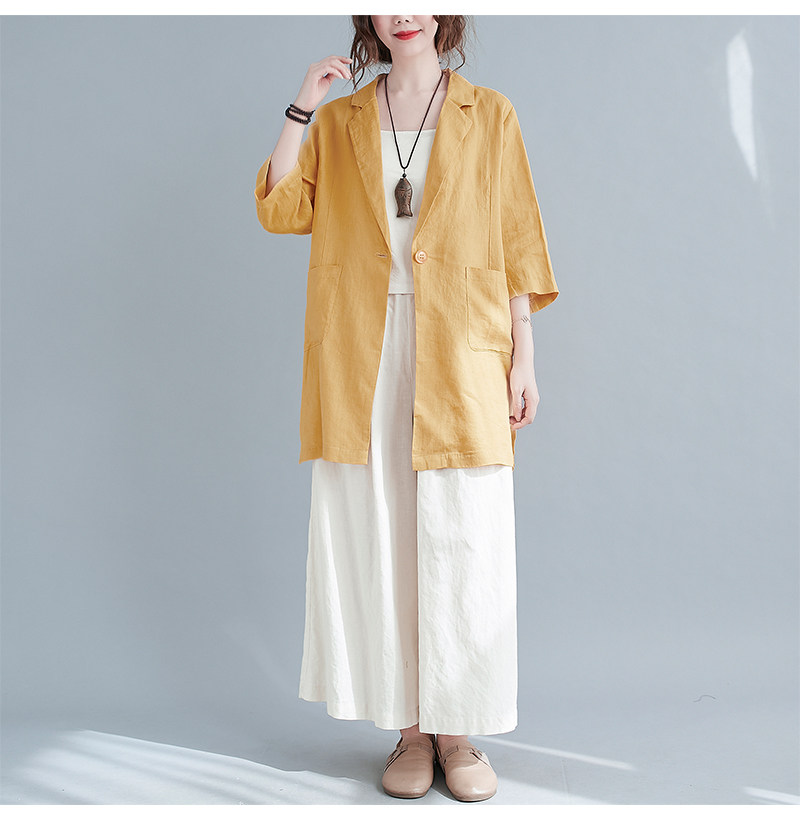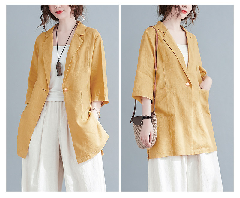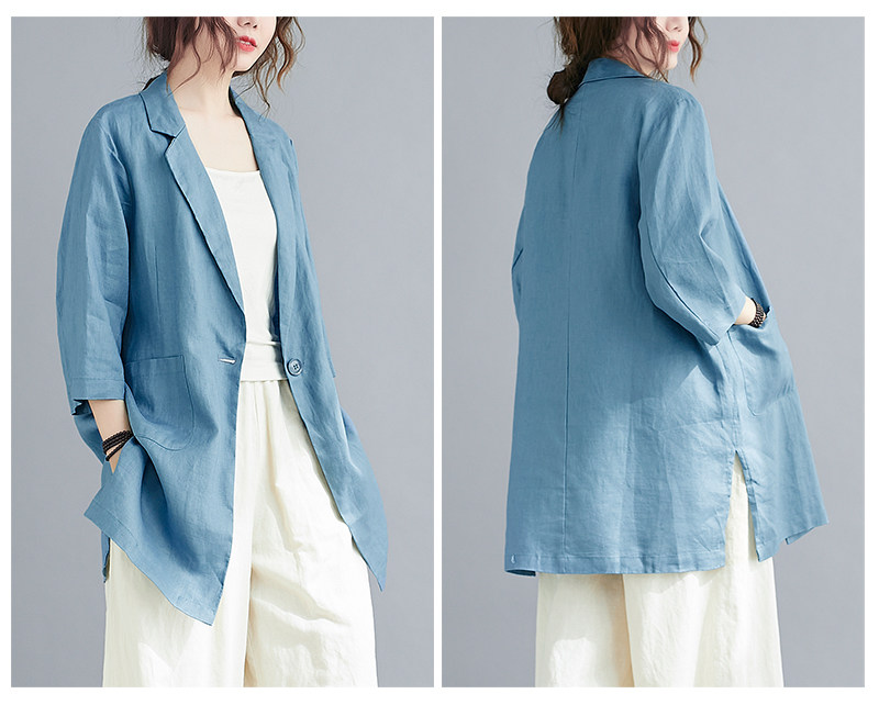 Тонкий летний длинный пиджак классического кроя, городской стиль, средней длины, из хлопка и льна