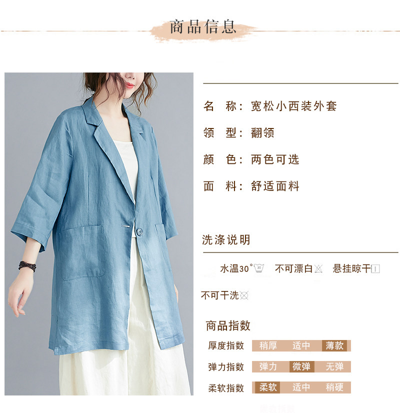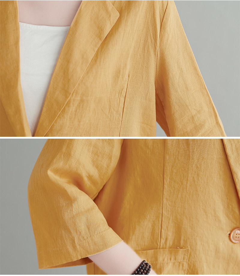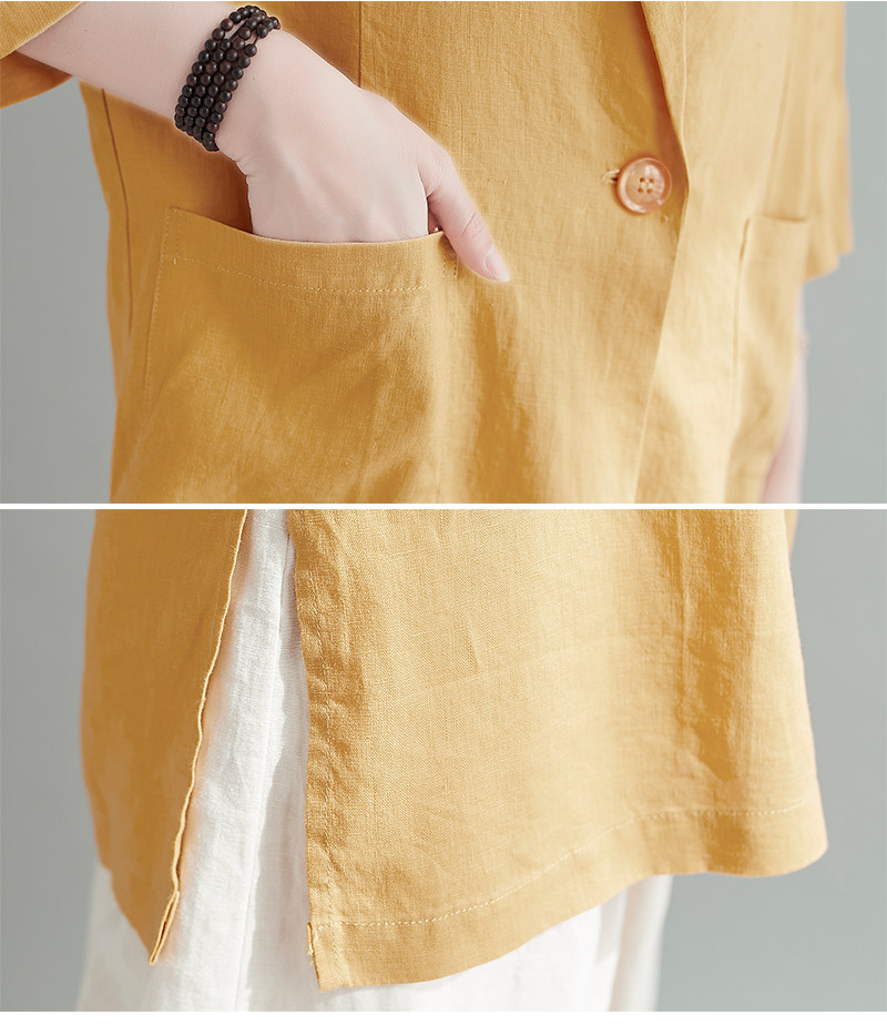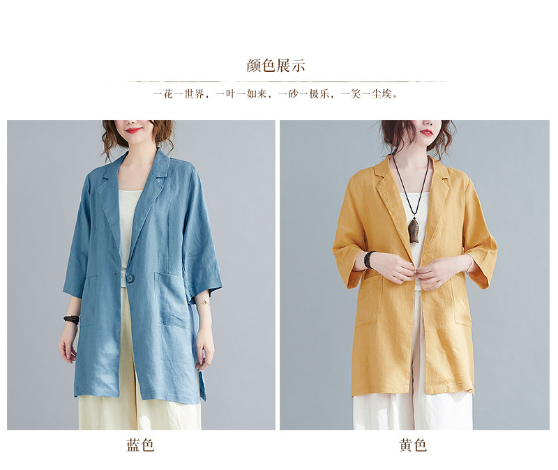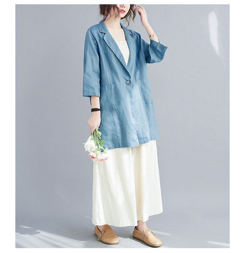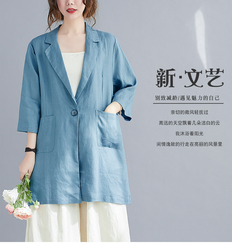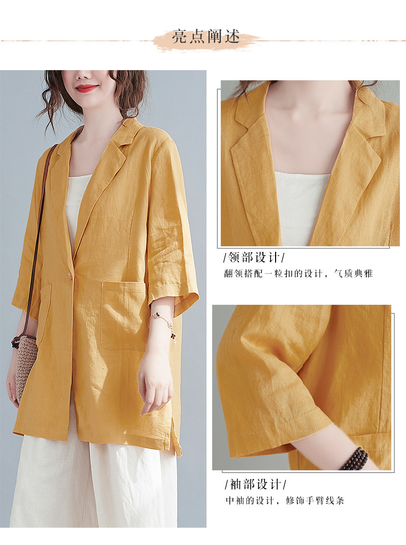 Тонкий летний длинный пиджак классического кроя, городской стиль, средней длины, из хлопка и льна
