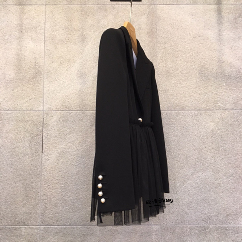 Черный осенний длинный пиджак классического кроя, коллекция 2021, в корейском стиле, средней длины