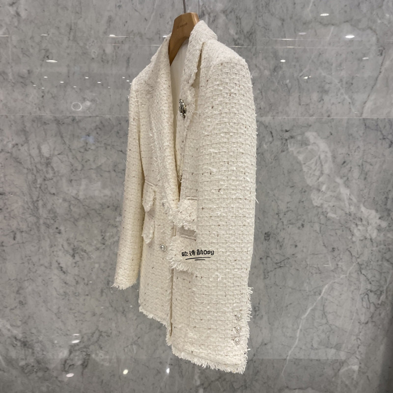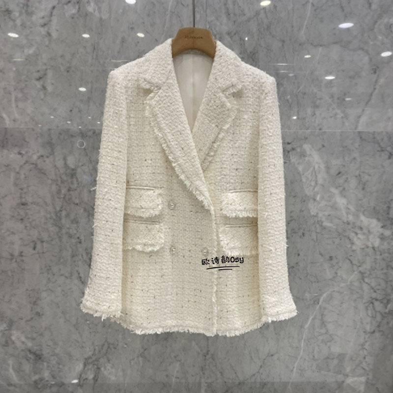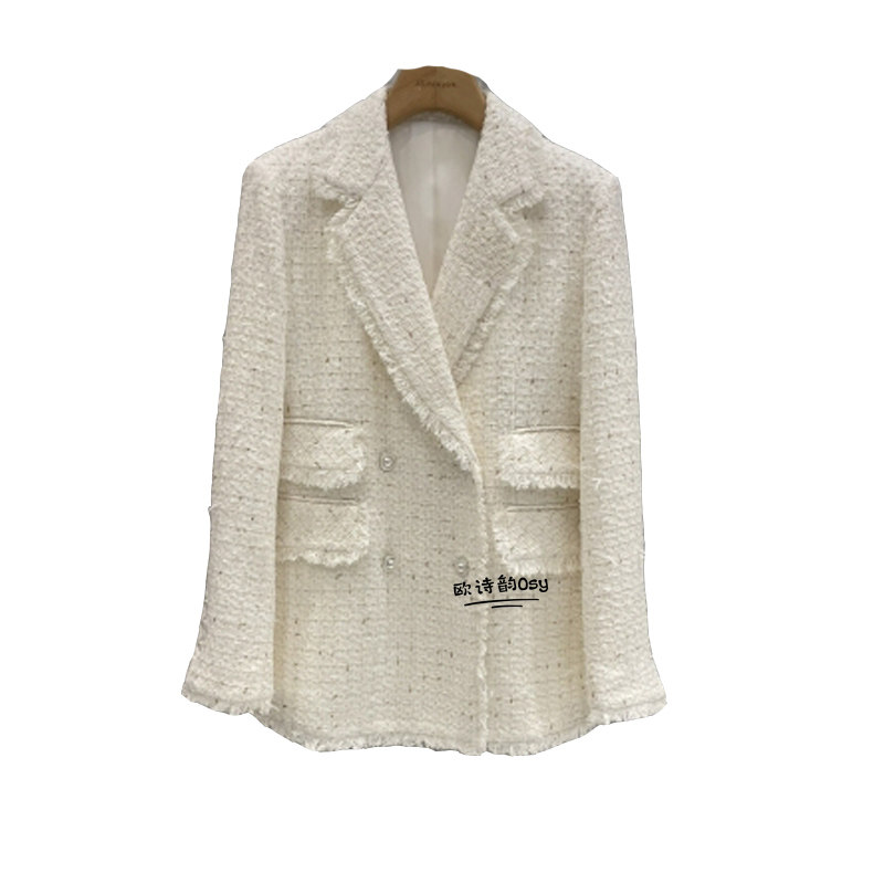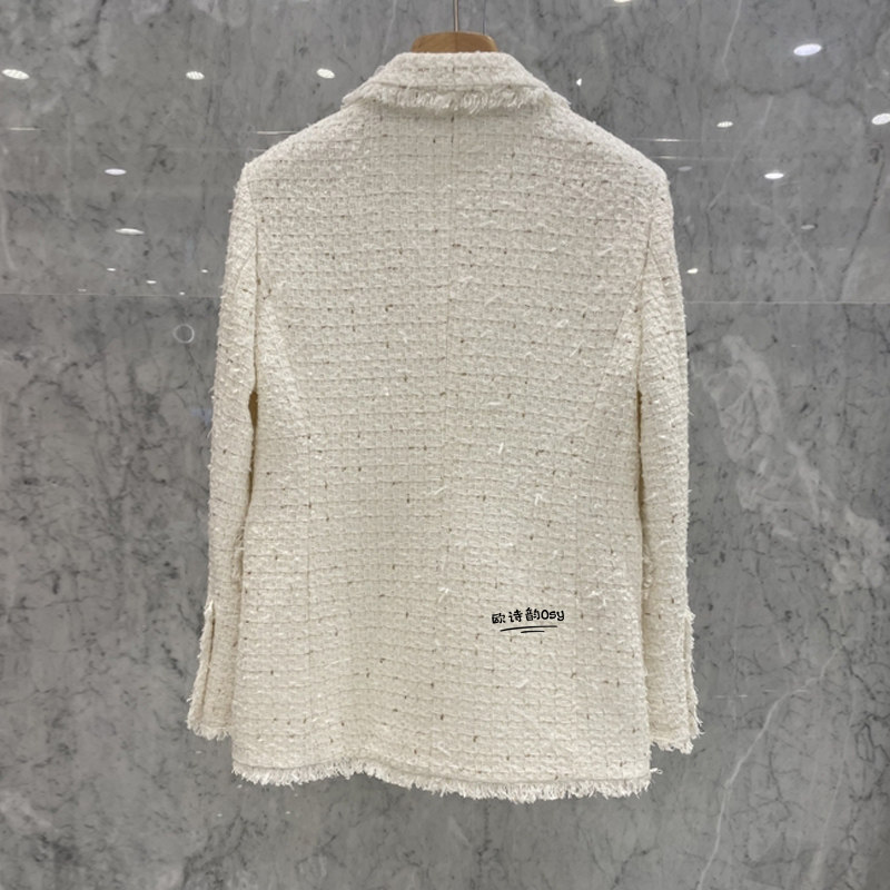 Бежевый весенний модный пиджак классического кроя, в стиле Шанель, в корейском стиле, популярно в интернете