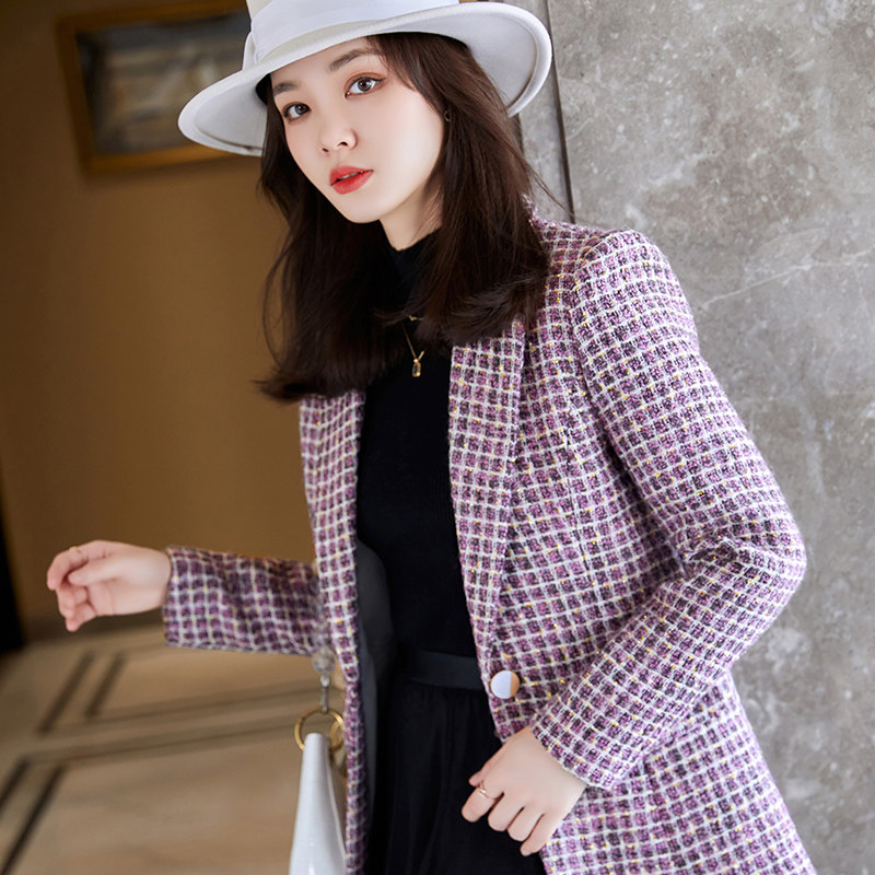 - Сиреневый пиджак классического кроя