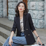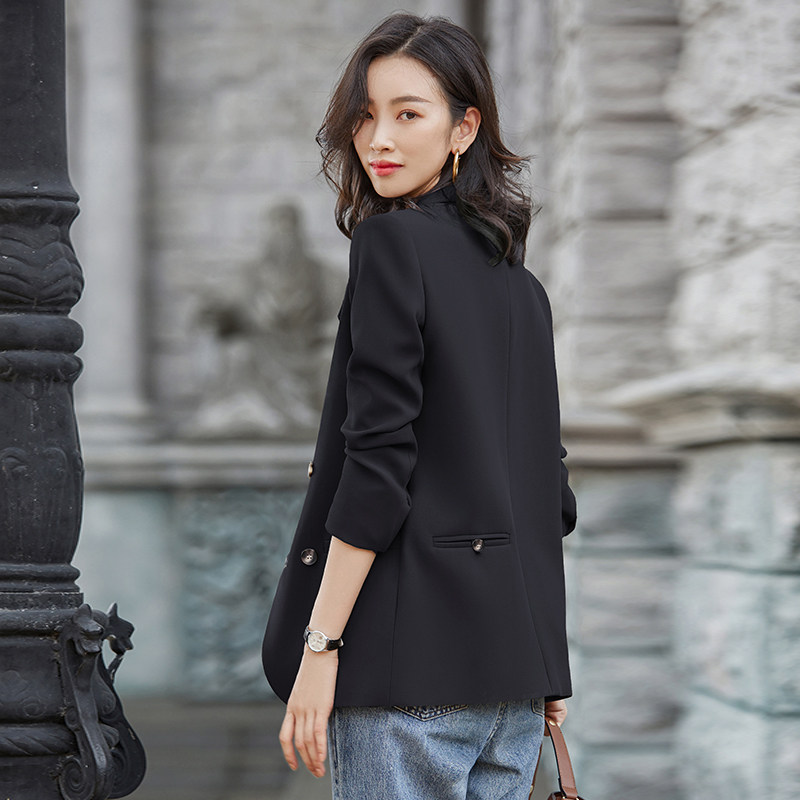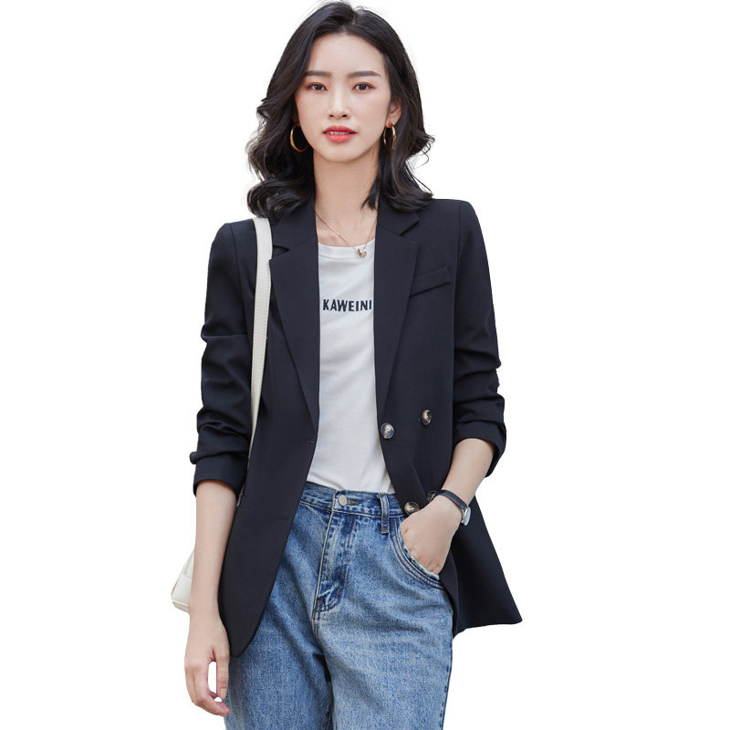 Черный осенний короткий дизайнерский пиджак классического кроя, подходит для подростков, тренд сезона