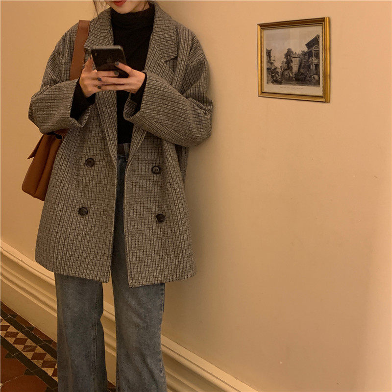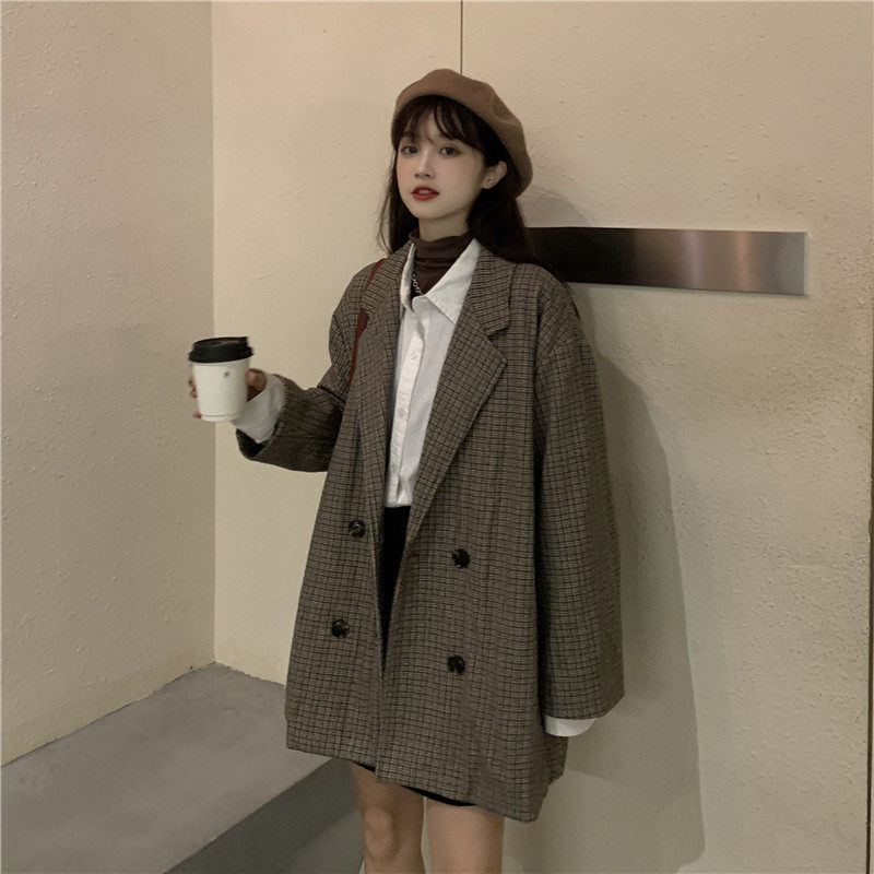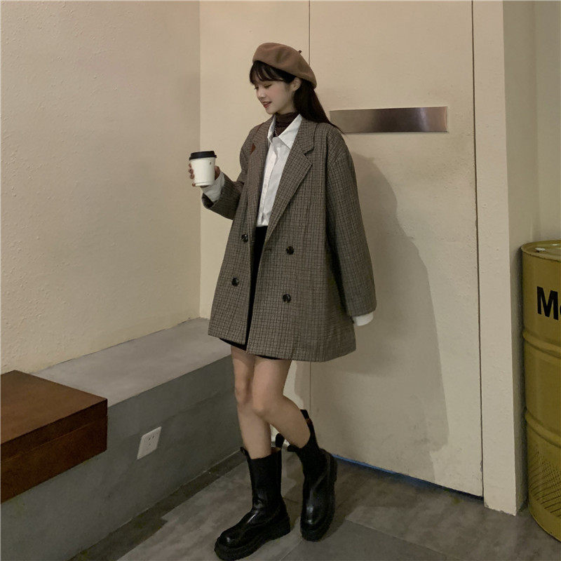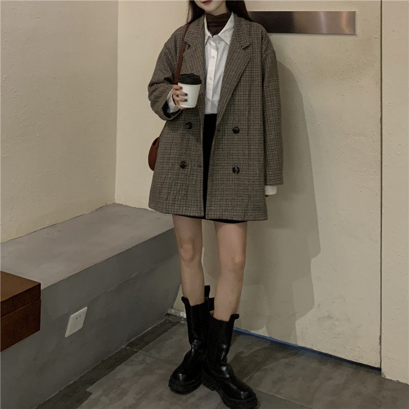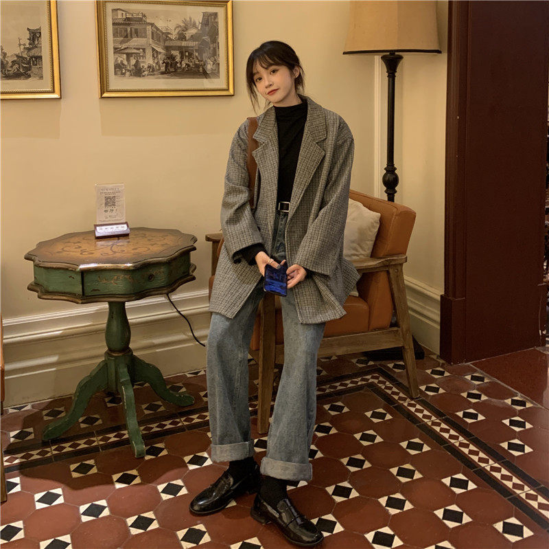 Осенний комплект, корейский универсальный пиджак классического кроя, куртка, свободный крой, в британском стиле, стиль, увеличенная толщина