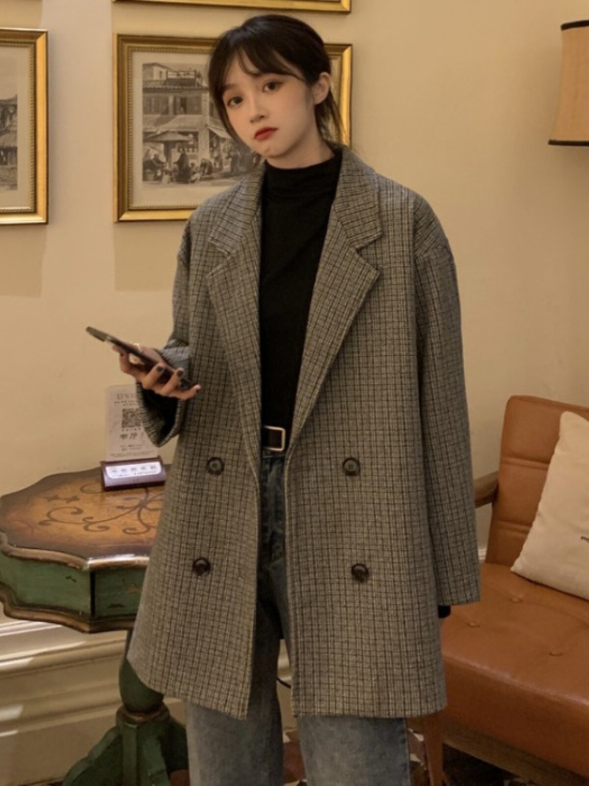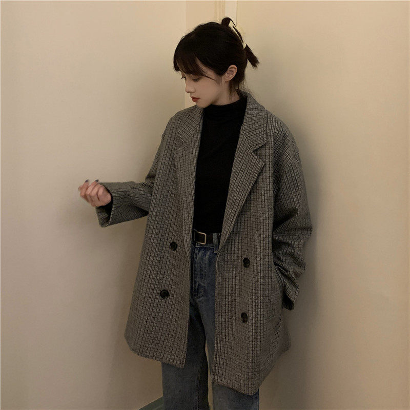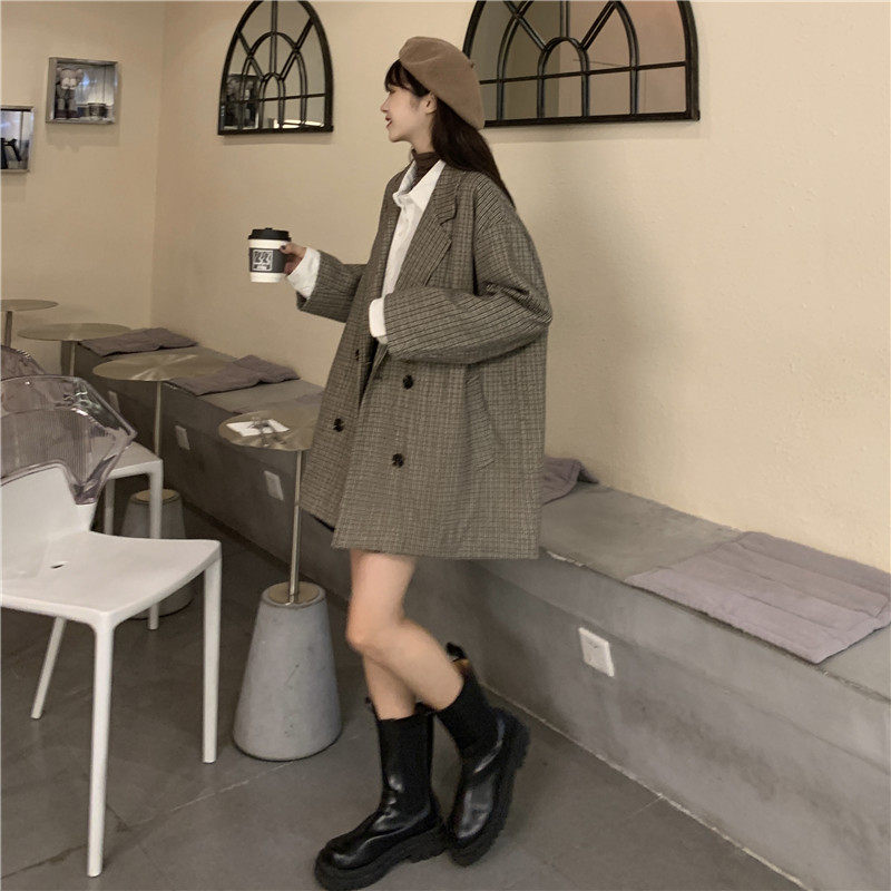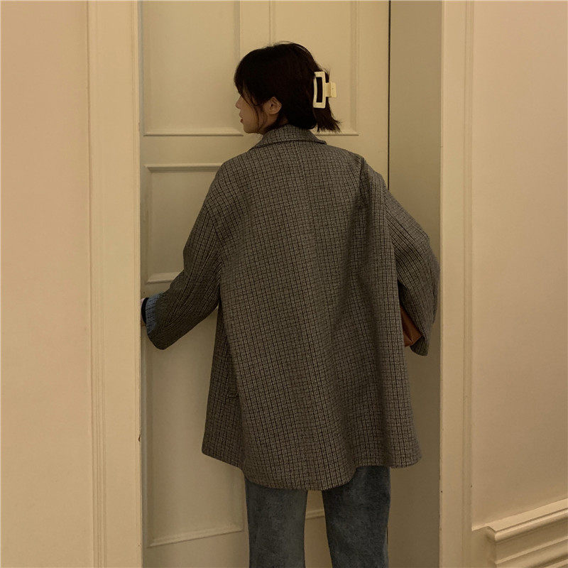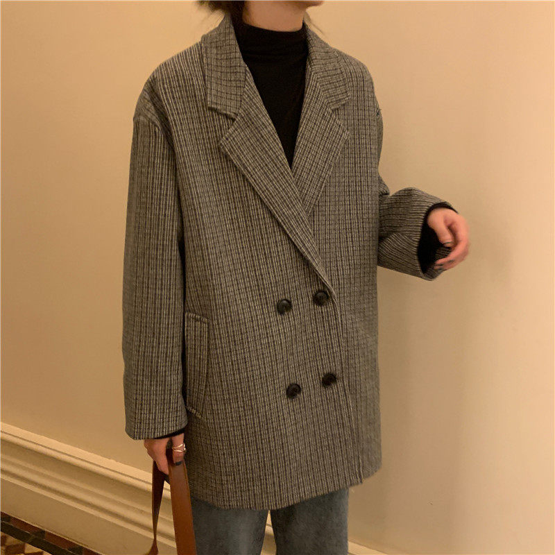 Осенний комплект, корейский универсальный пиджак классического кроя, куртка, свободный крой, в британском стиле, стиль, увеличенная толщина