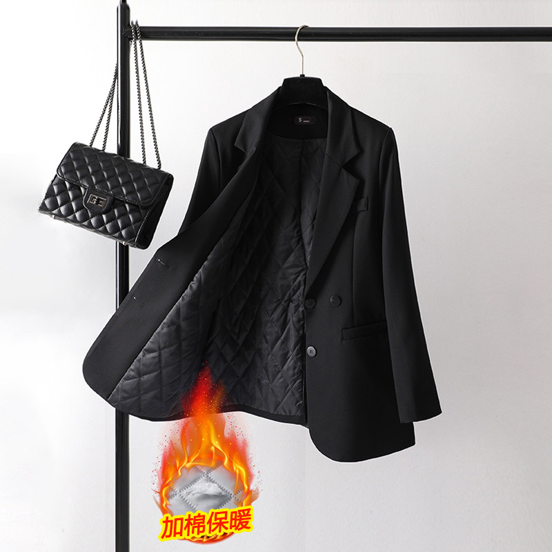 Черный демисезонный дизайнерский модный пиджак классического кроя, увеличенная толщина, тренд сезона, подходит для подростков