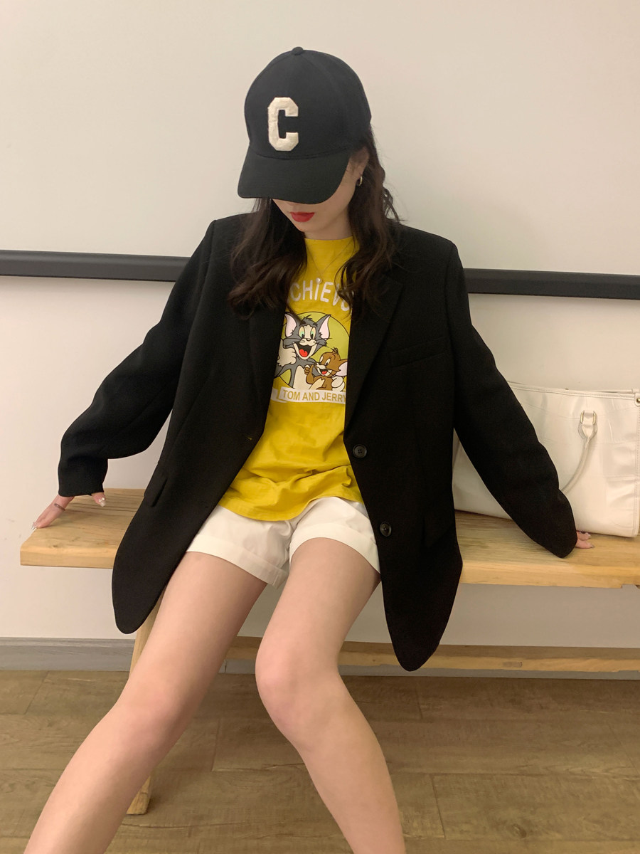 Осенний пиджак классического кроя для отдыха, изысканный стиль, в корейском стиле, яркий броский стиль, по фигуре, оверсайз
