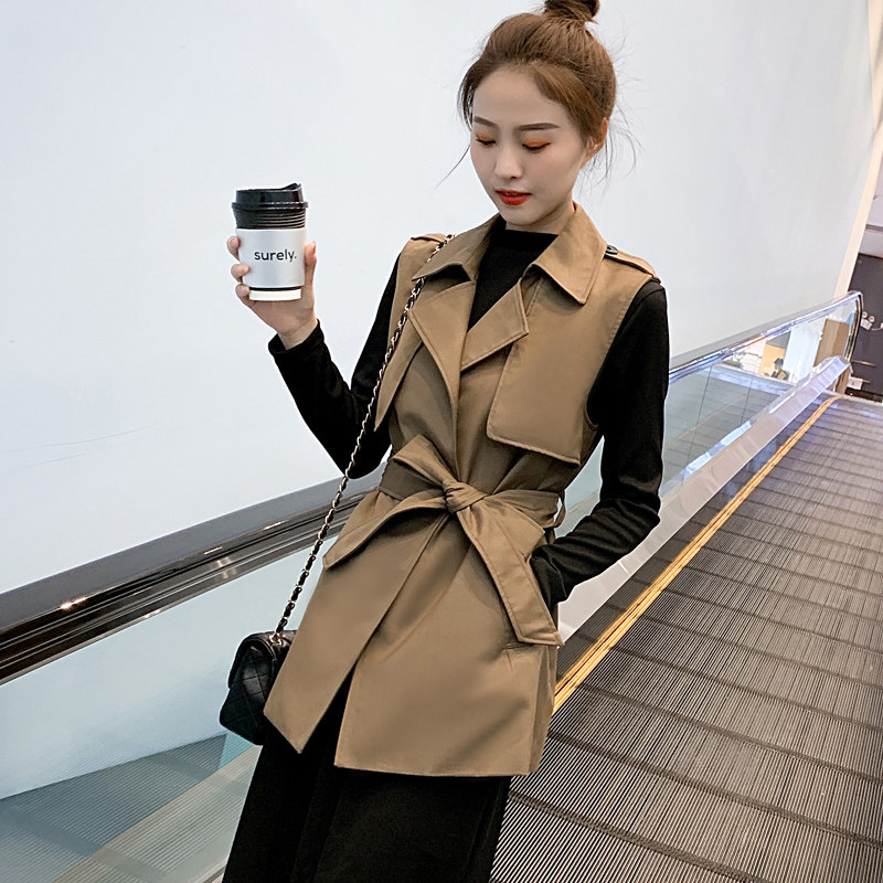 Плащ без рукавов, жилет, трикотажное платье, осенний комплект, приталенный корсет, куртка