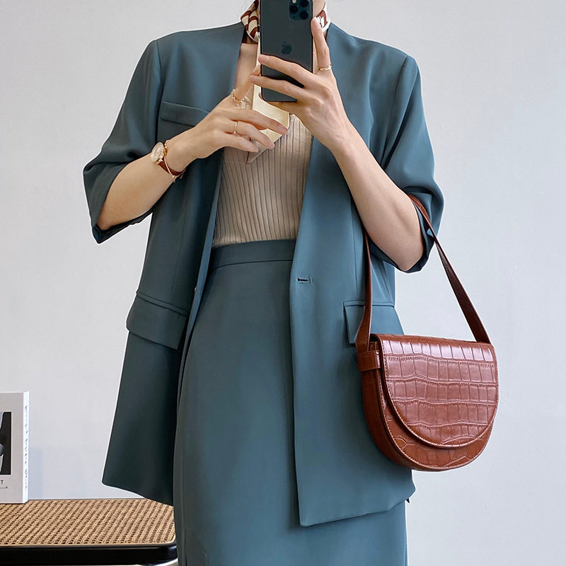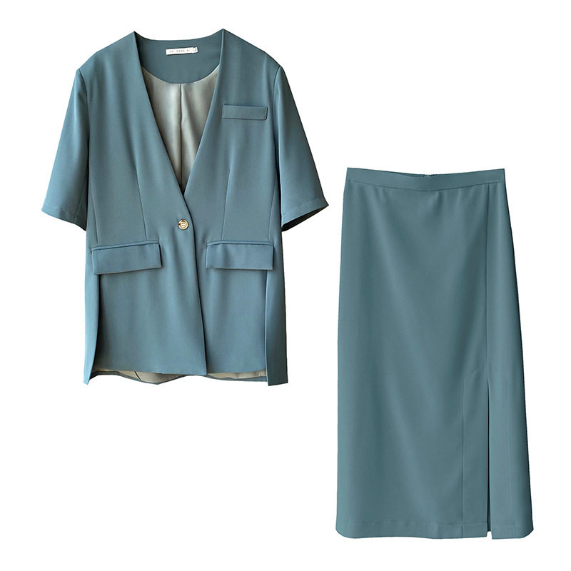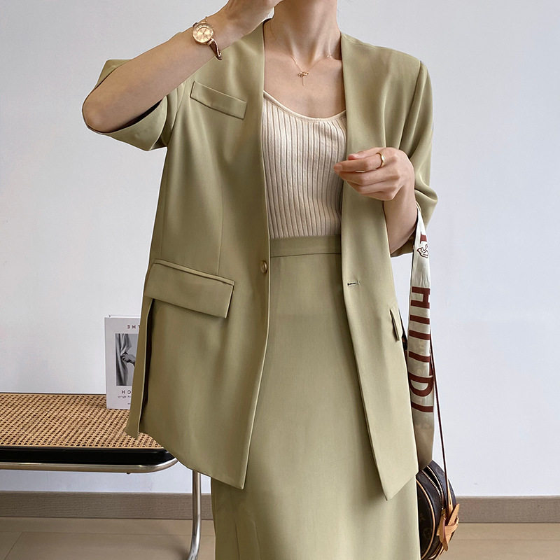 Небольшой дизайнерский летний пиджак классического кроя, тонкий комплект, футболка, юбка, тренд сезона, короткий рукав