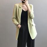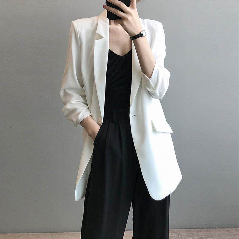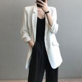 Шифоновый тонкий летний длинный белый пиджак классического кроя для отдыха, свободный крой, популярно в интернете, средней длины
