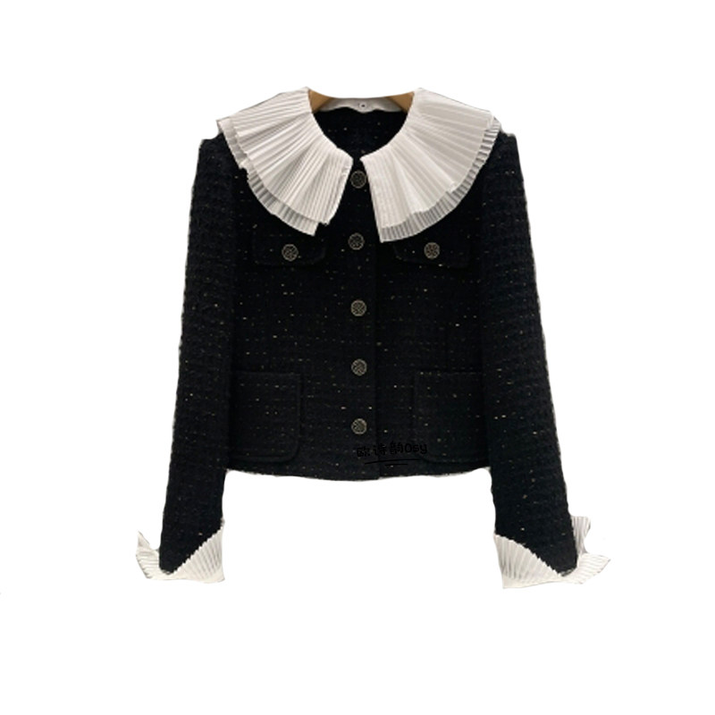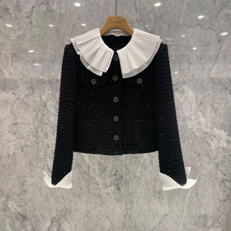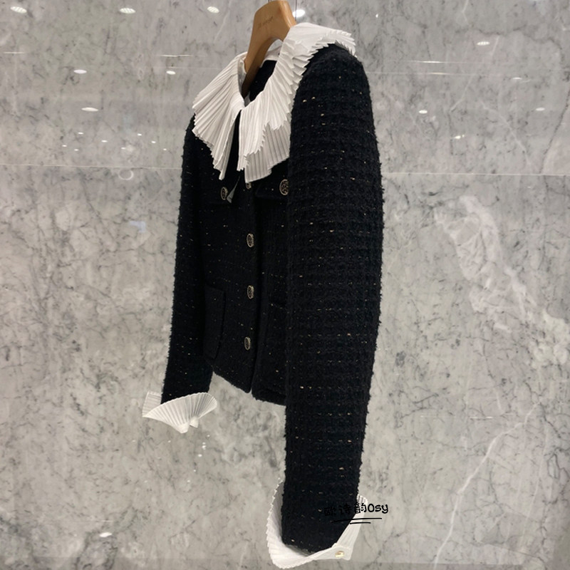 Черный товар, осенний короткий пиджак классического кроя, в стиле Шанель, в корейском стиле