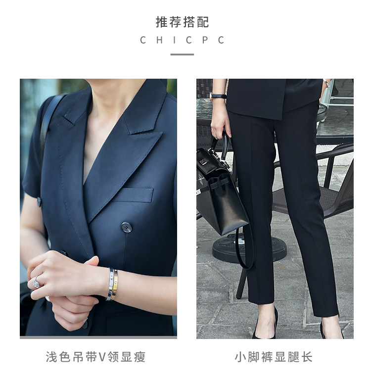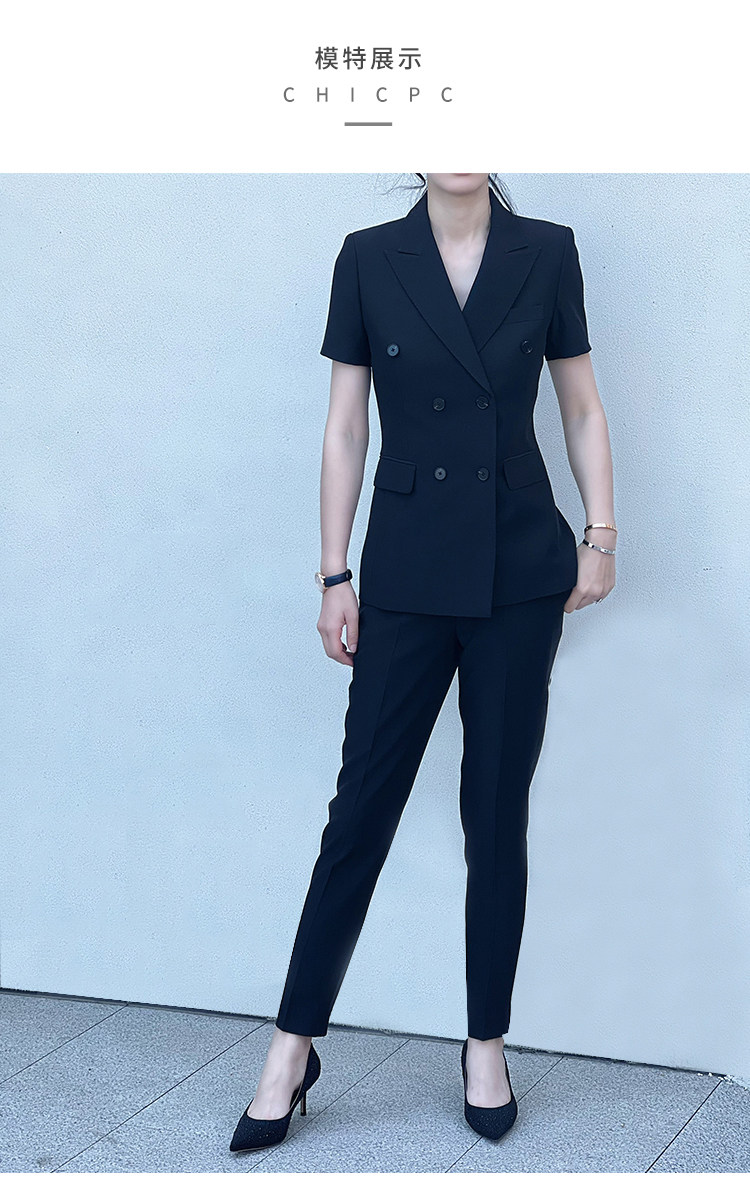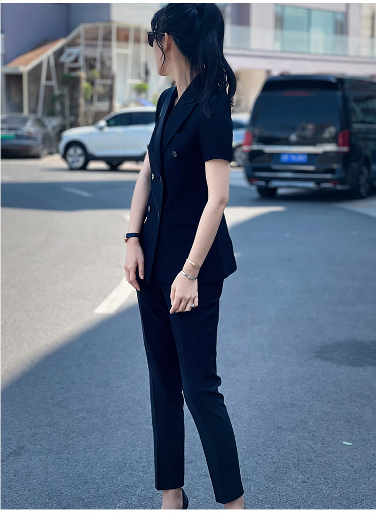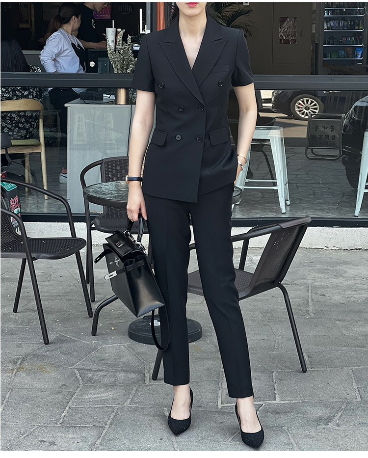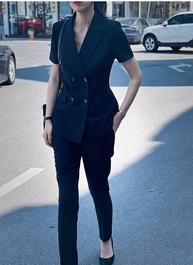 Черный классический костюм, тонкий приталенный комплект для работы, изысканный стиль, короткий рукав
