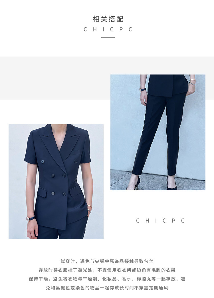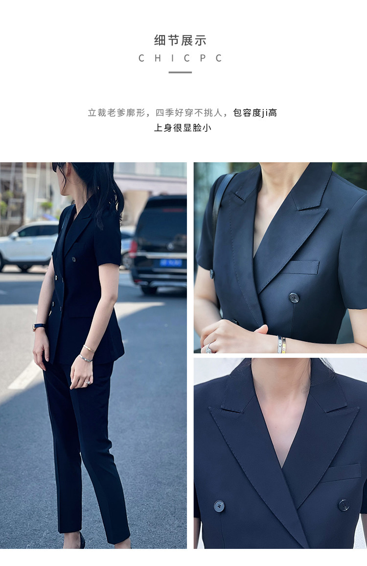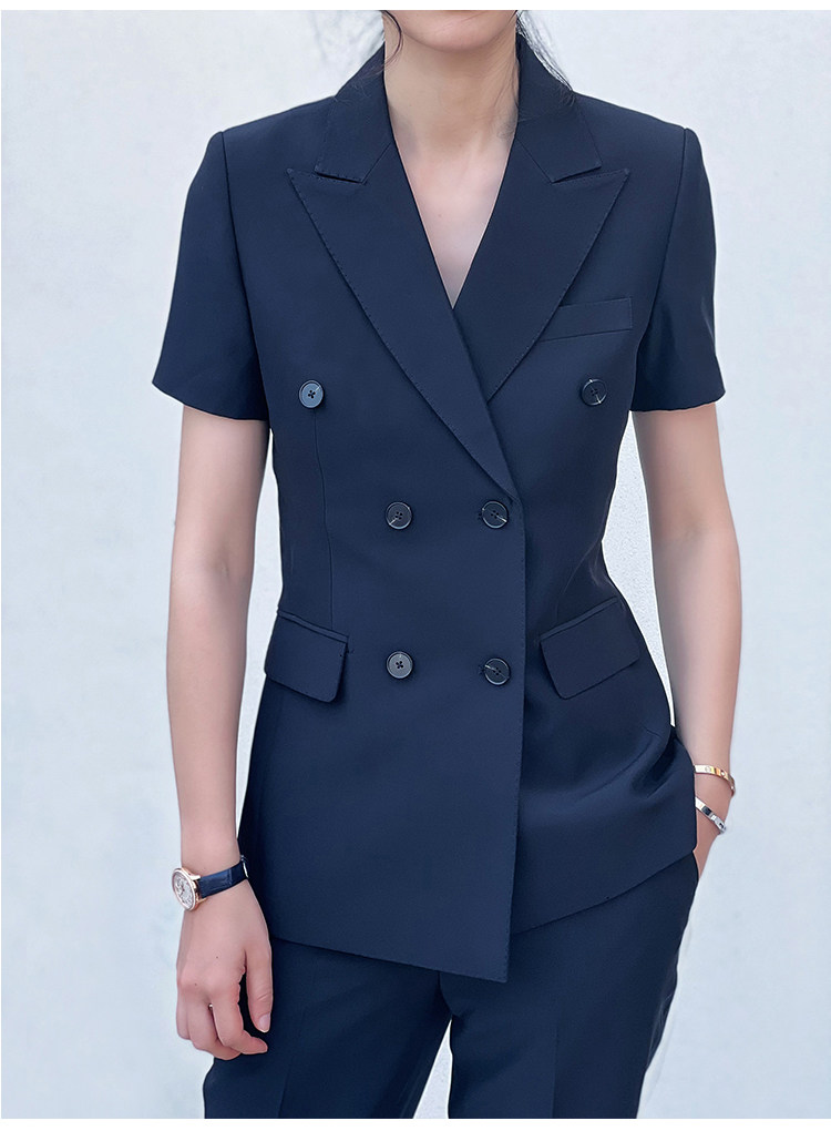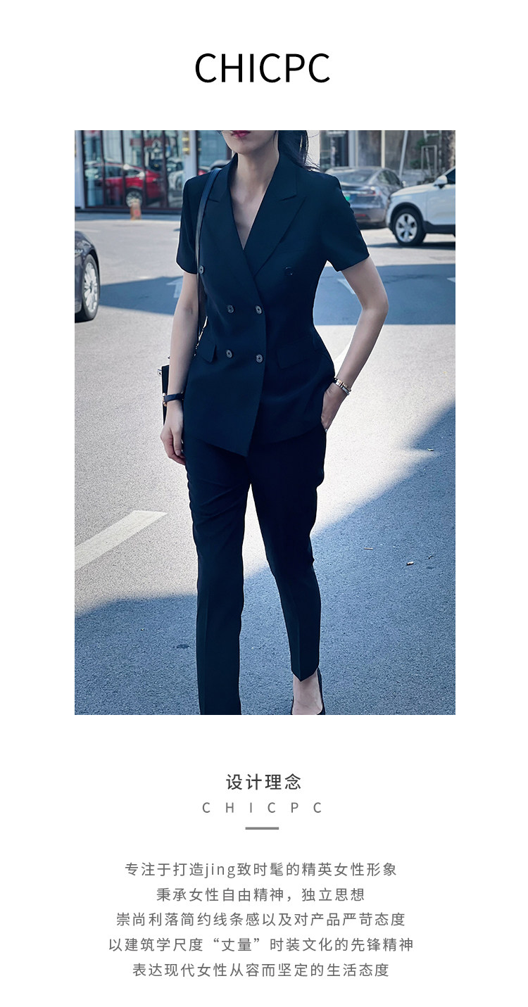 Черный классический костюм, тонкий приталенный комплект для работы, изысканный стиль, короткий рукав
