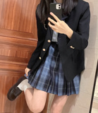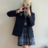 Оригинальный пиджак классического кроя, студенческая юбка в складку, комплект