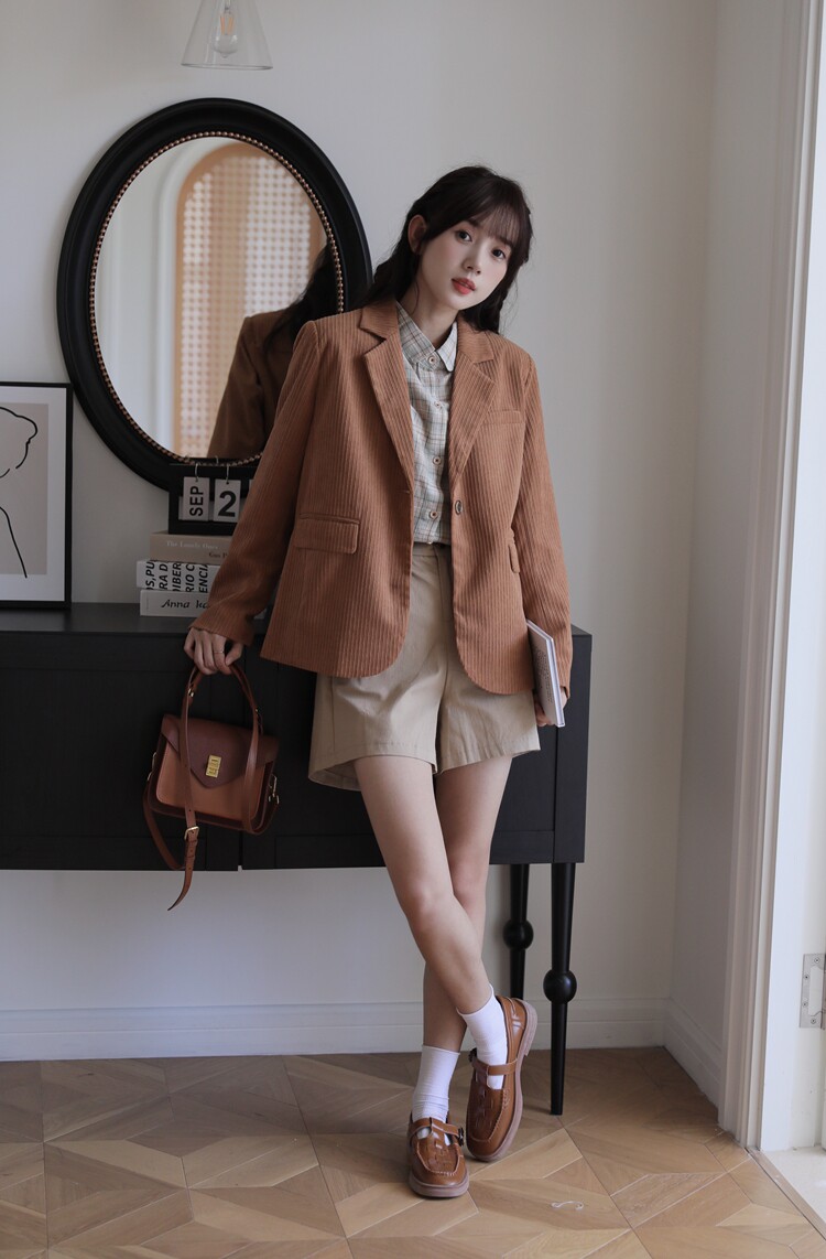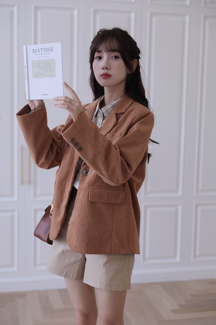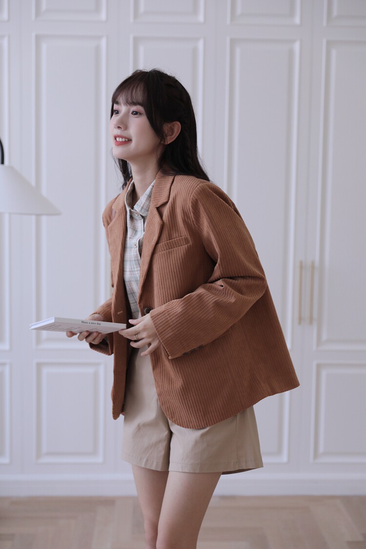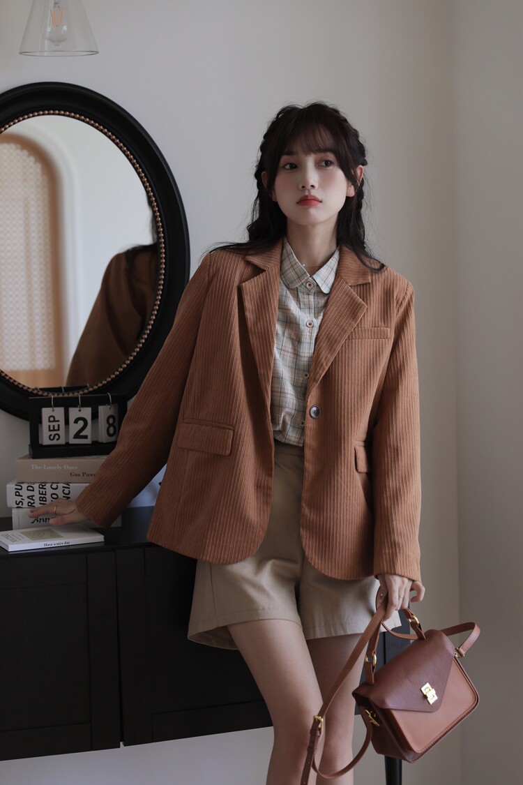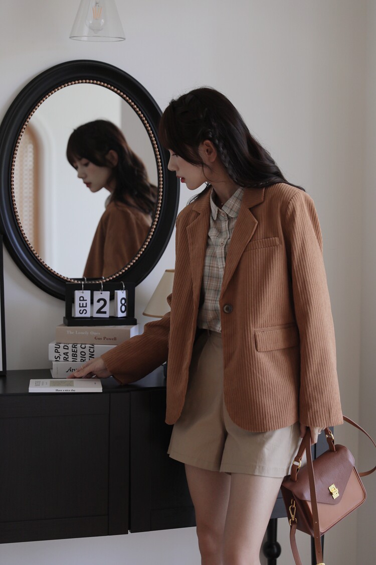 Весенний ретро лонгслив, вельветовые наплечники, костюм, тренд сезона, премиум класс, легкий роскошный стиль, увеличенная толщина