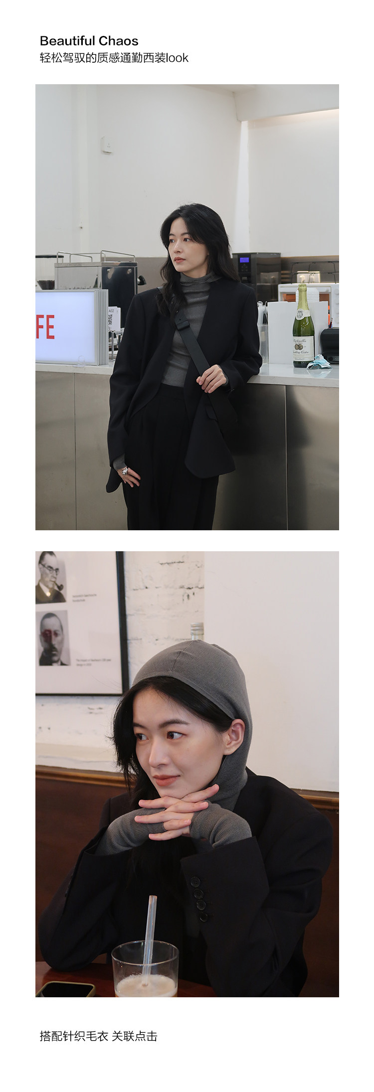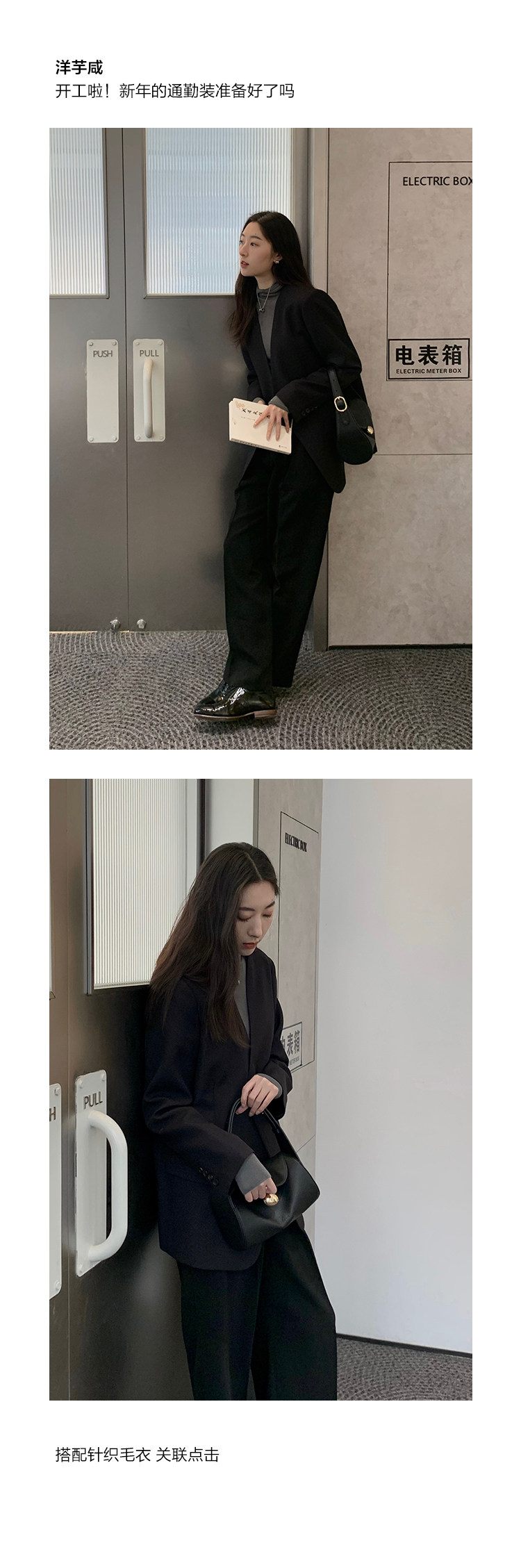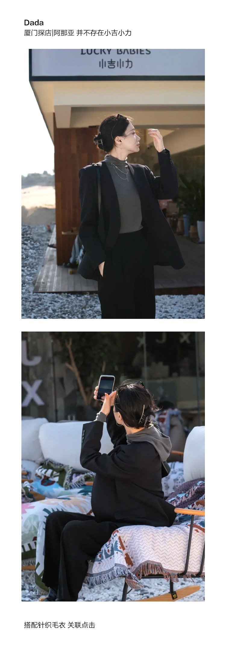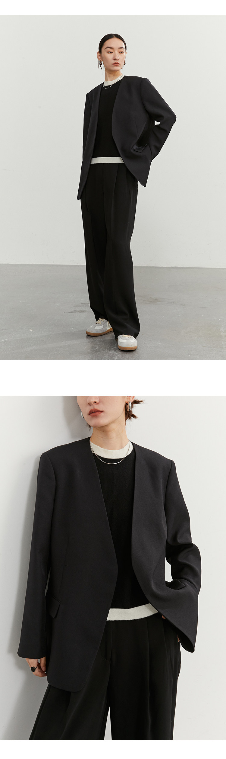 Iachoo 2023aw Gao ding -free*OW WIND более тонкий и универсальный высокий уровень черного повседневного костюма Темперамент