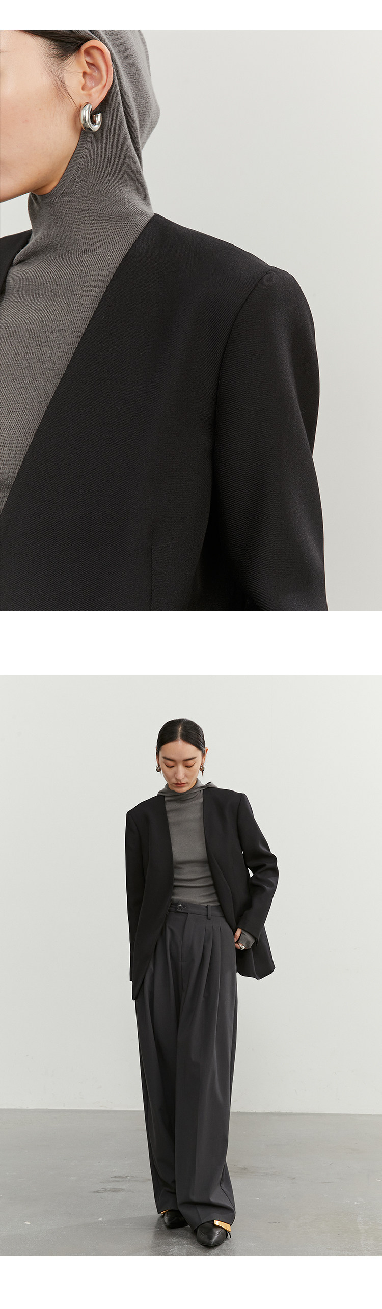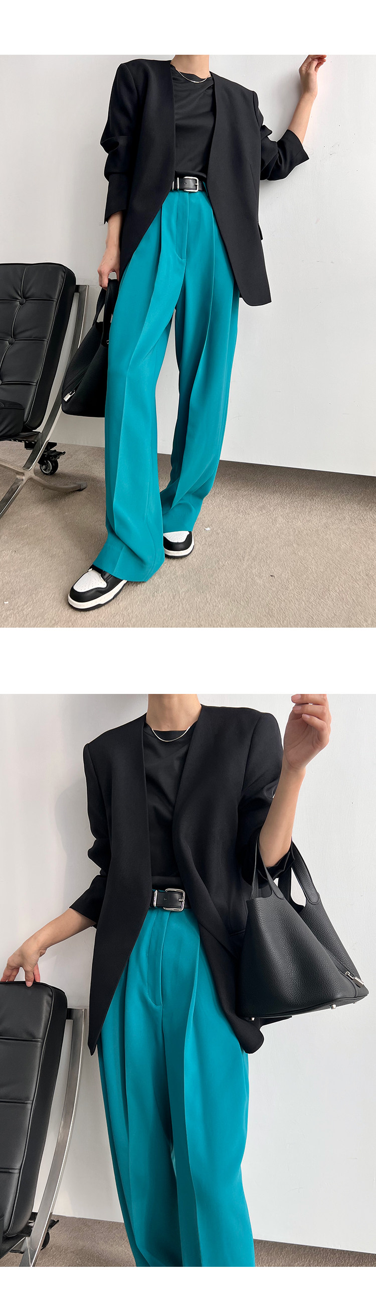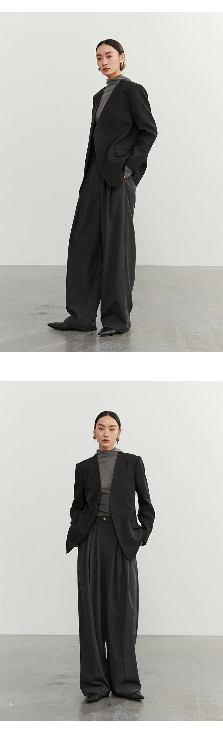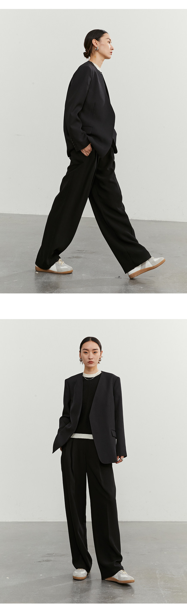 Iachoo 2023aw Gao ding -free*OW WIND более тонкий и универсальный высокий уровень черного повседневного костюма Темперамент