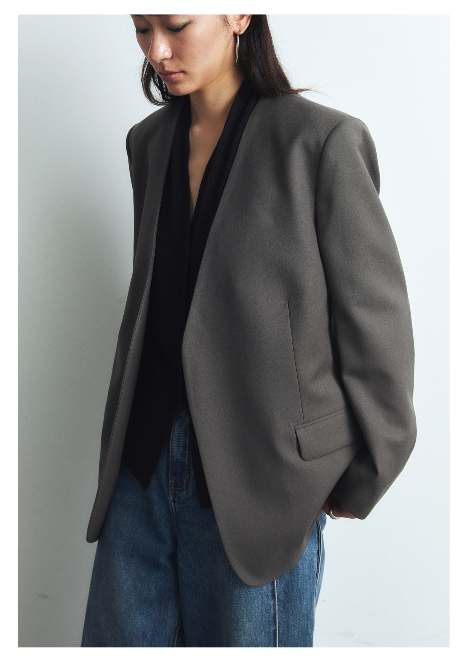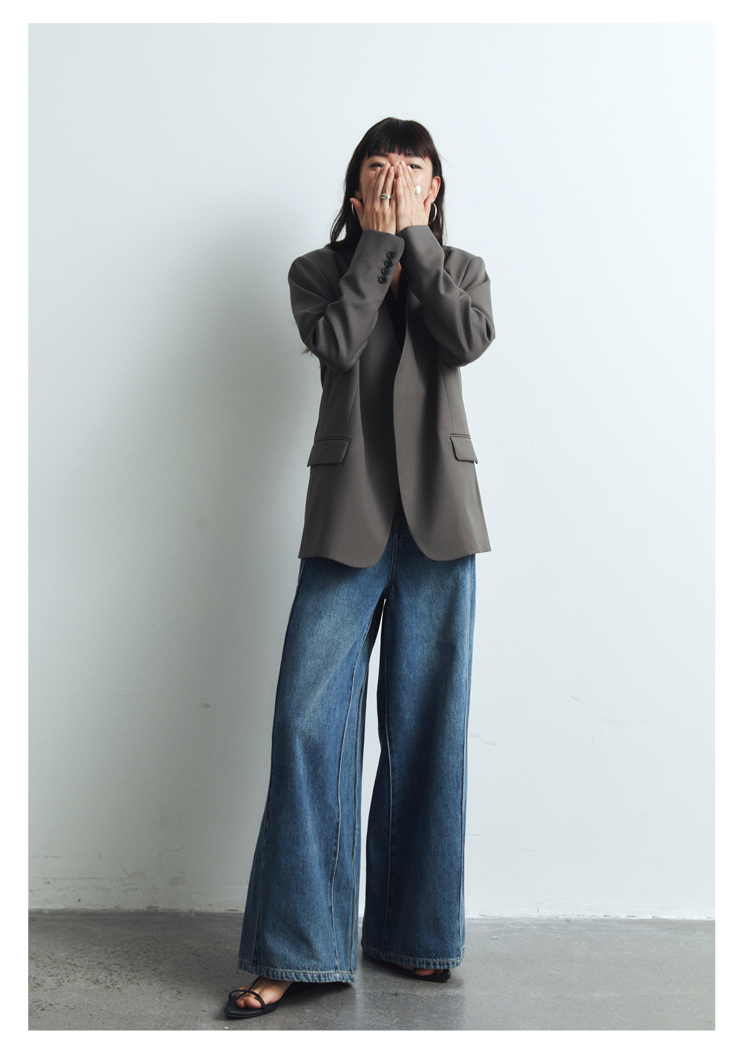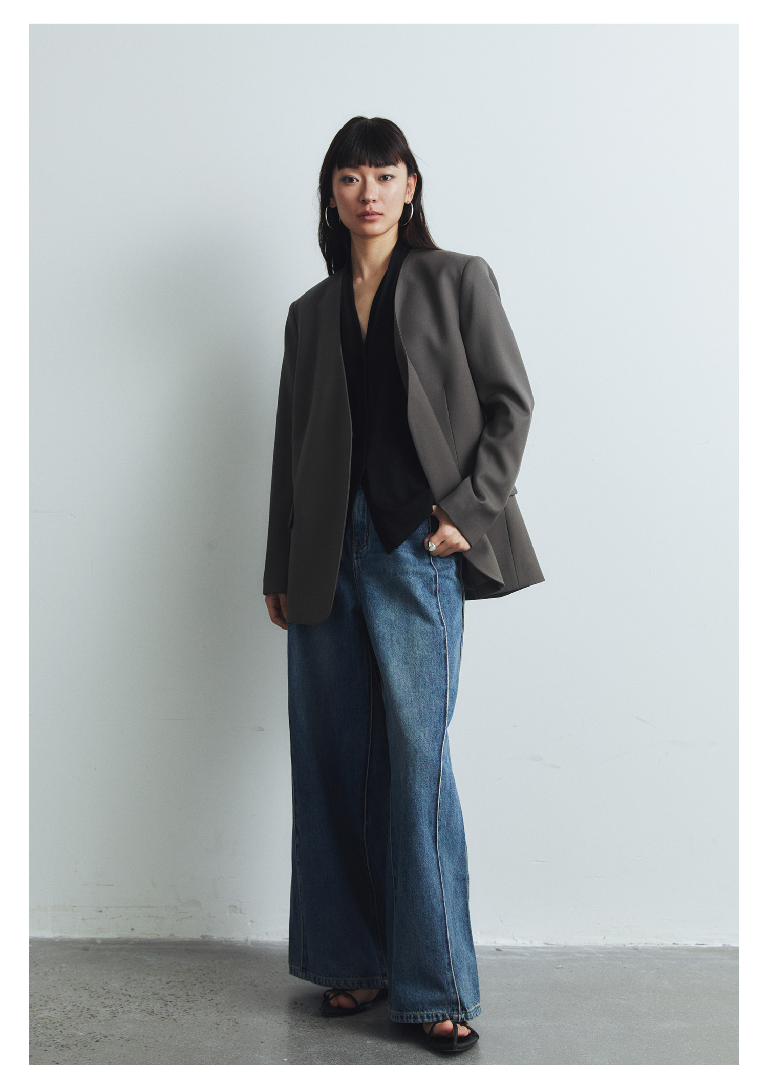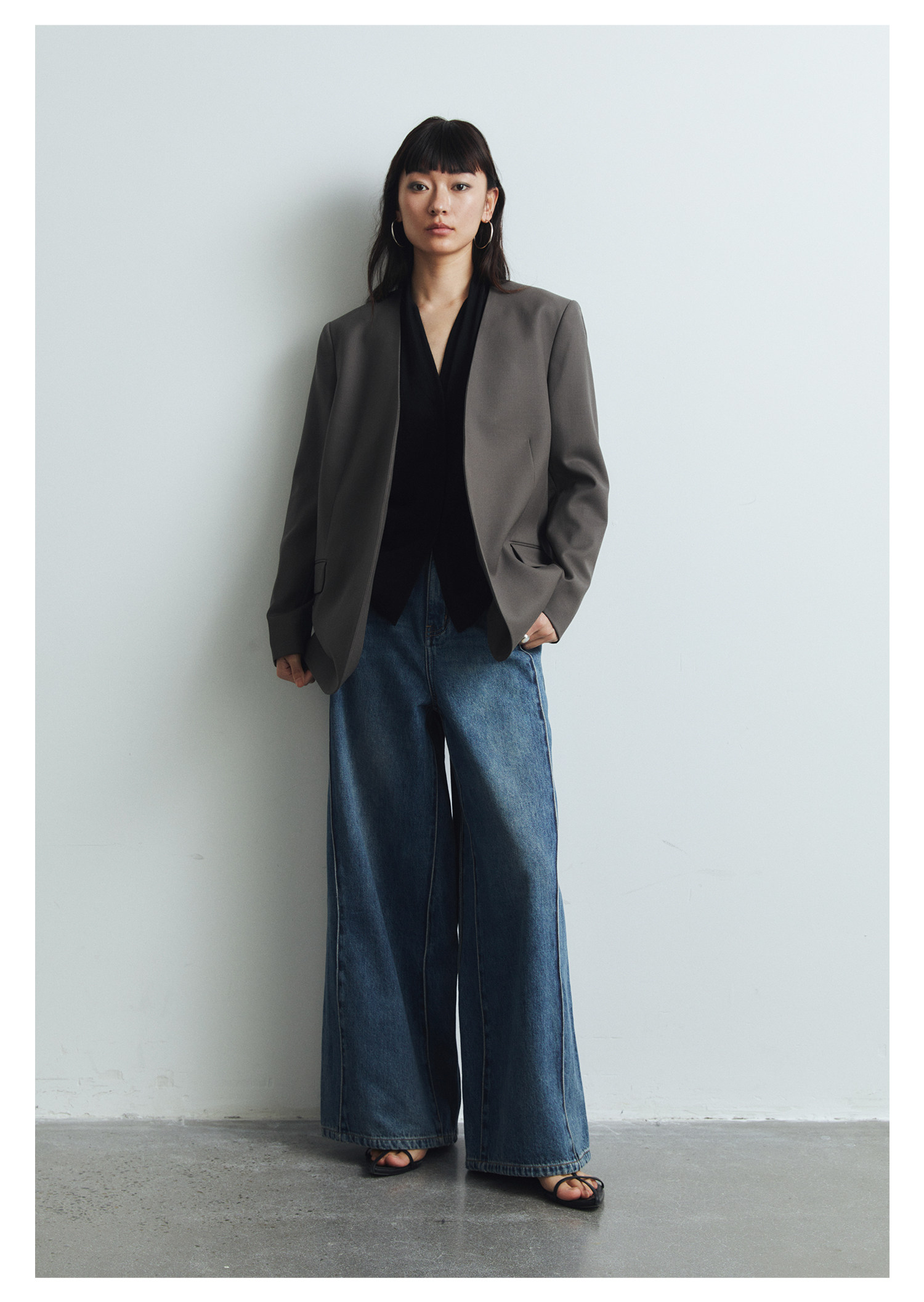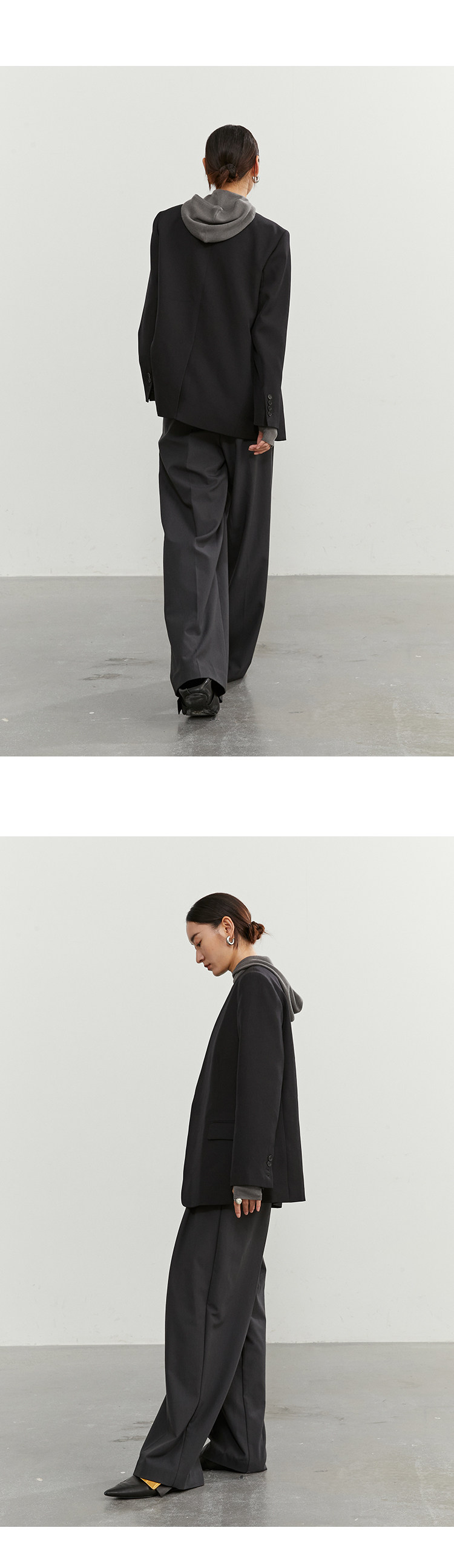 Iachoo 2023aw Gao ding -free*OW WIND более тонкий и универсальный высокий уровень черного повседневного костюма Темперамент