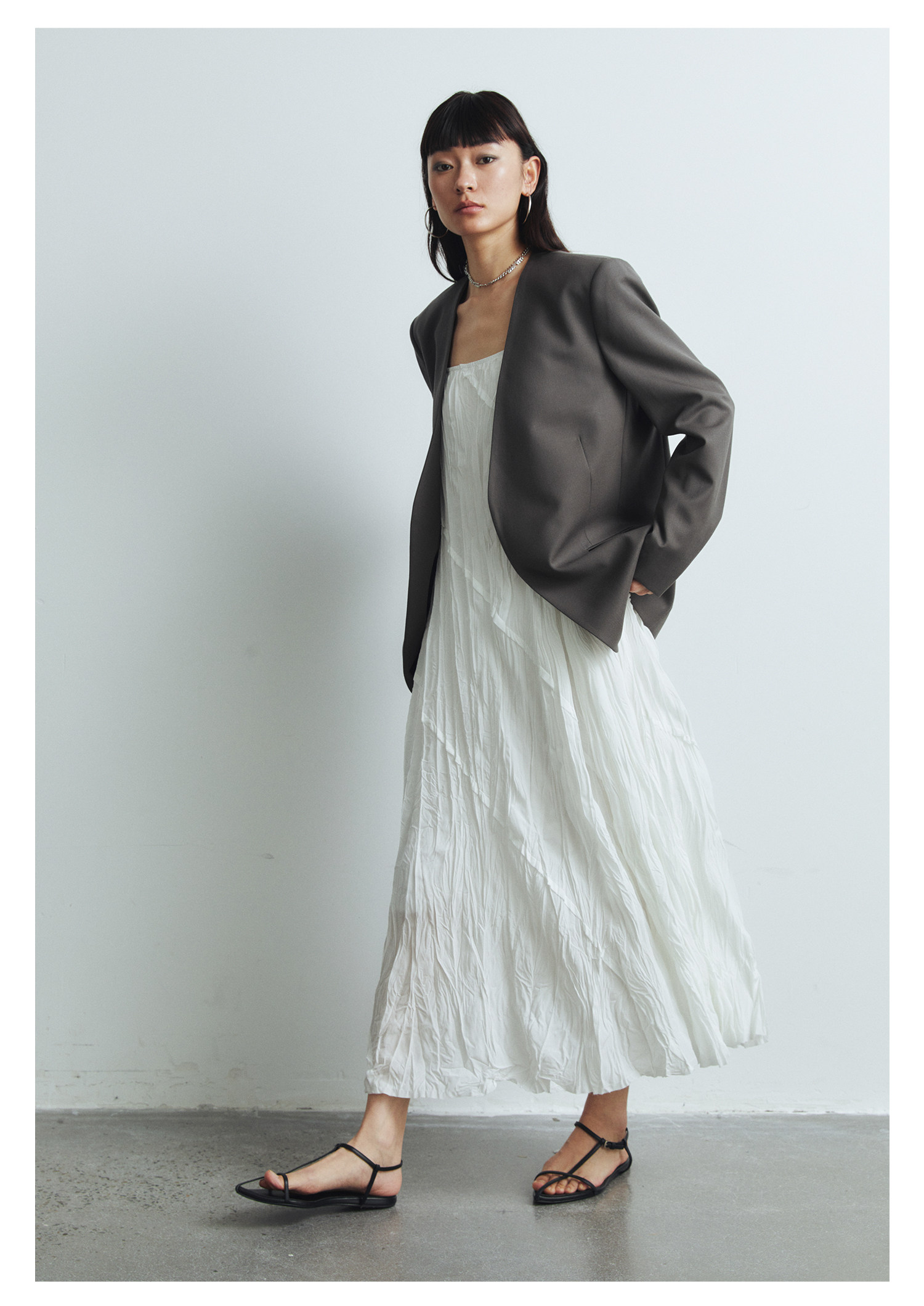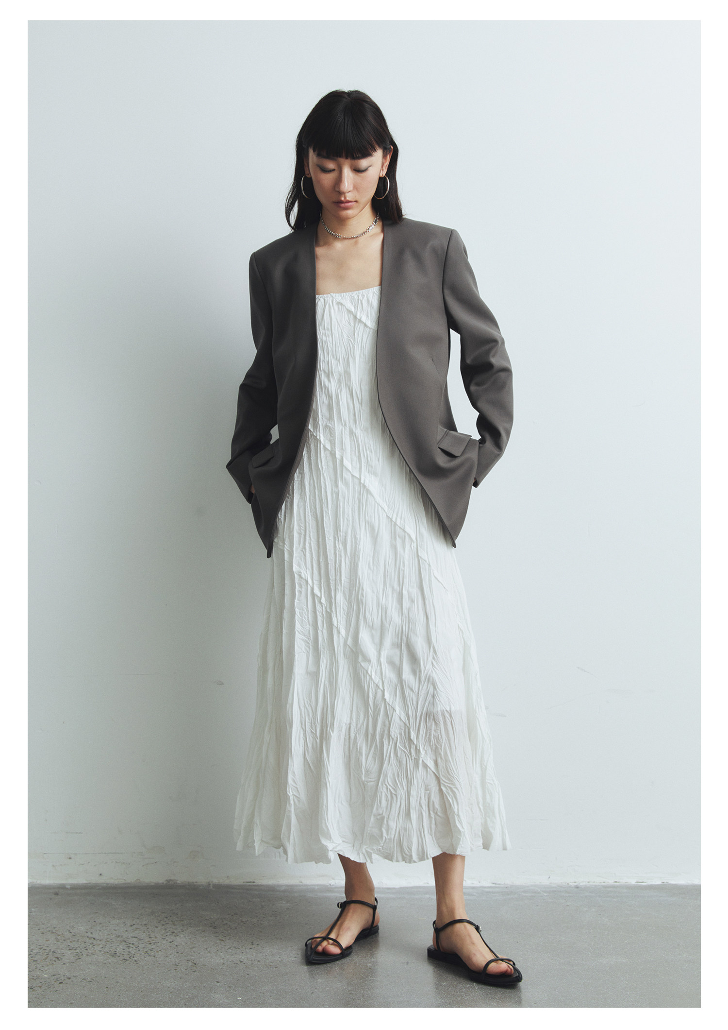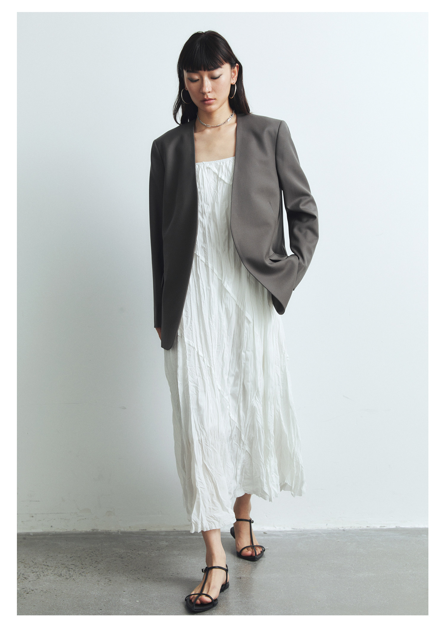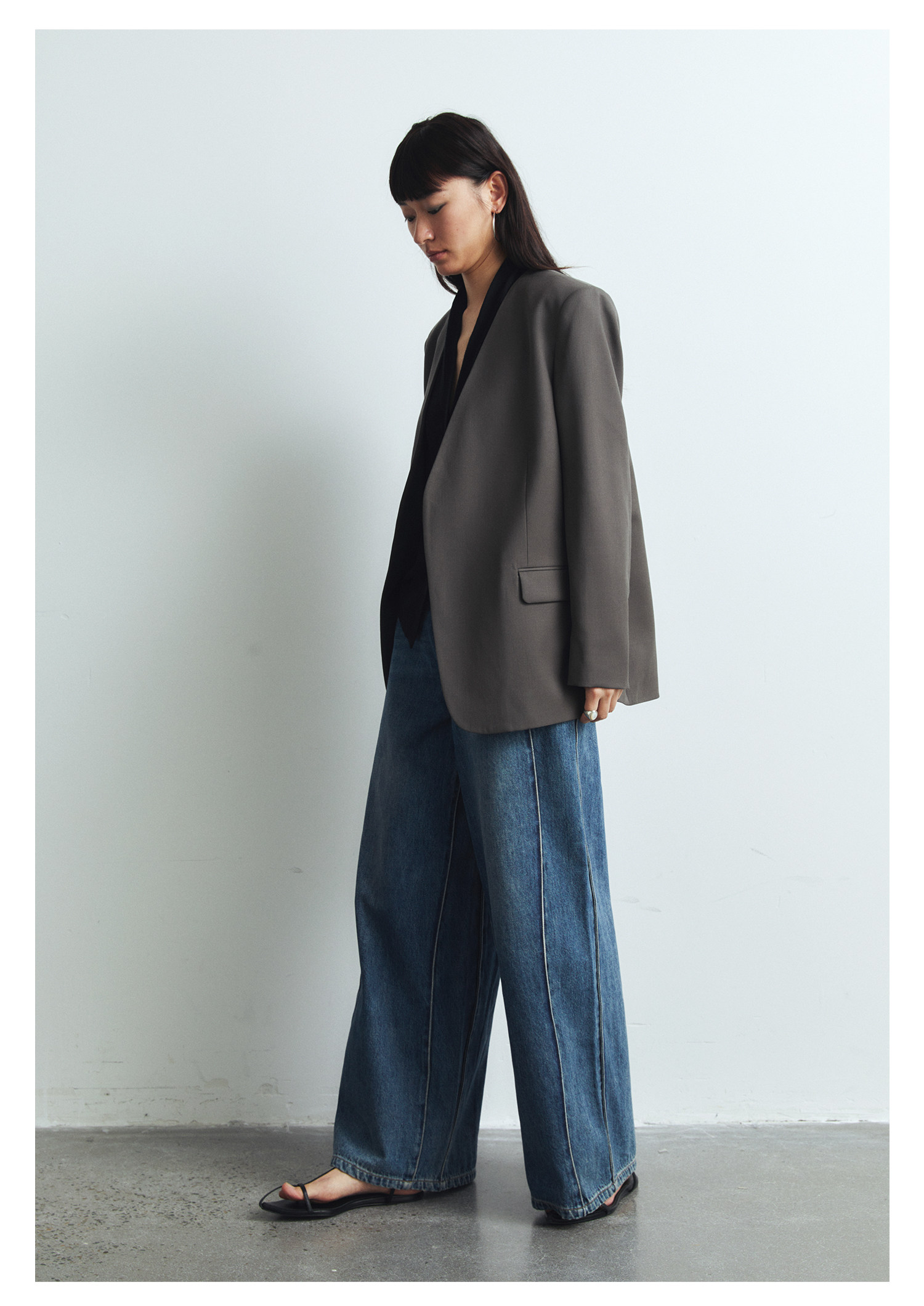 Iachoo 2023aw Gao ding -free*OW WIND более тонкий и универсальный высокий уровень черного повседневного костюма Темперамент