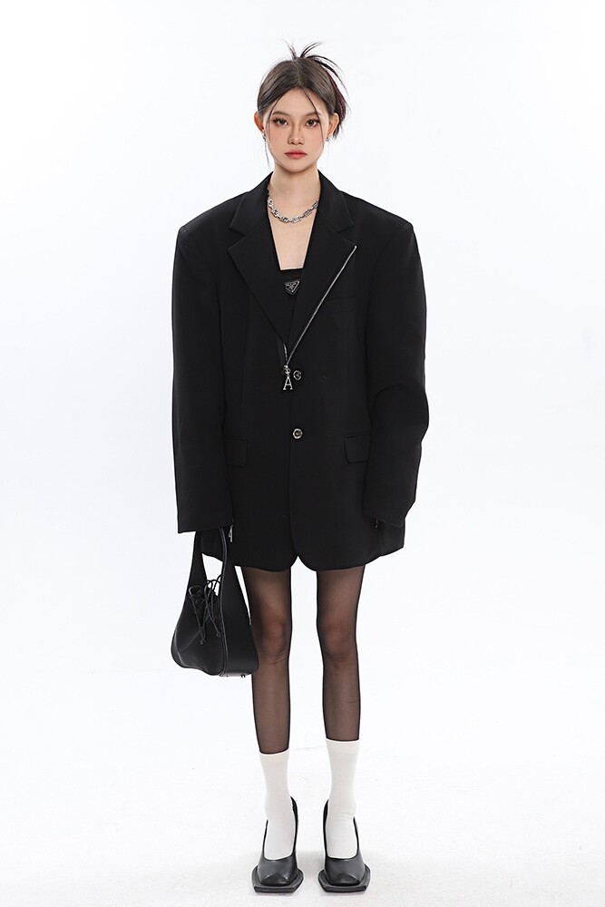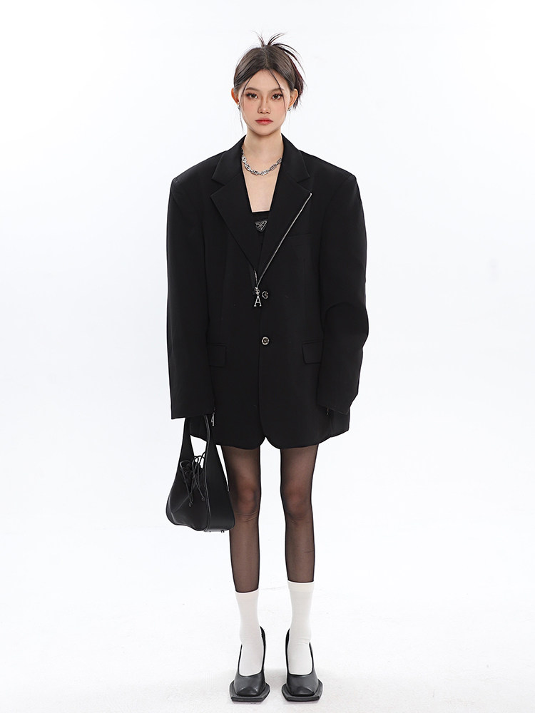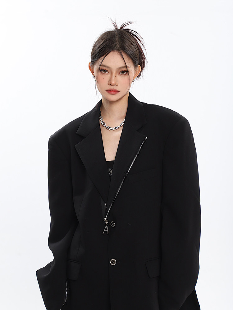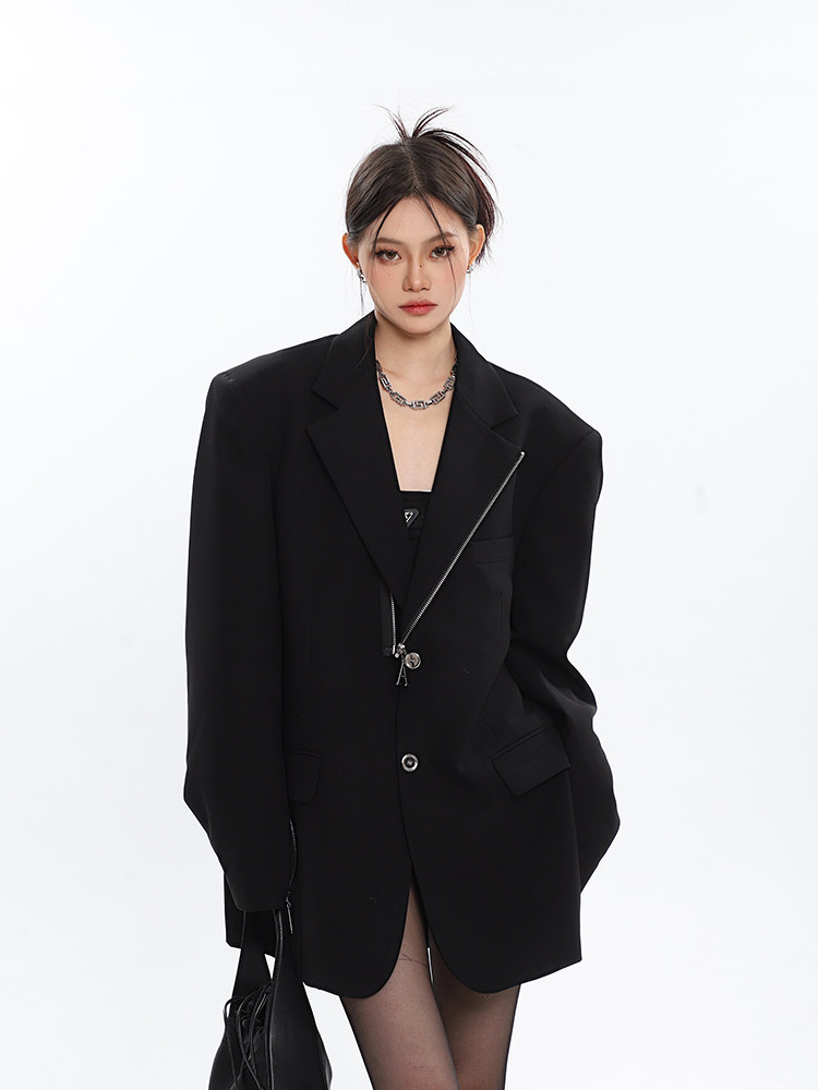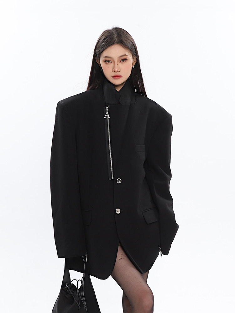 Черный цветной дизайнерский весенний пиджак классического кроя с молнией, (в наличии на складе), тренд сезона