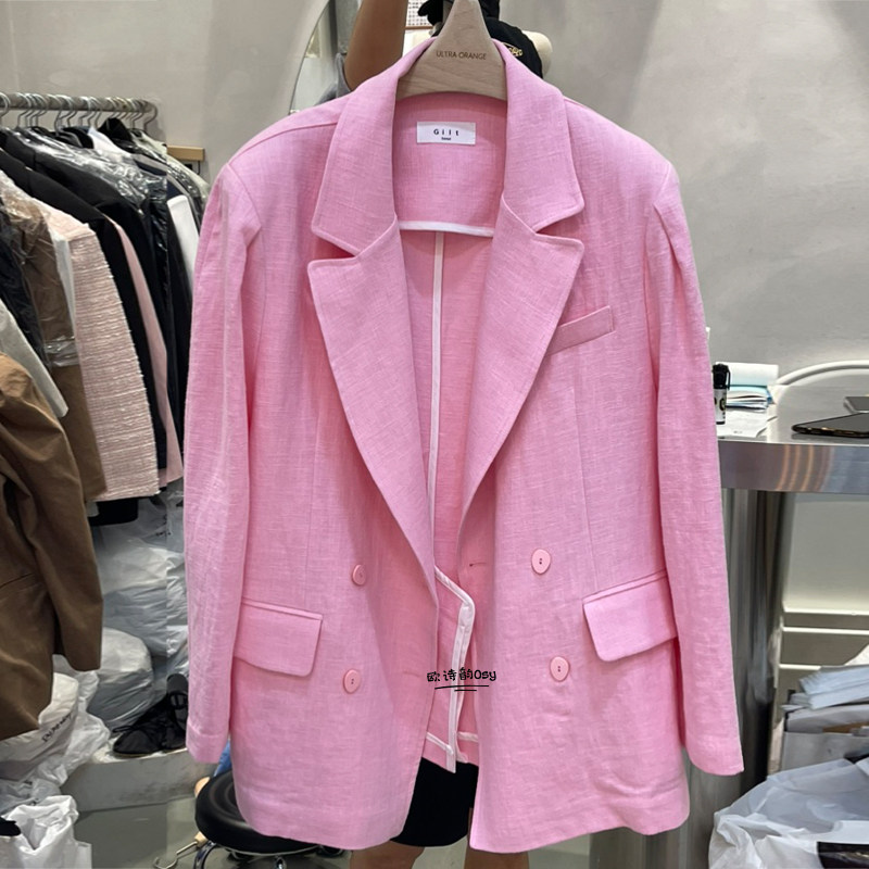 Модный летний пиджак классического кроя для отдыха, изысканный стиль, из хлопка и льна, в корейском стиле