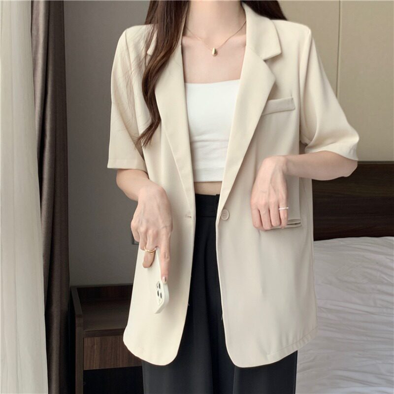Летний тонкий белый дизайнерский короткий пиджак классического кроя, коллекция 2023, короткий рукав, тренд сезона