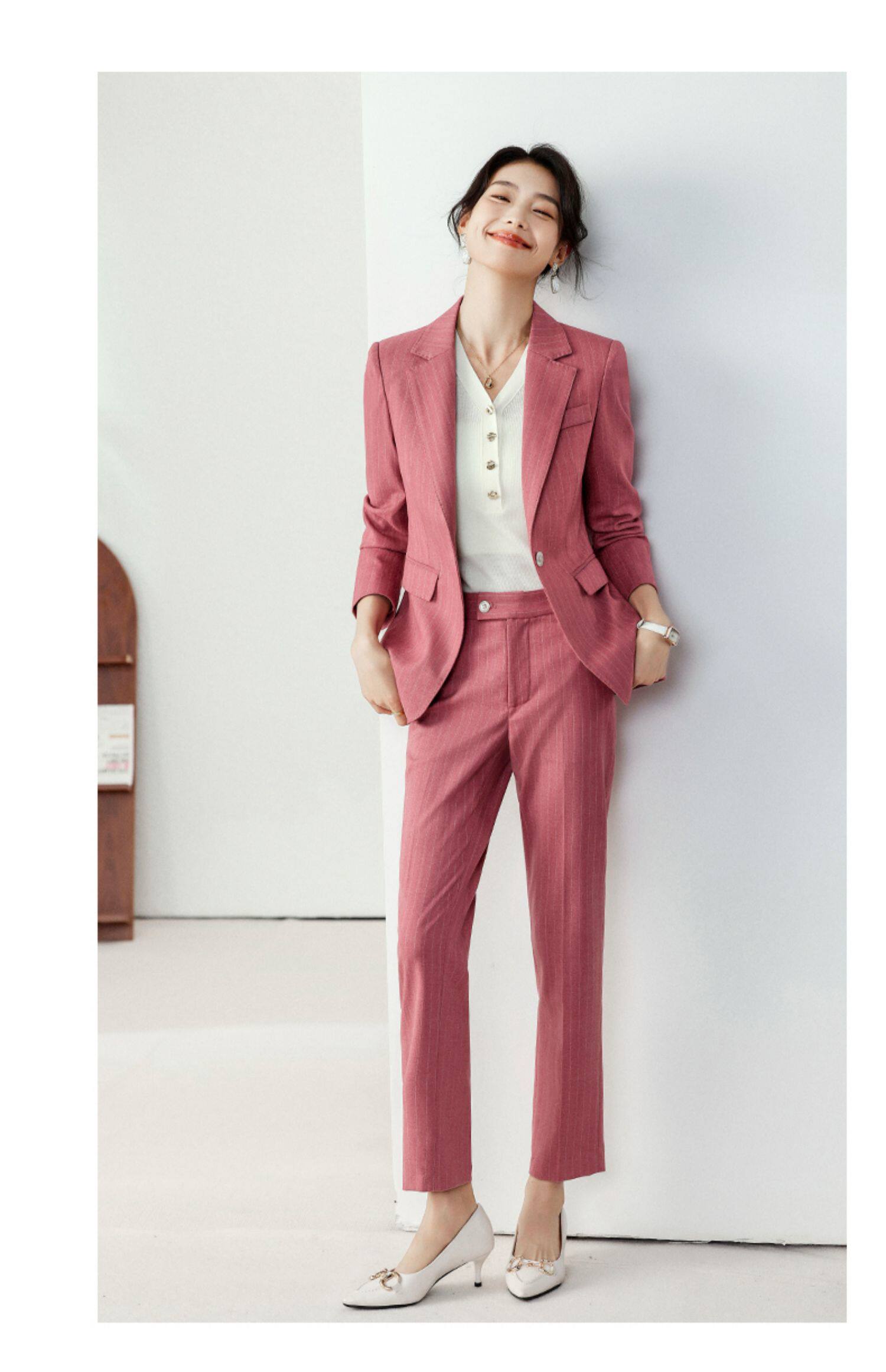 Классический костюм, комплект, осенний пиджак классического кроя для отдыха, розовая куртка, изысканный стиль, подходит для подростков