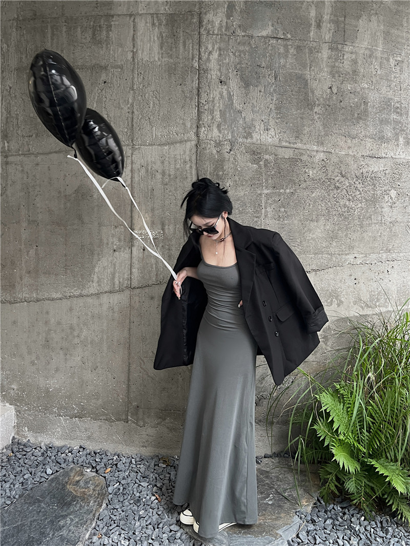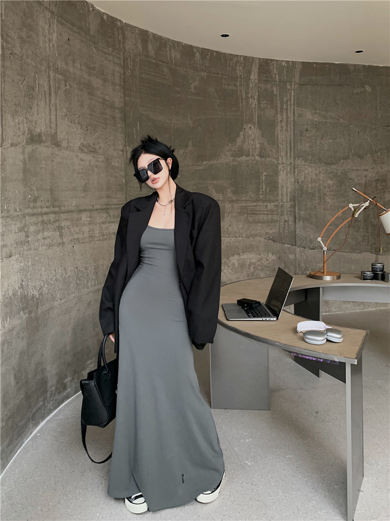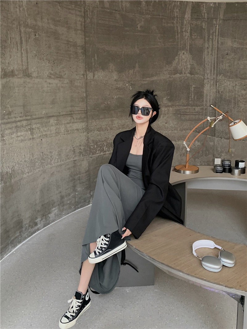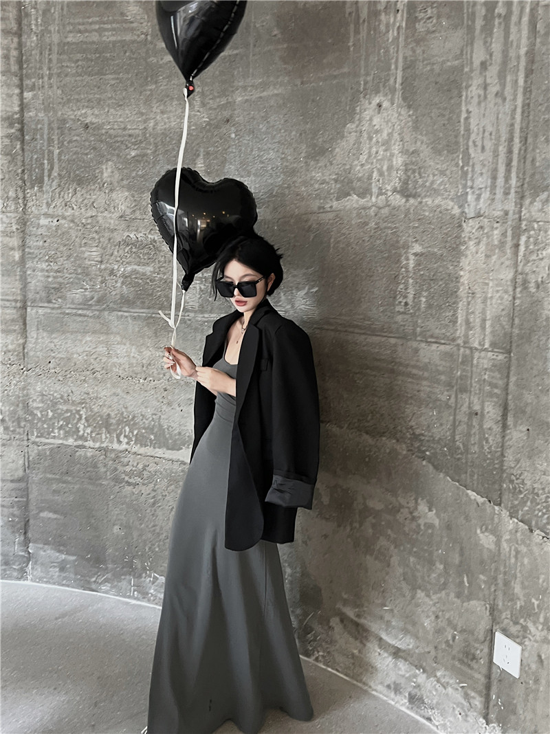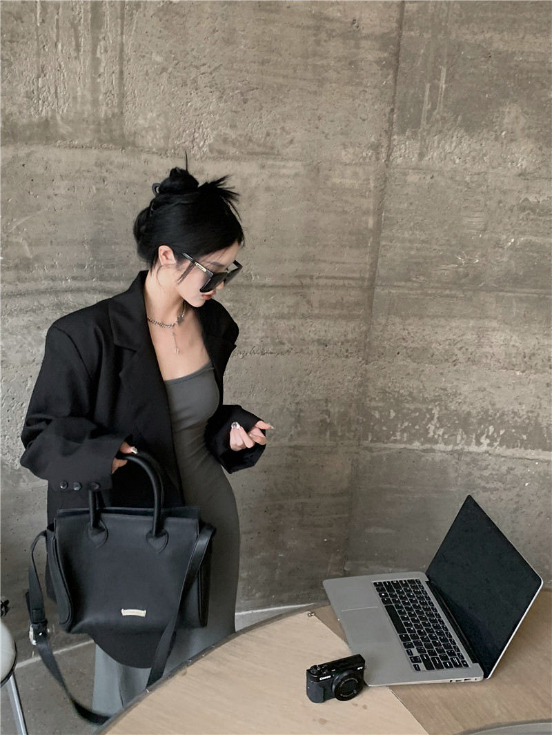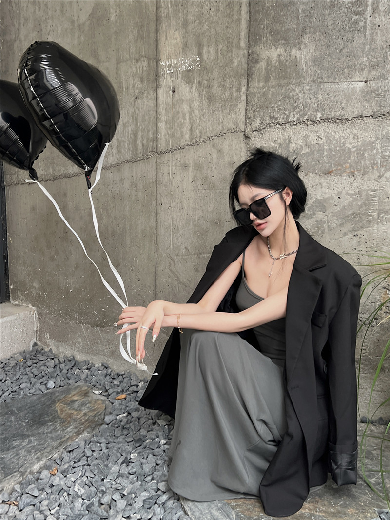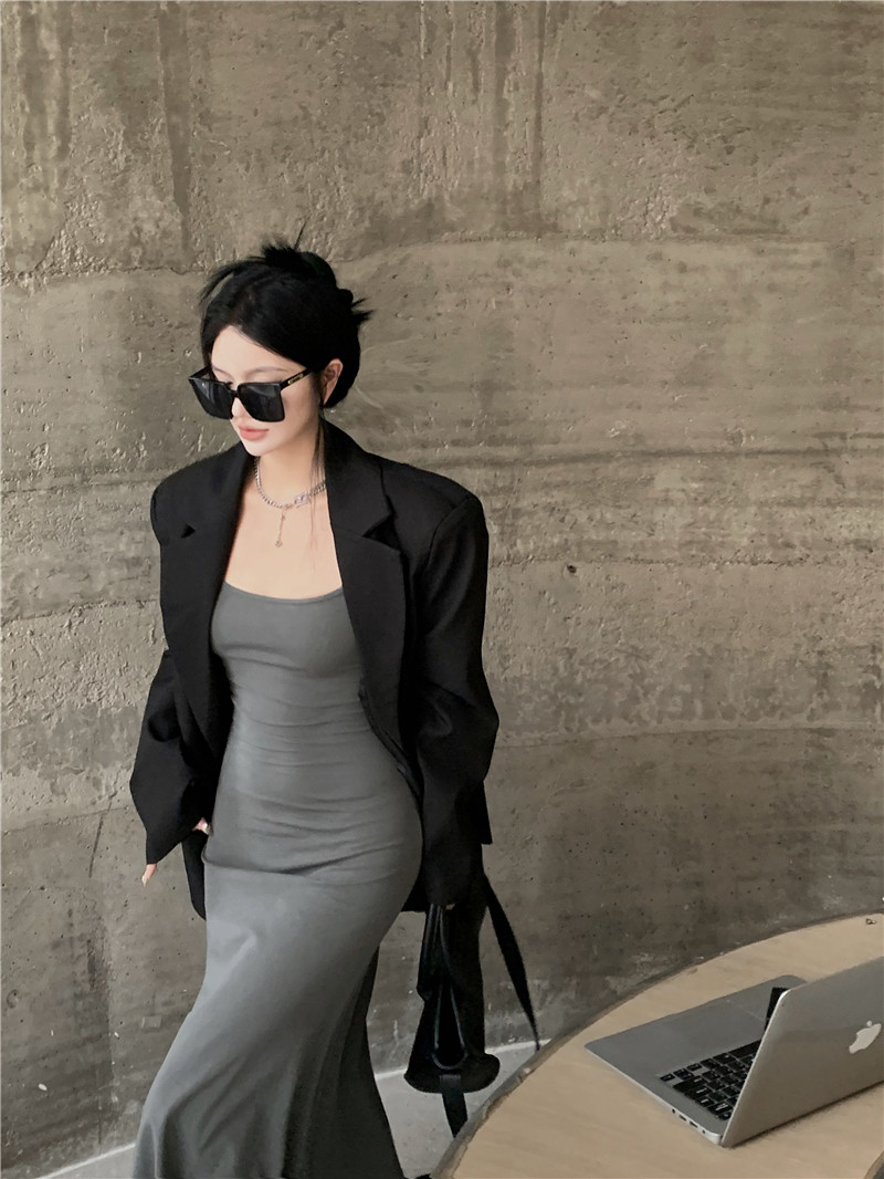 Осенний дизайнерский длинный пиджак классического кроя, изысканный стиль, тренд сезона, свободный крой, средней длины