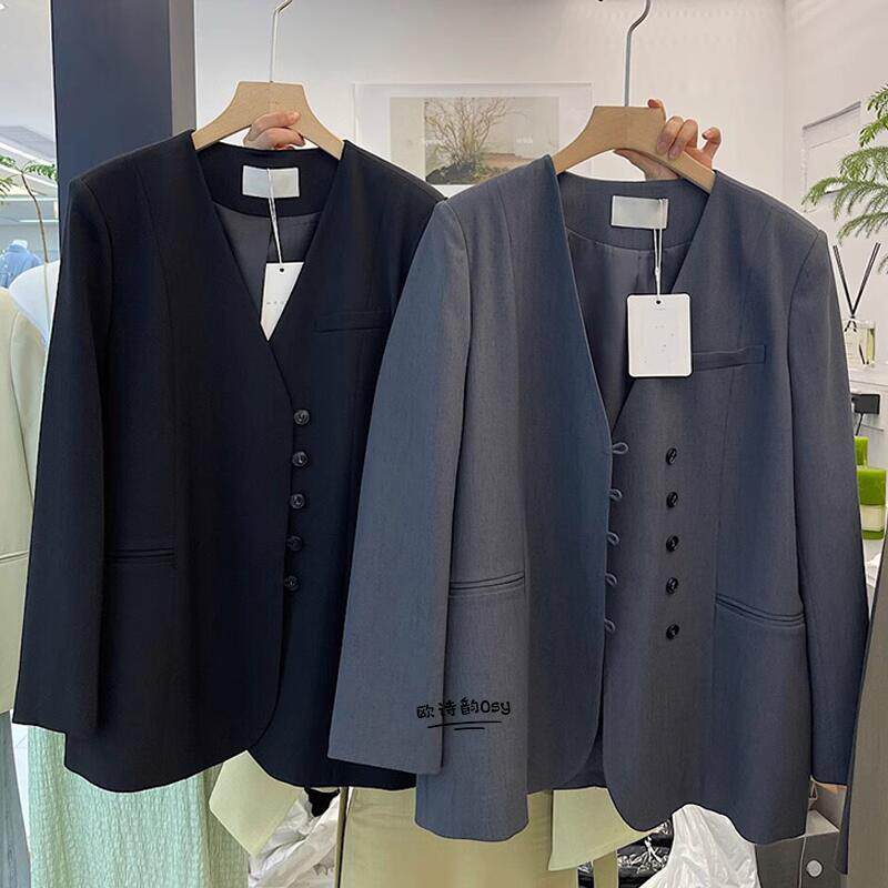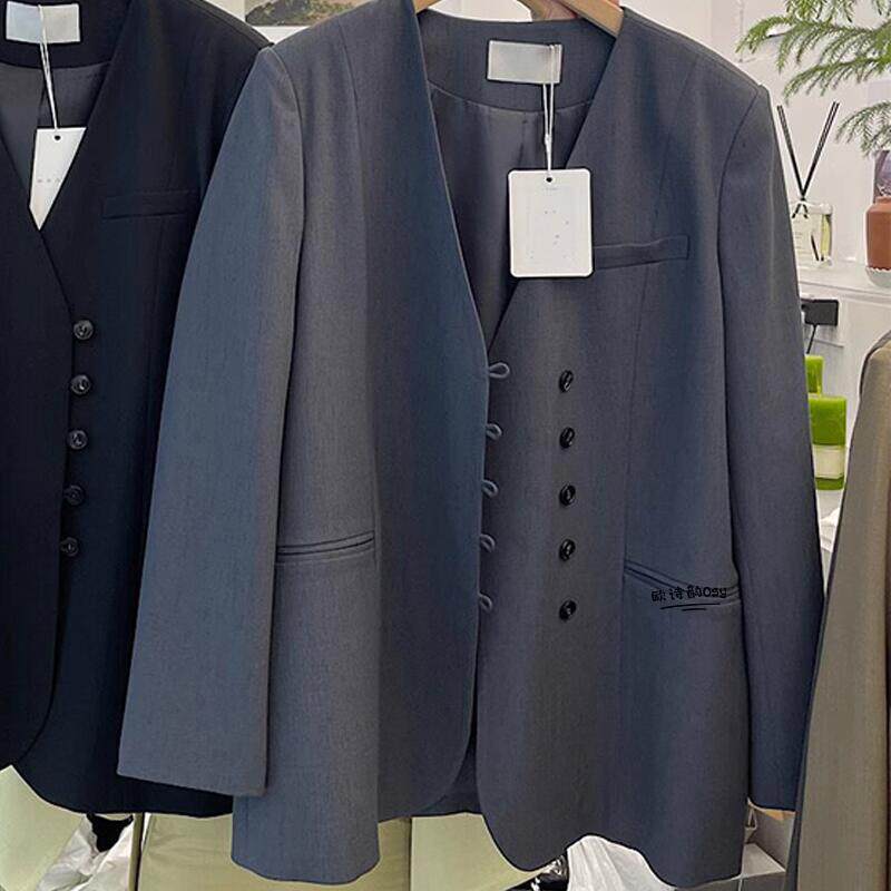 Осенний модный пиджак классического кроя, изысканный стиль, V-образный вырез, в корейском стиле