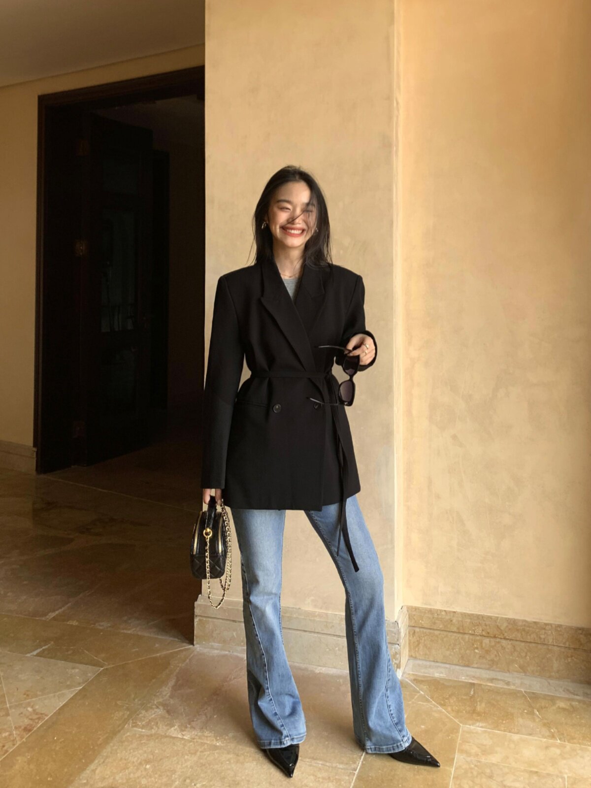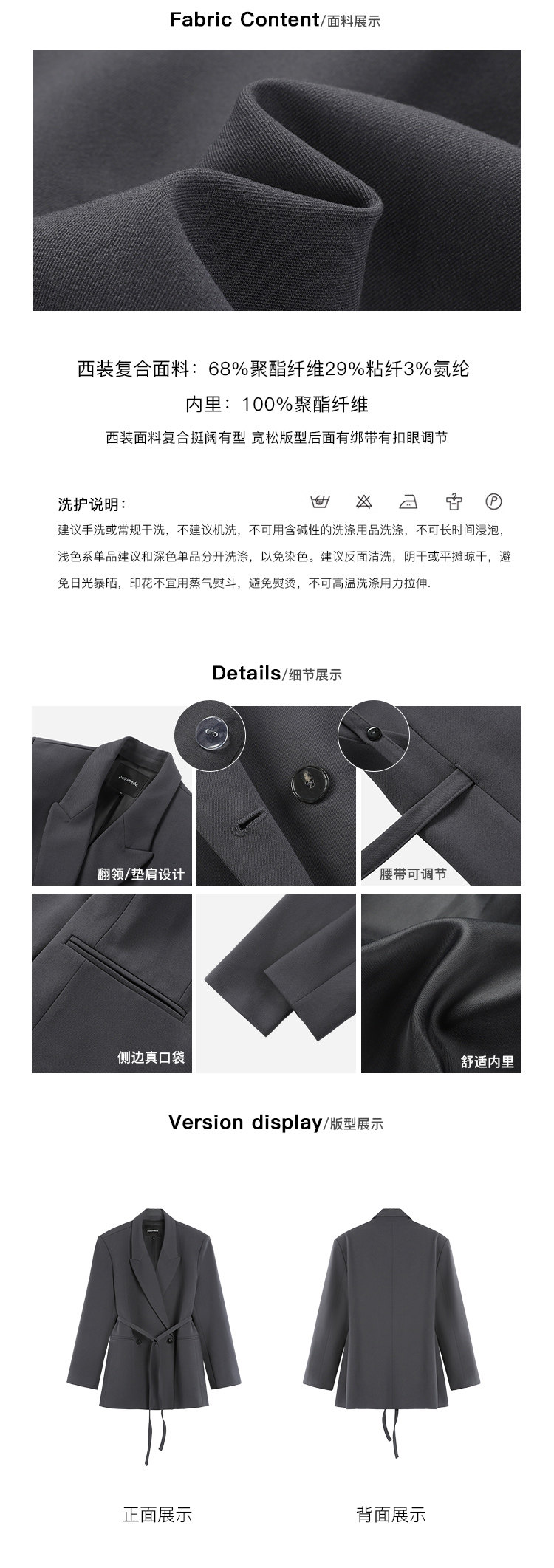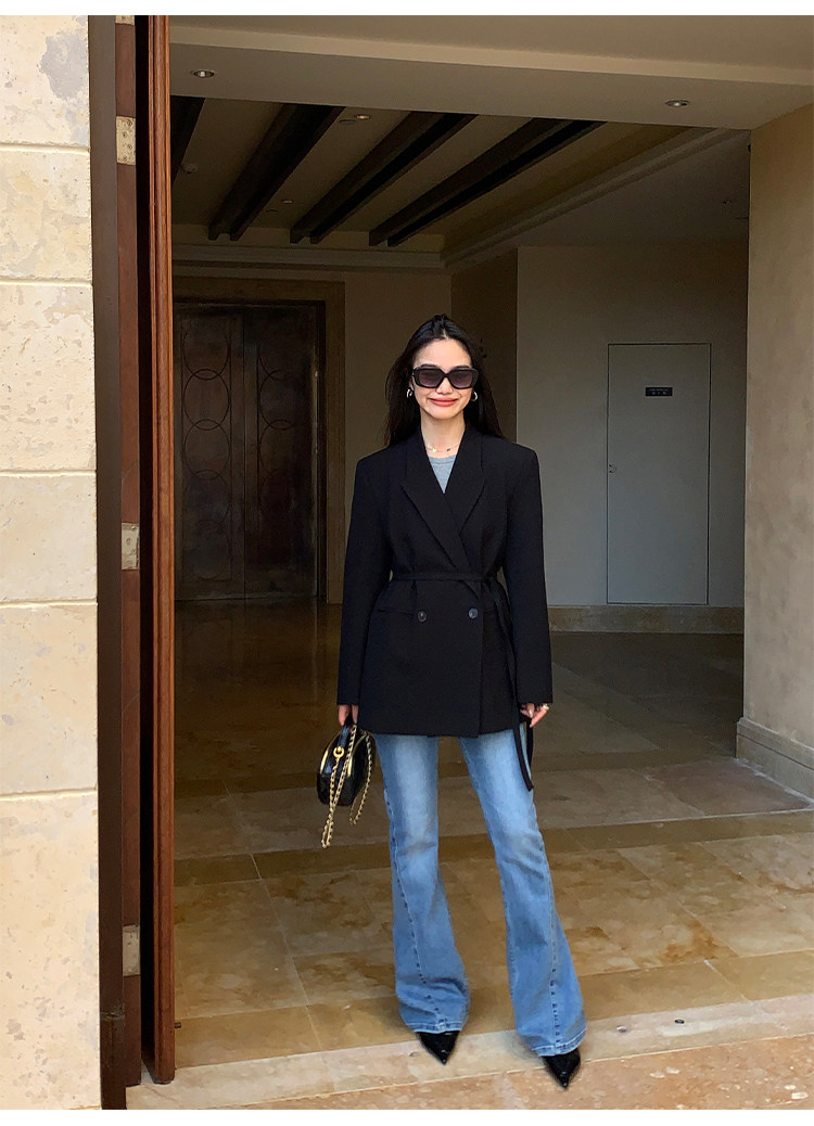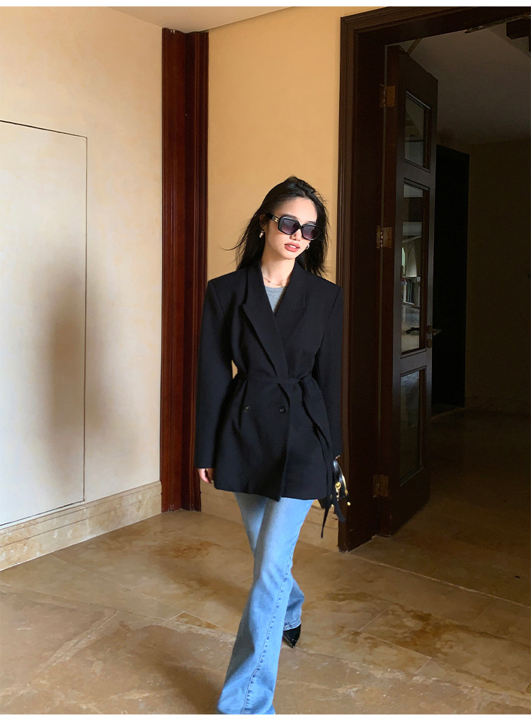 Пиджак классического кроя, ремень, изысканный стиль, свободный крой