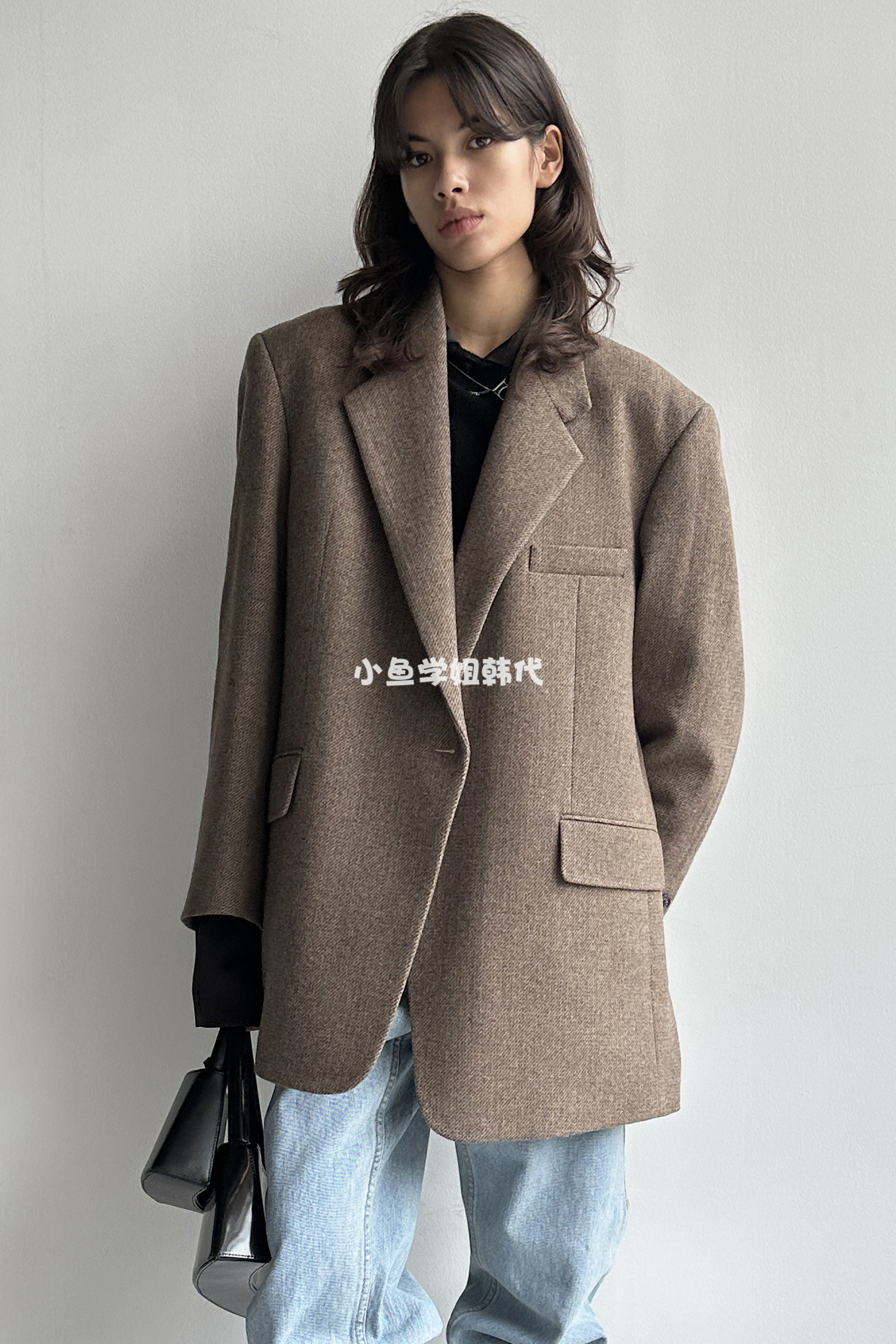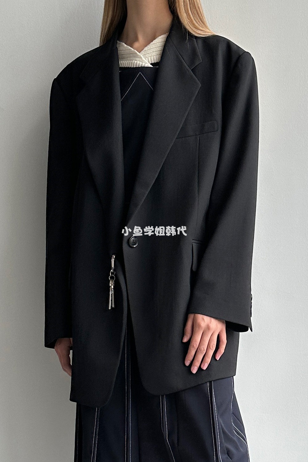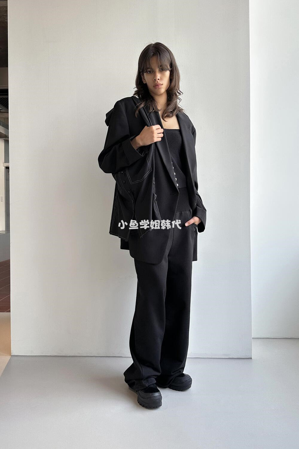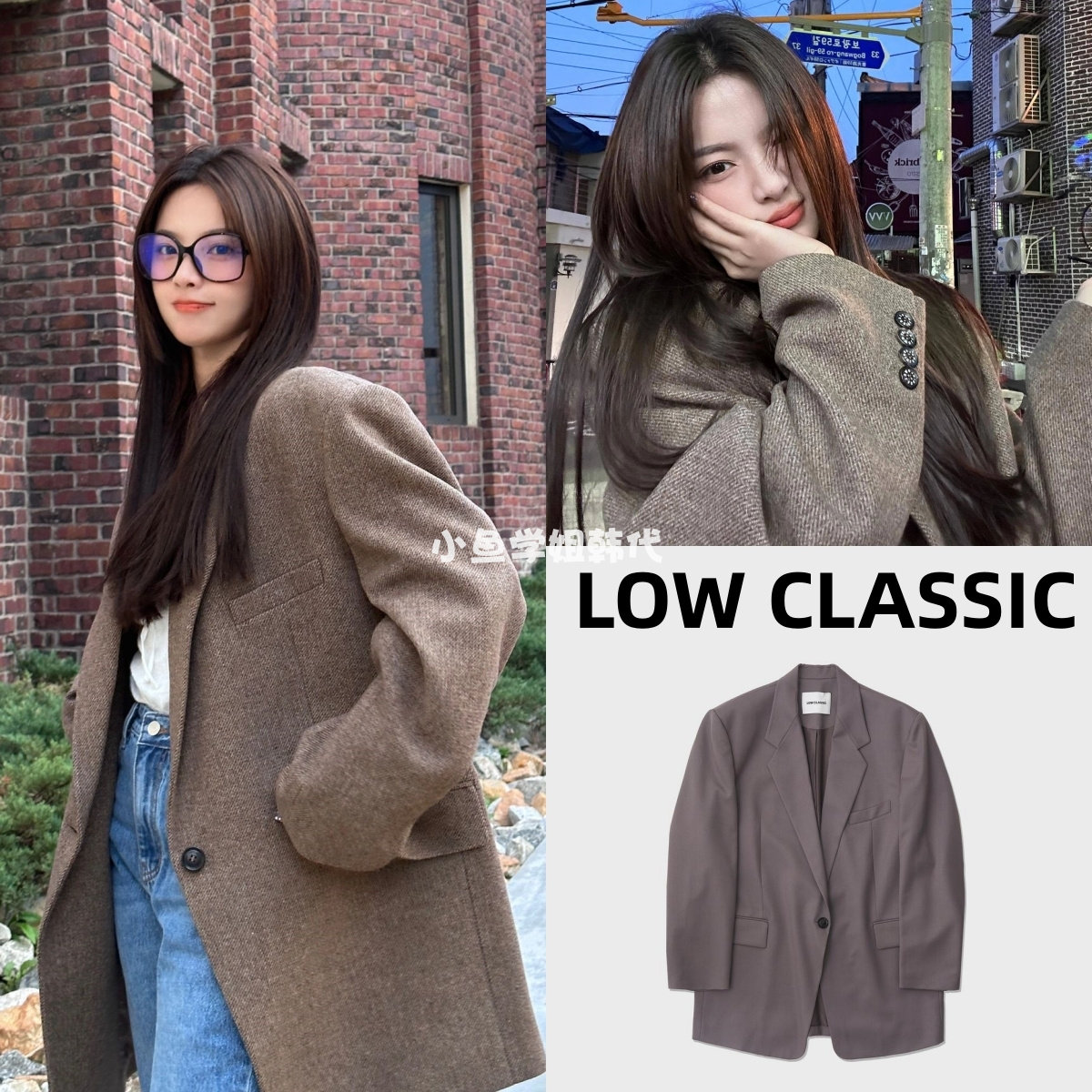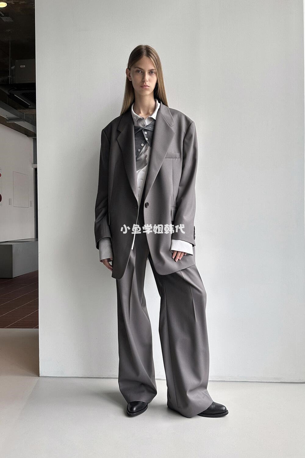Домашнее место с низкой классикой Ян Чао Ян Чао та же самая шерсть лацкана, костюм для пряжки, силуэт