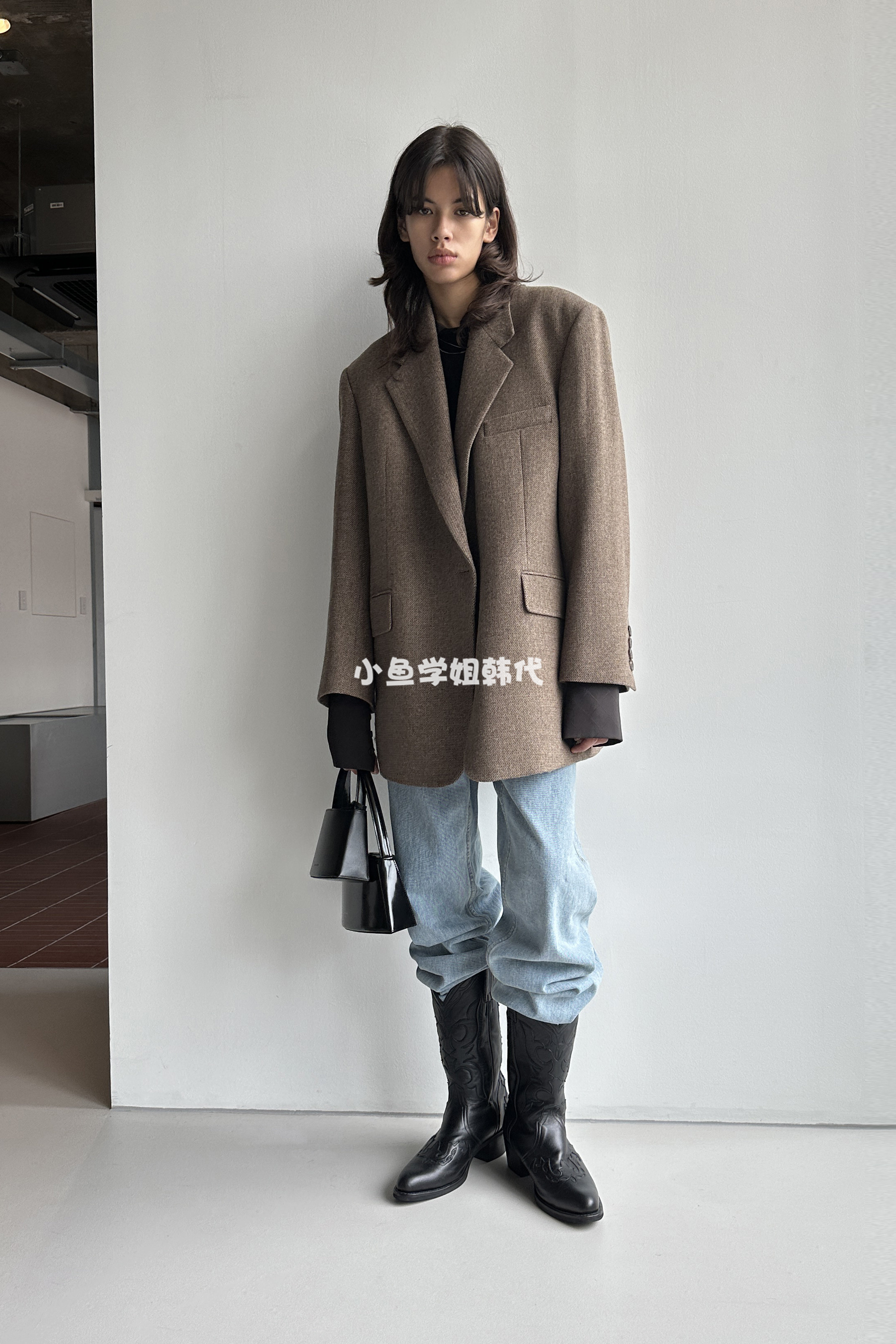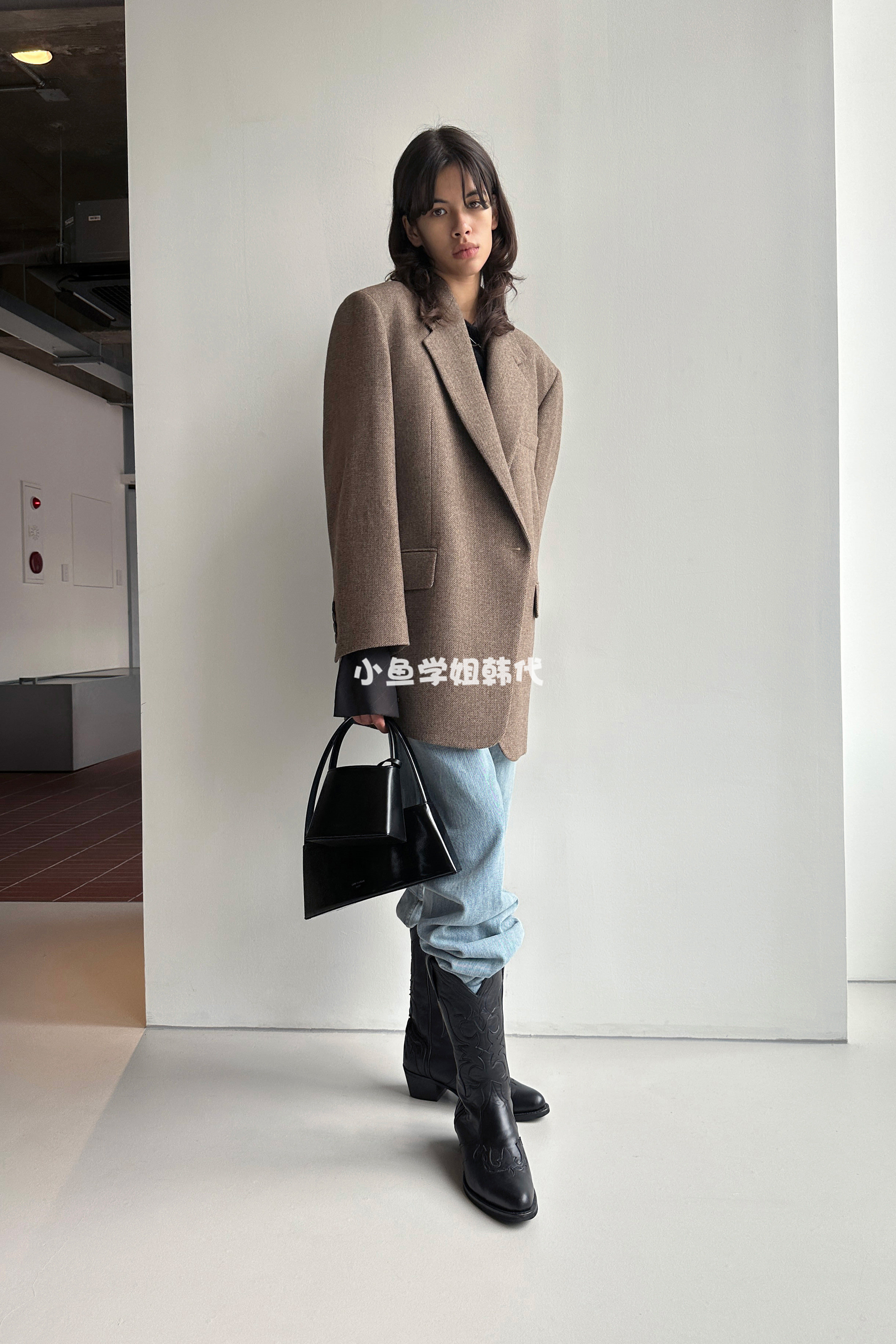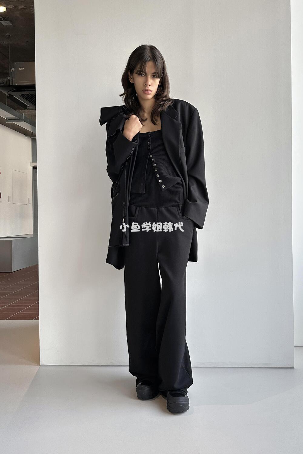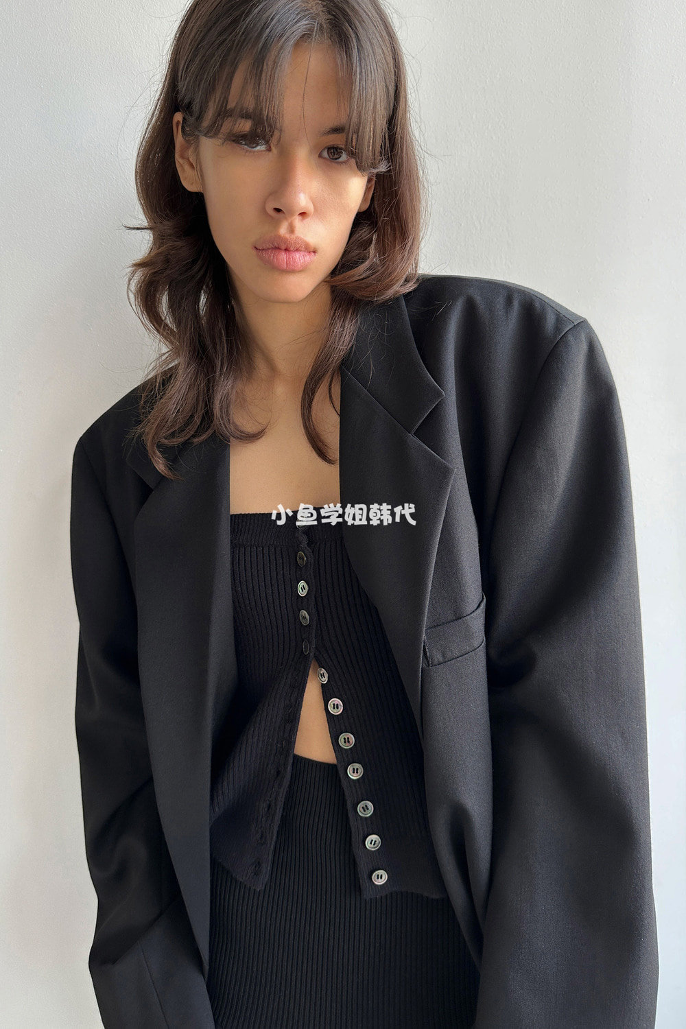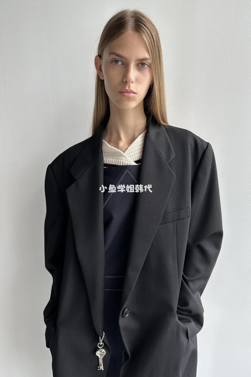 Домашнее место с низкой классикой Ян Чао Ян Чао та же самая шерсть лацкана, костюм для пряжки, силуэт