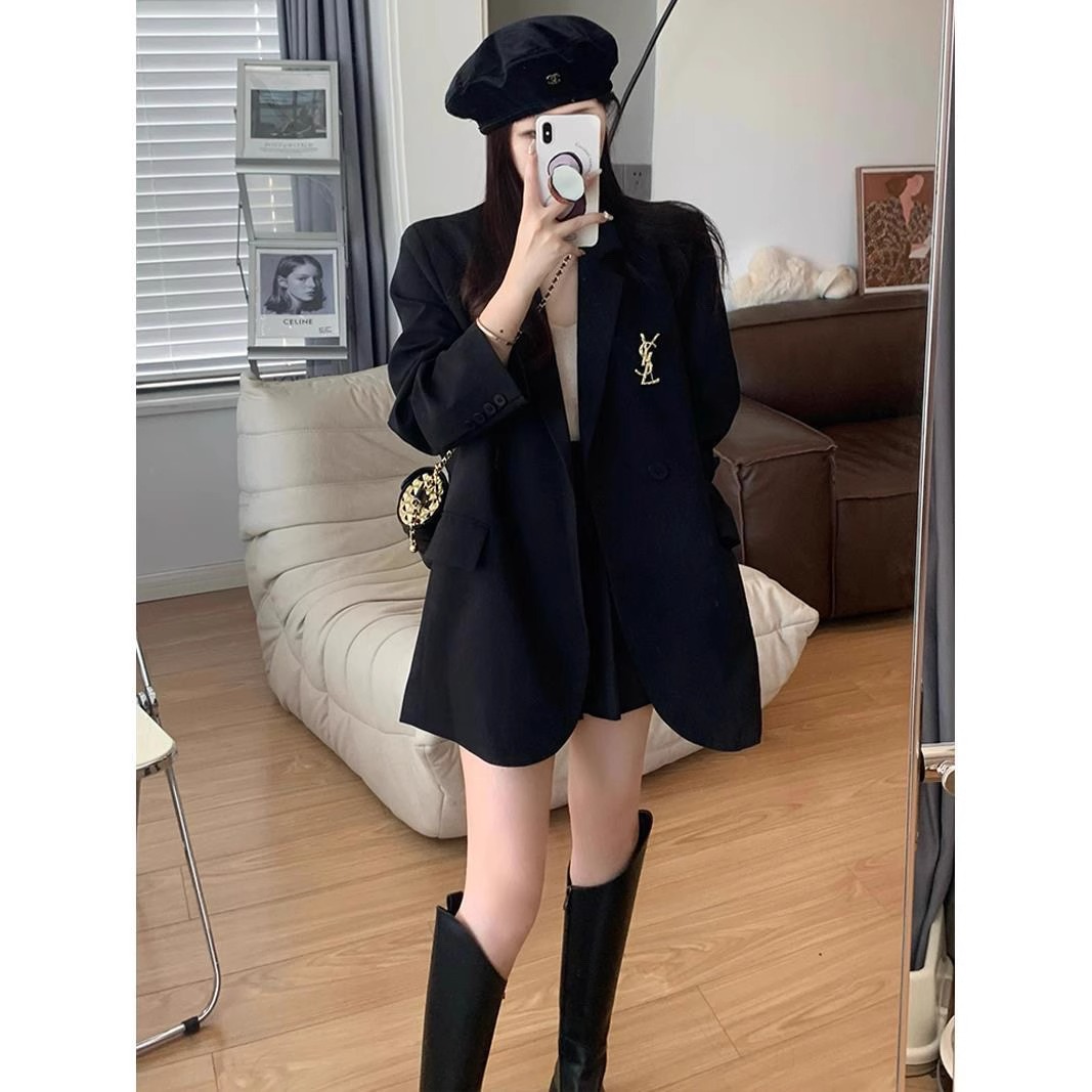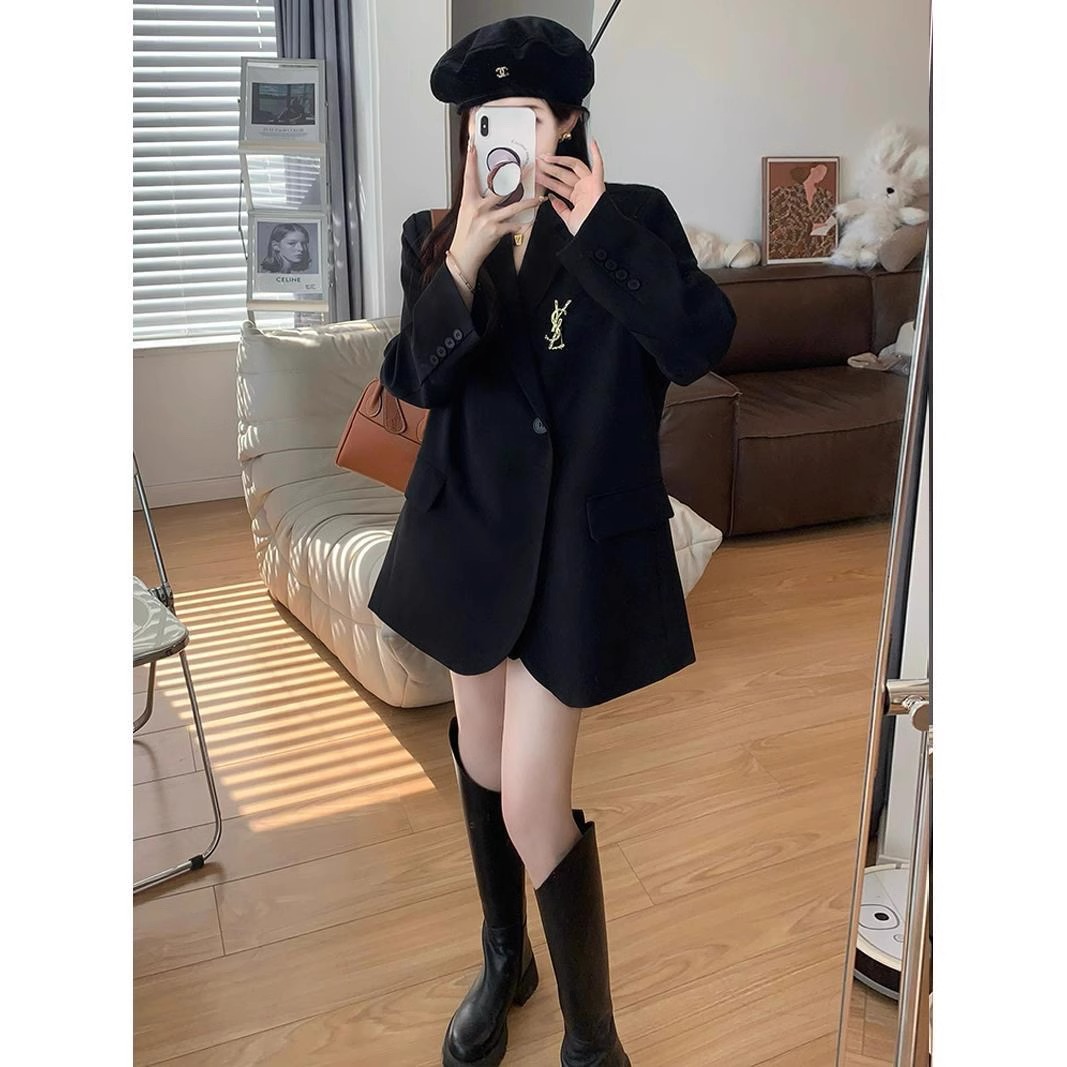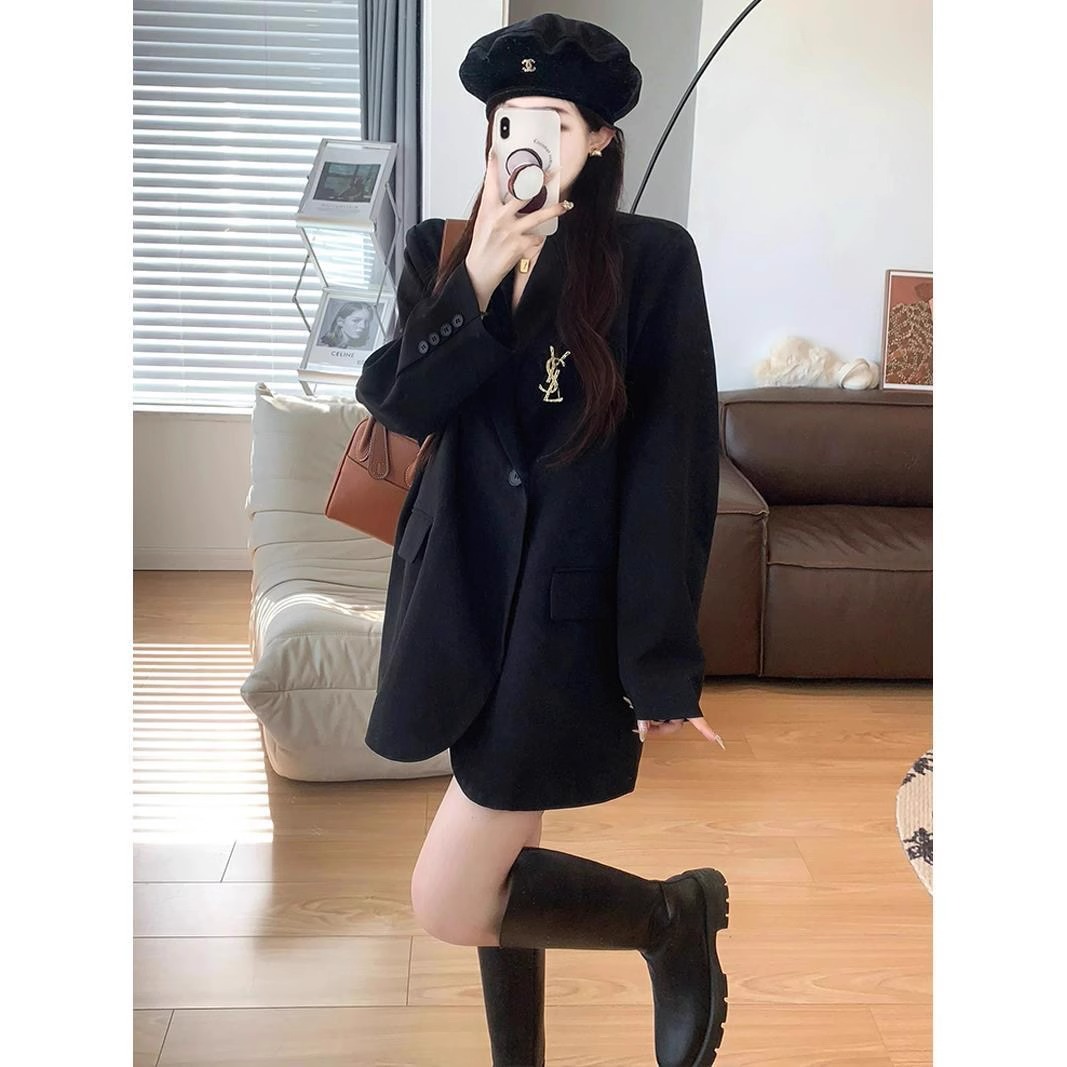 Черный демисезонный пиджак классического кроя для отдыха, оверсайз, подходит для подростков, в корейском стиле, изысканный стиль