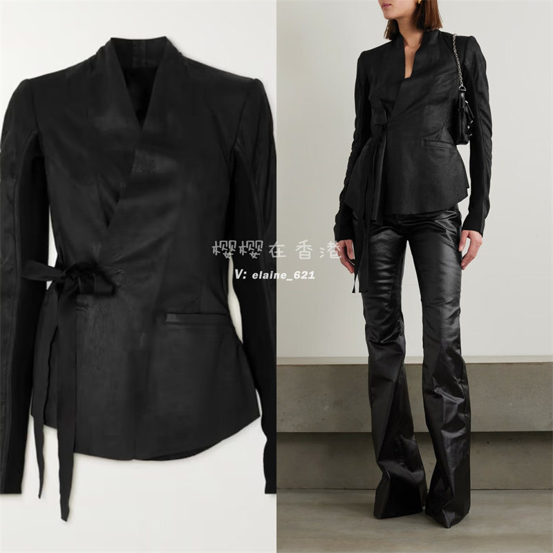 Скидка 60 % в году!Гонконгская прямая почтовая почта Рик Оуэнс Голливуд 2024 Весна и летний кожаный пиджак