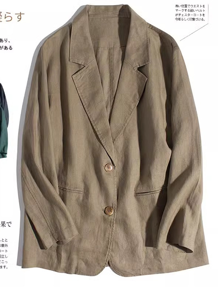 Осенний демисезонный ретро пиджак классического кроя для отдыха, французский стиль, изысканный стиль, оверсайз, из хлопка и льна