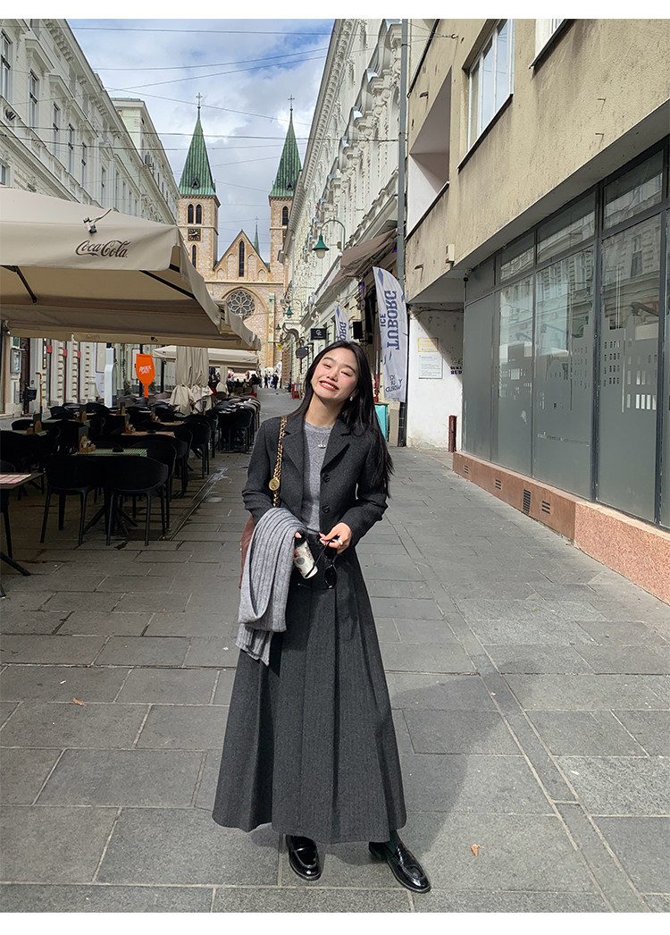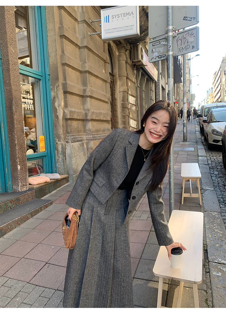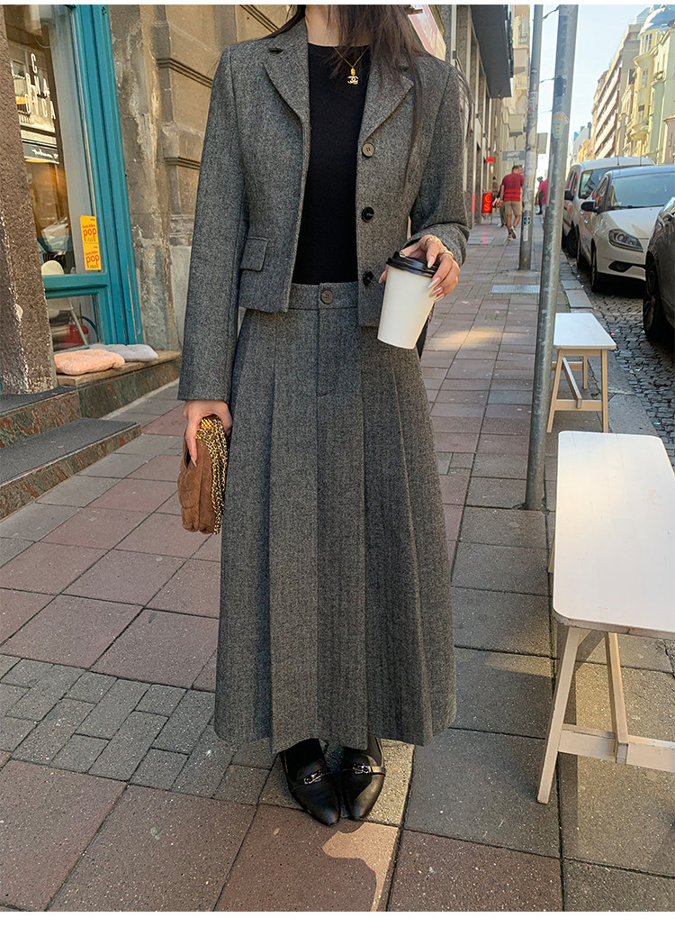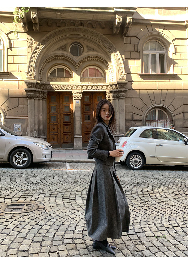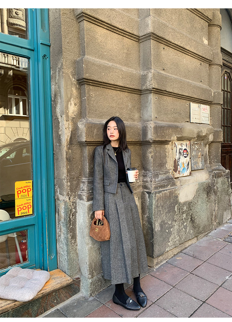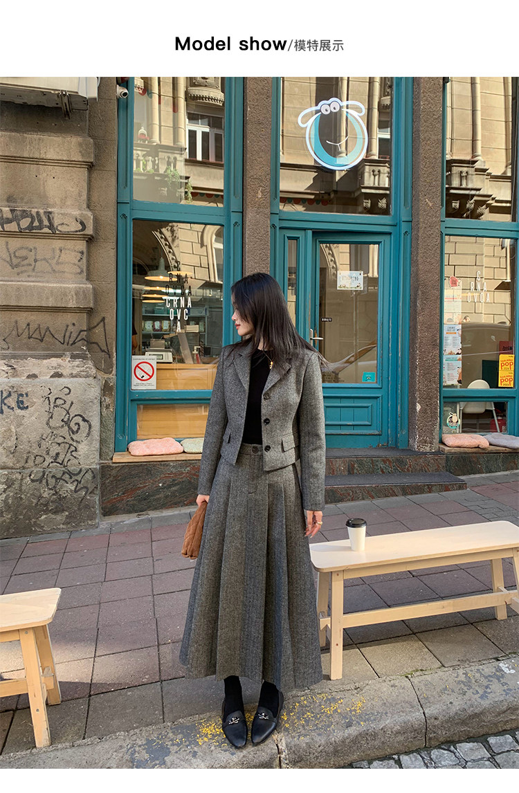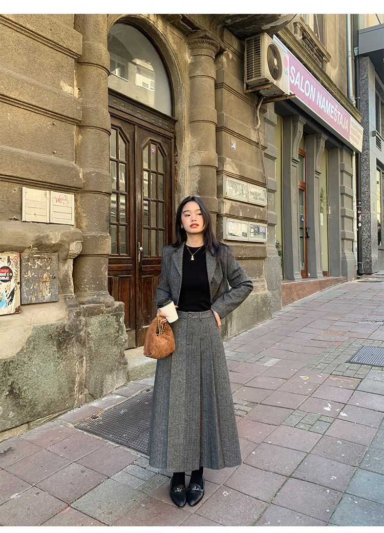 pusumede Короткий шерстяной пиджак классического кроя, юбка в складку, комплект, изысканный стиль