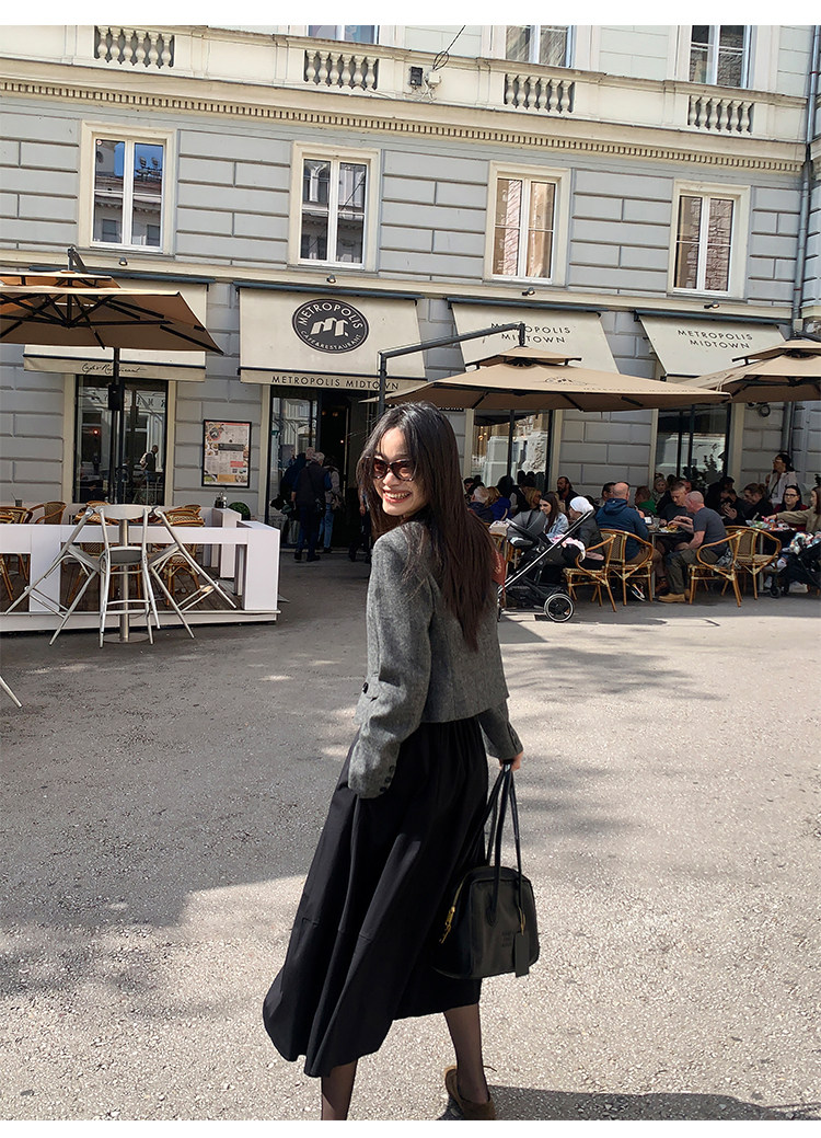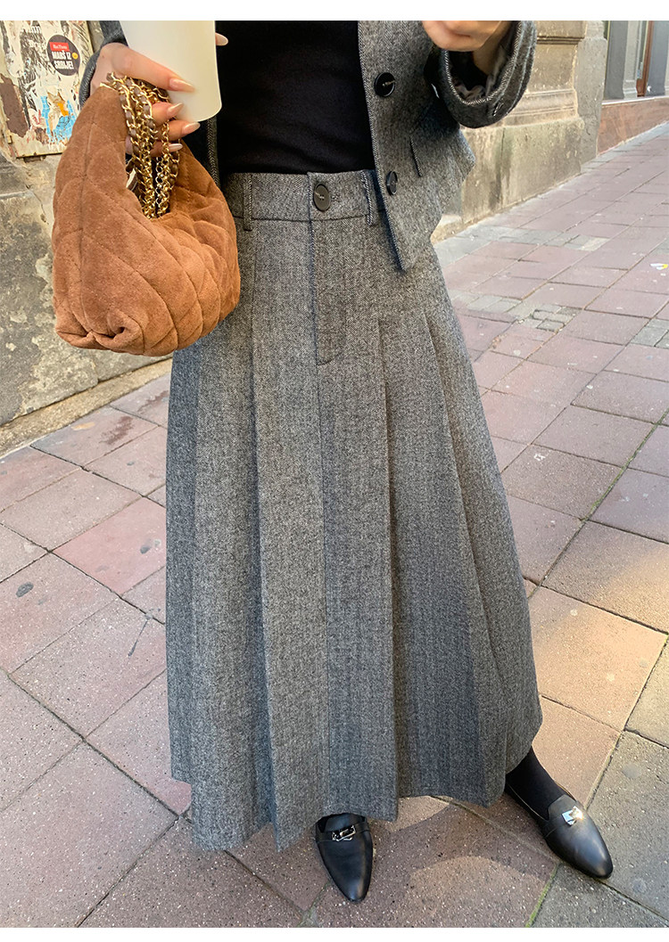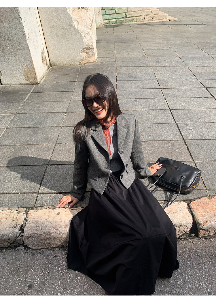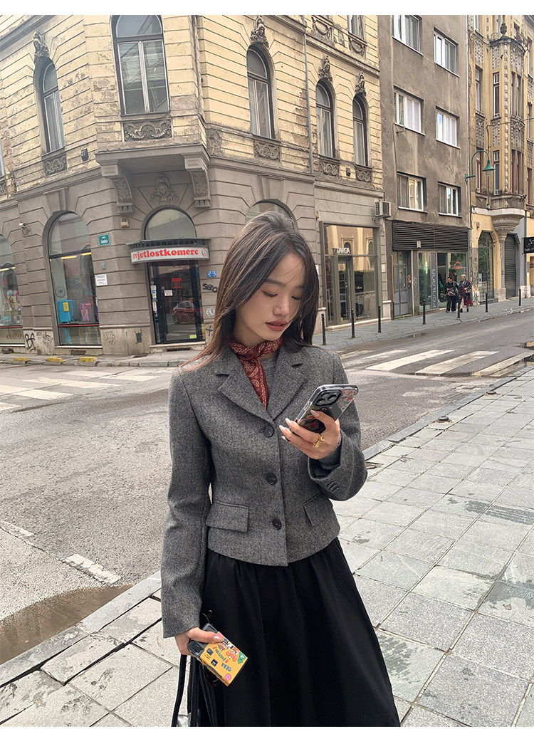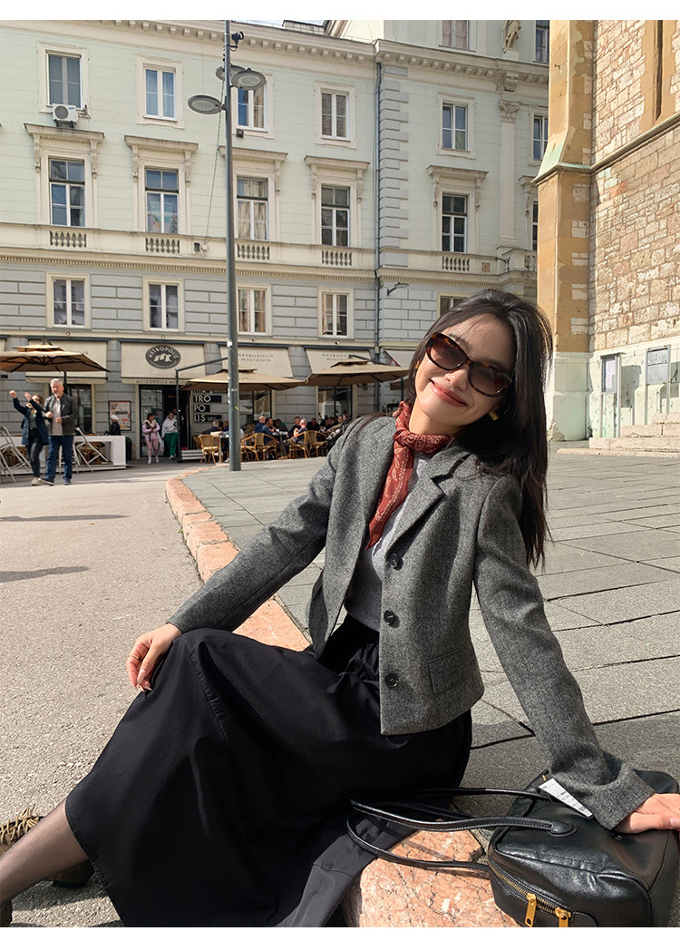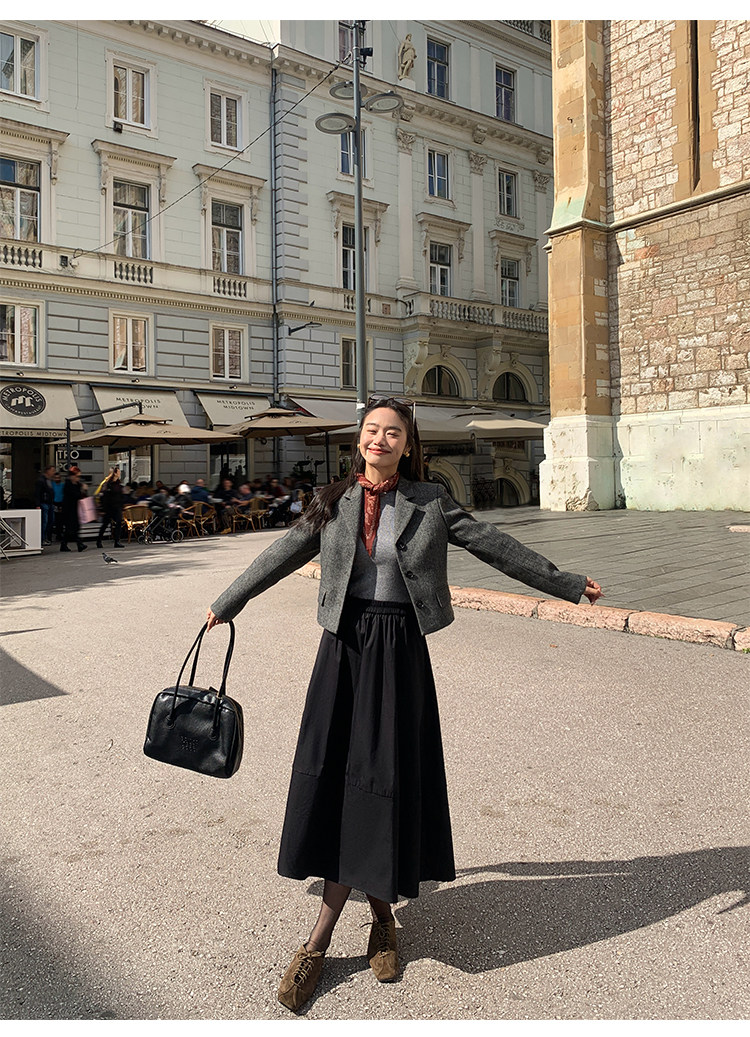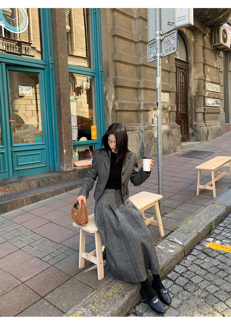 pusumede Короткий шерстяной пиджак классического кроя, юбка в складку, комплект, изысканный стиль