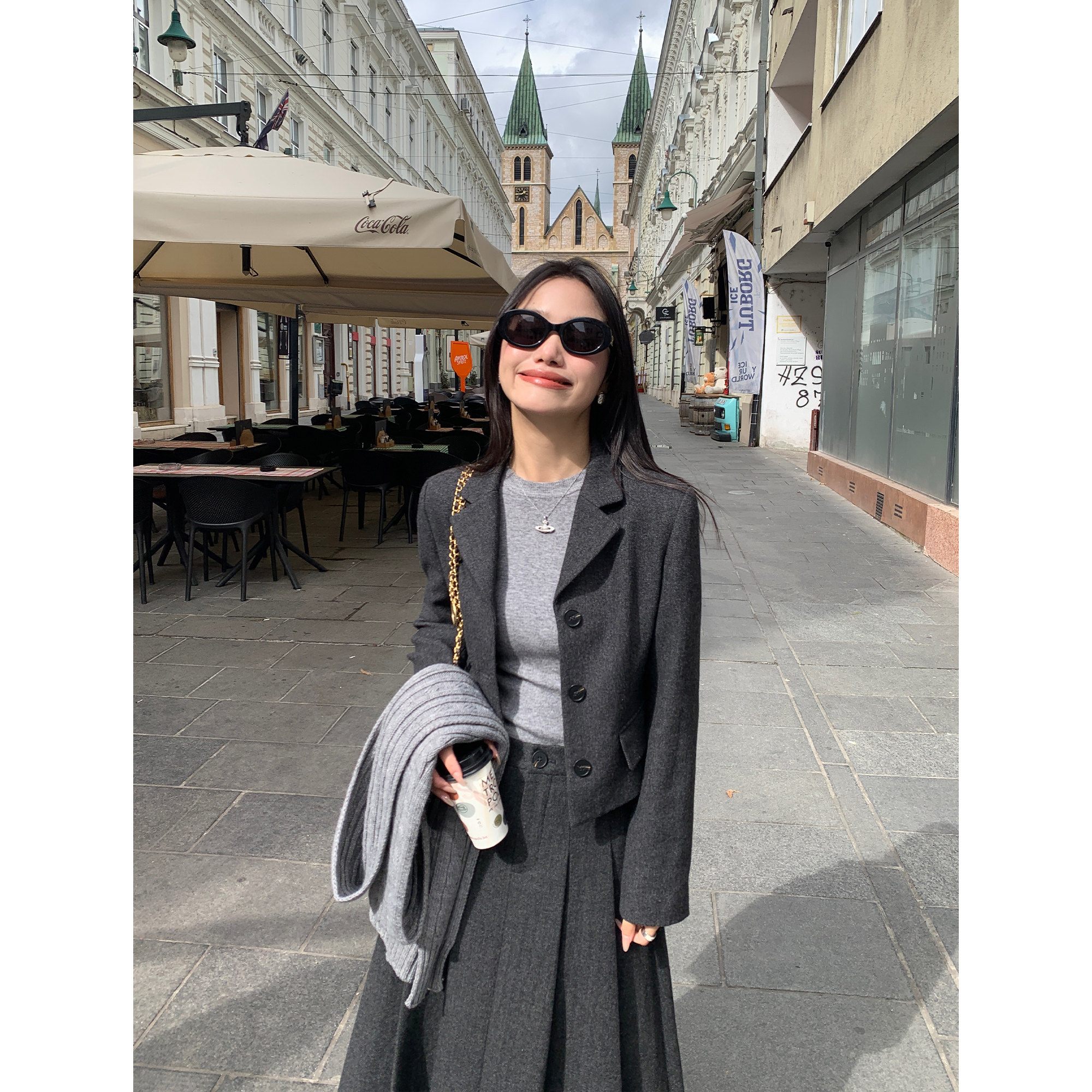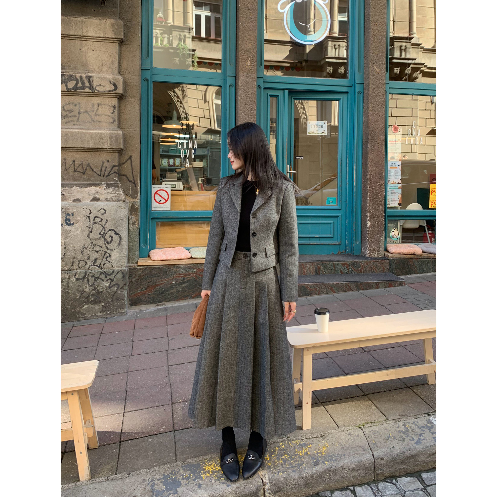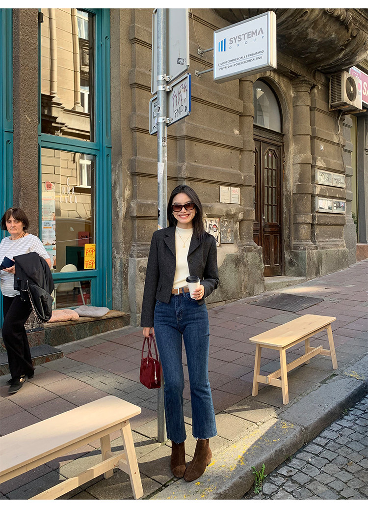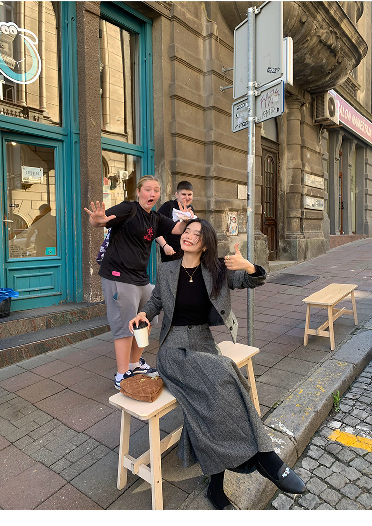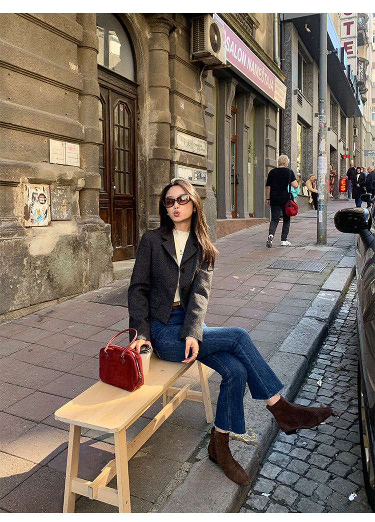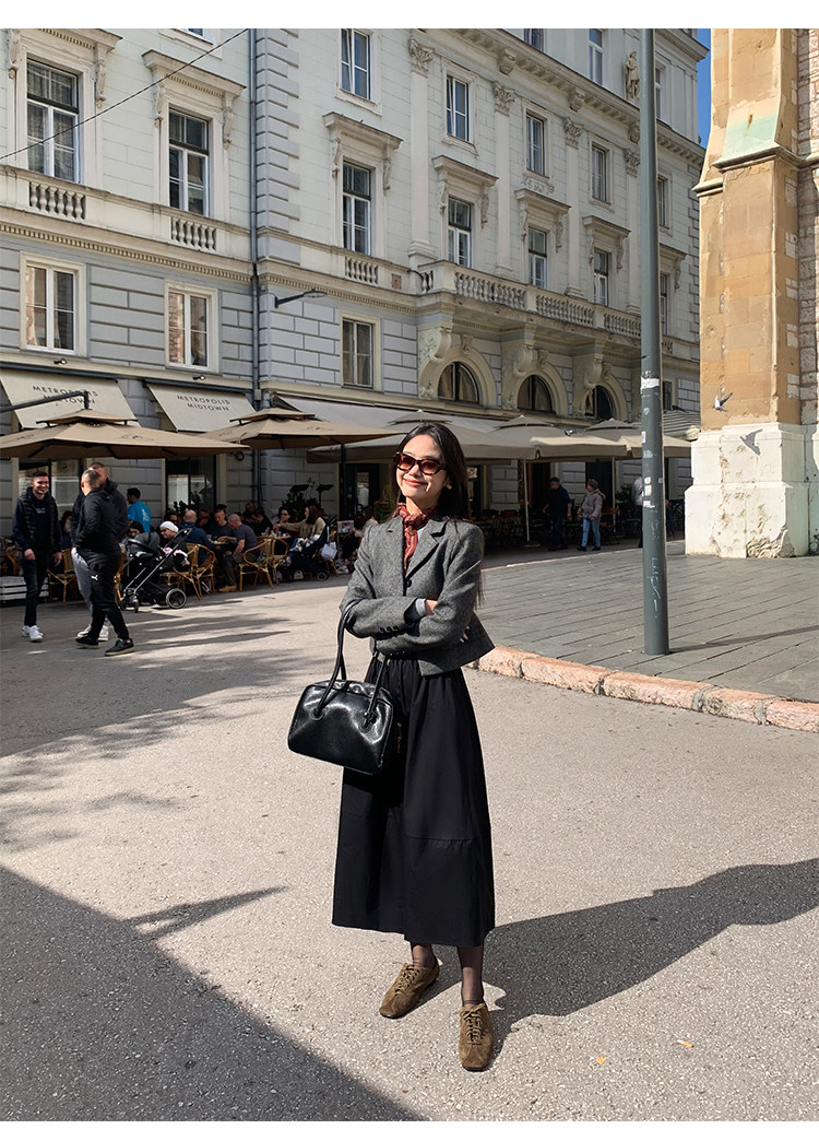 pusumede Короткий шерстяной пиджак классического кроя, юбка в складку, комплект, изысканный стиль