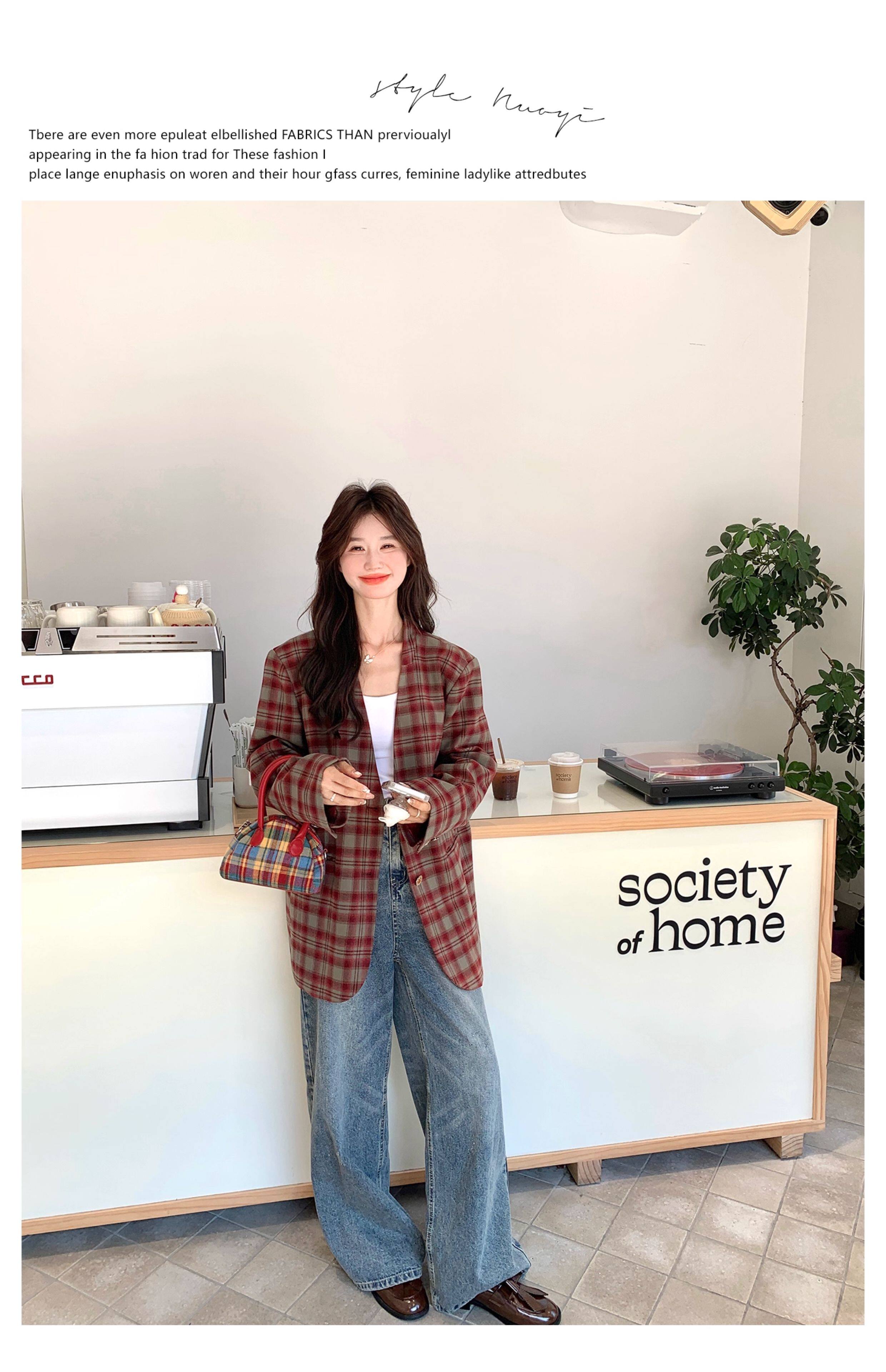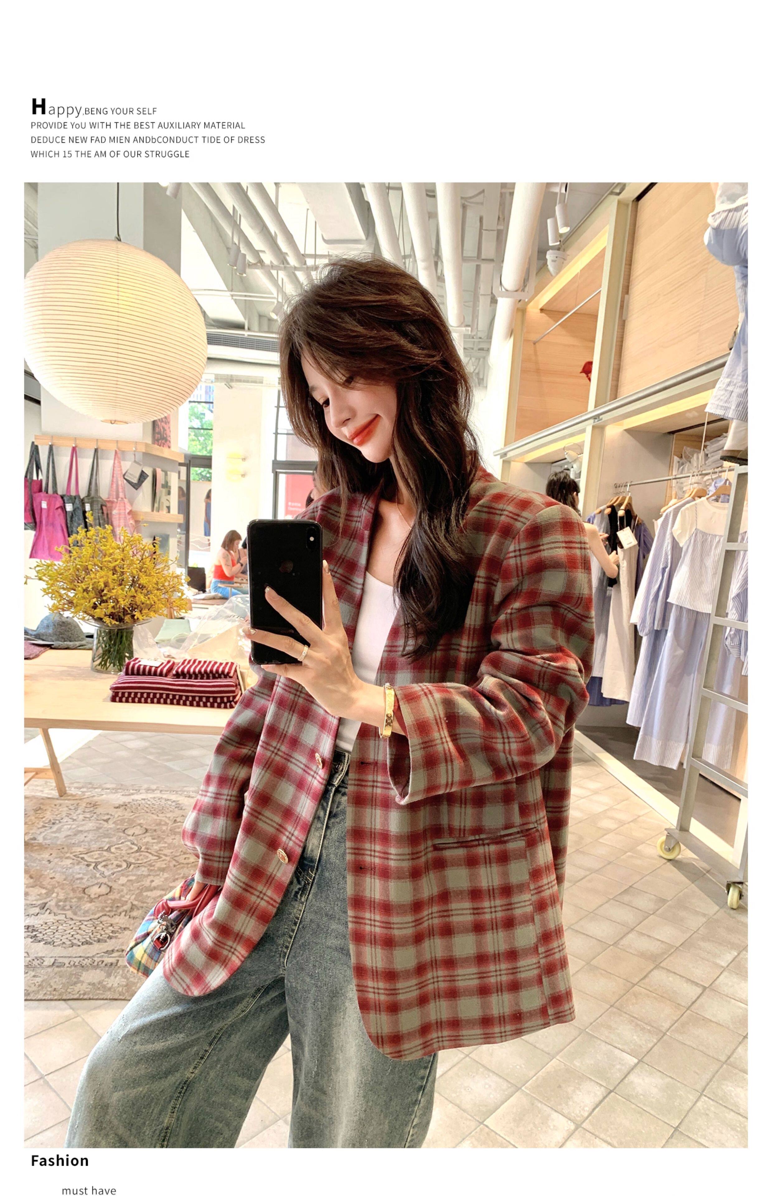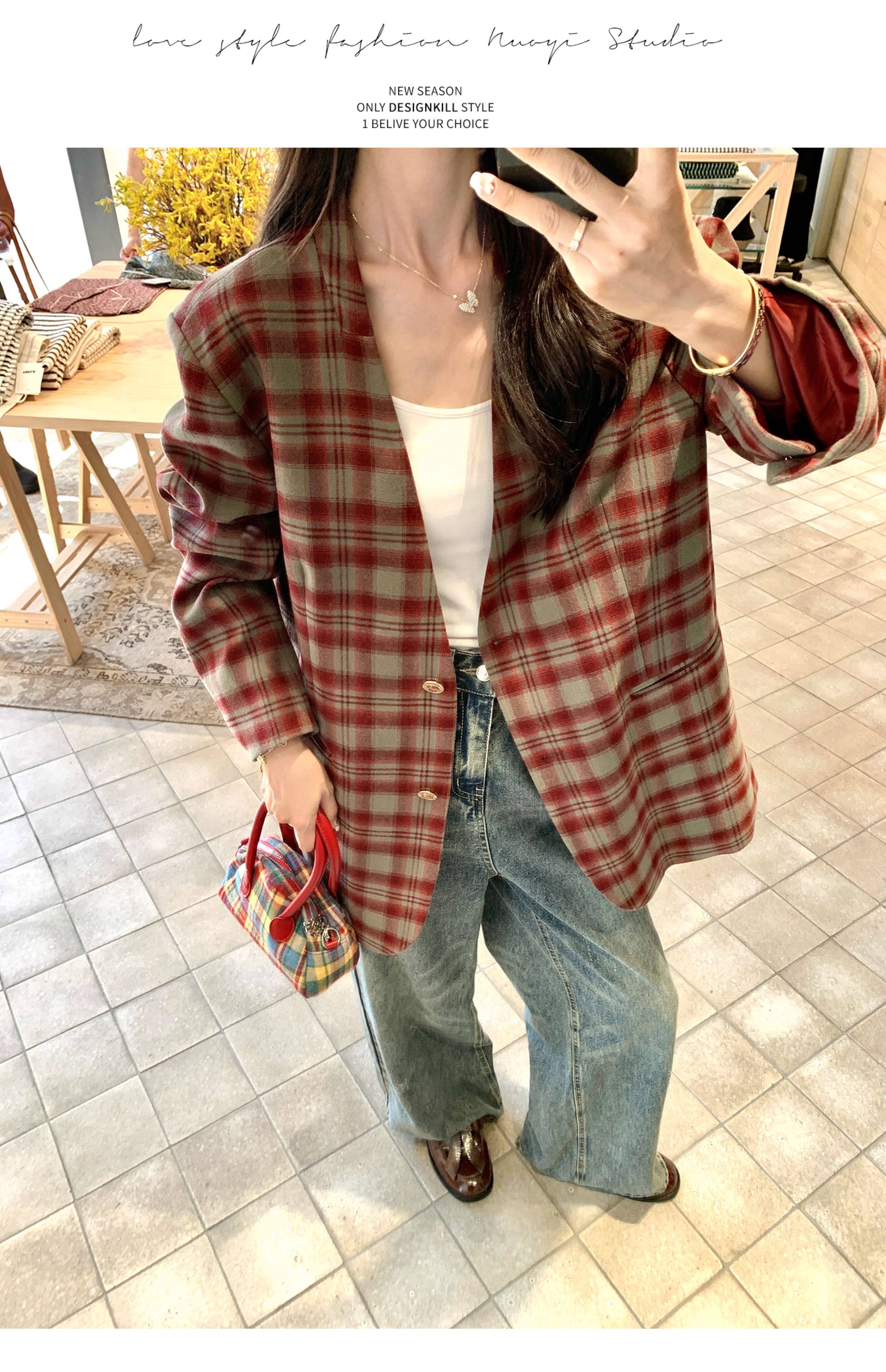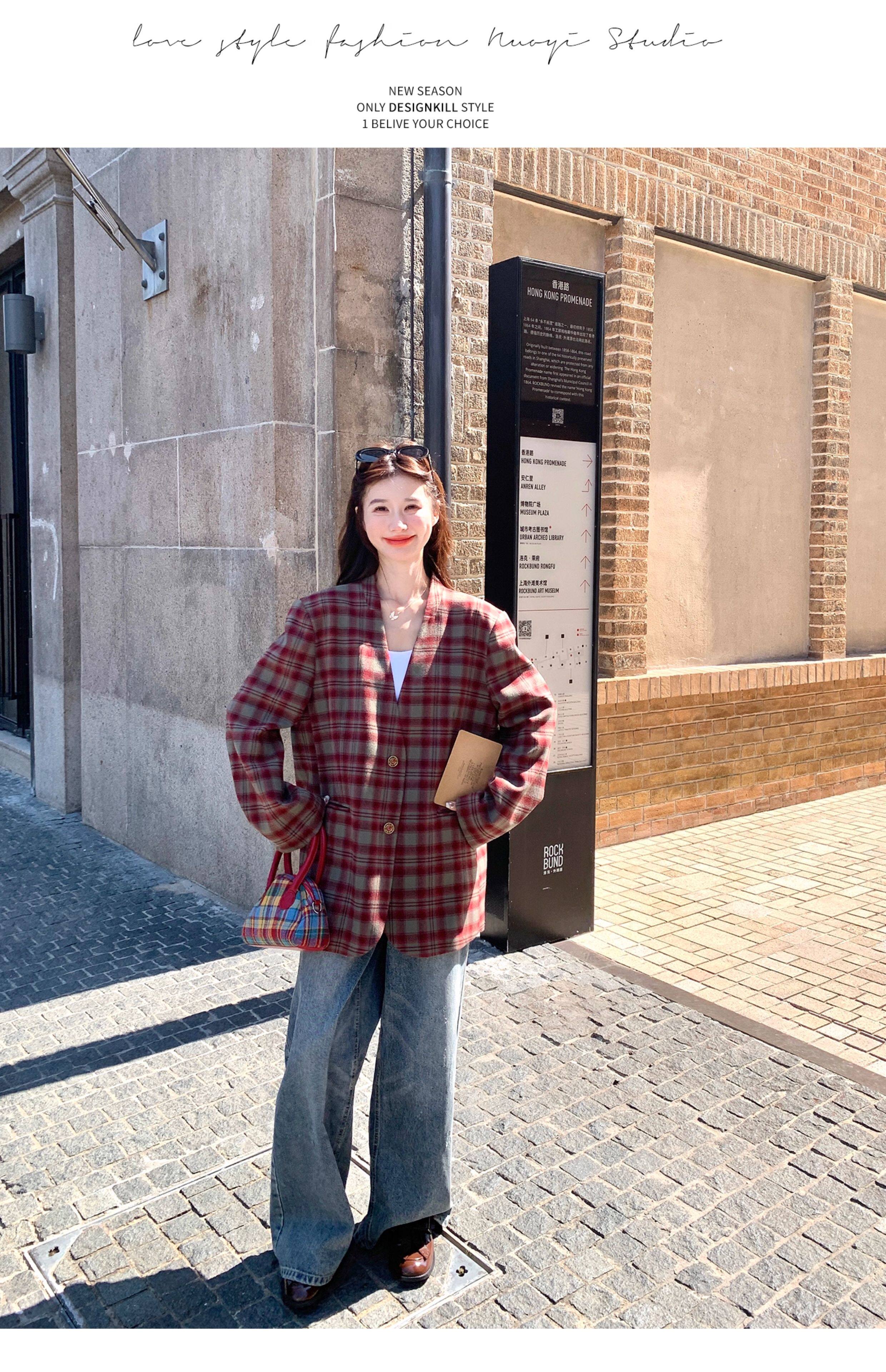 Красный пиджак классического кроя для отдыха, изысканный стиль, V-образный вырез, осенний