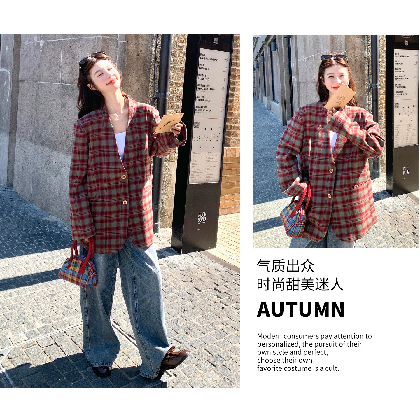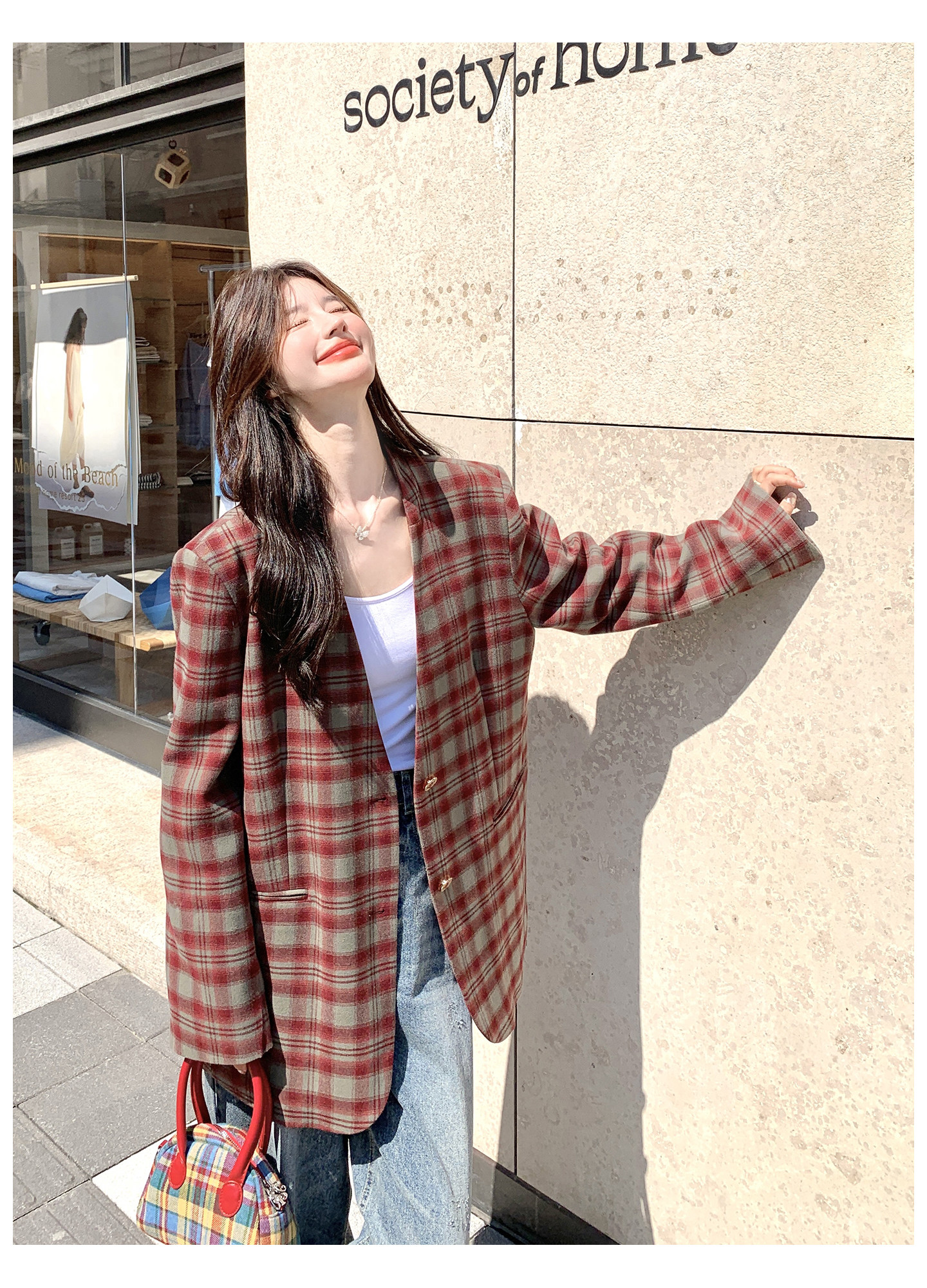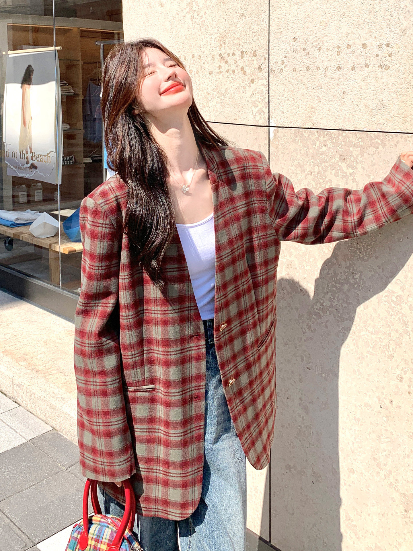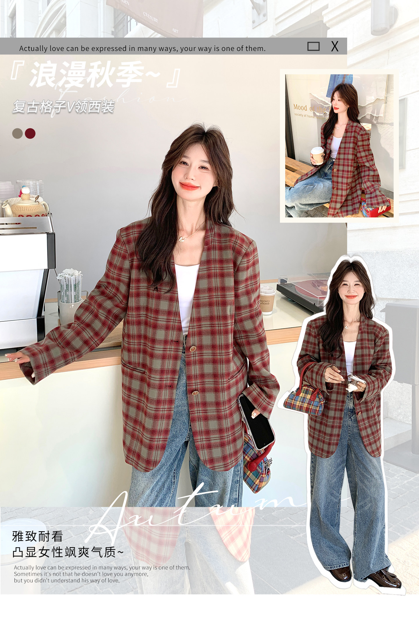 Красный пиджак классического кроя для отдыха, изысканный стиль, V-образный вырез, осенний