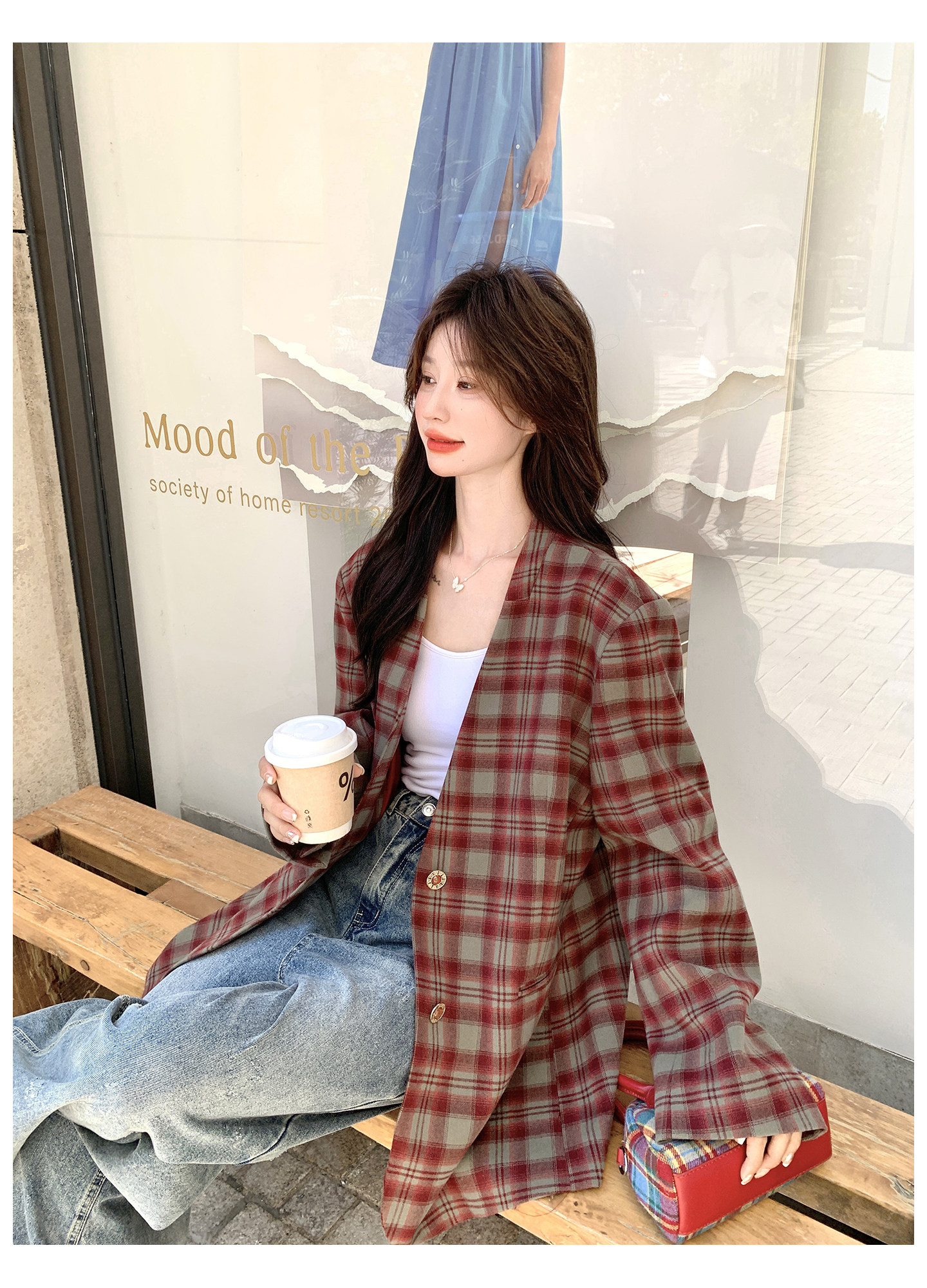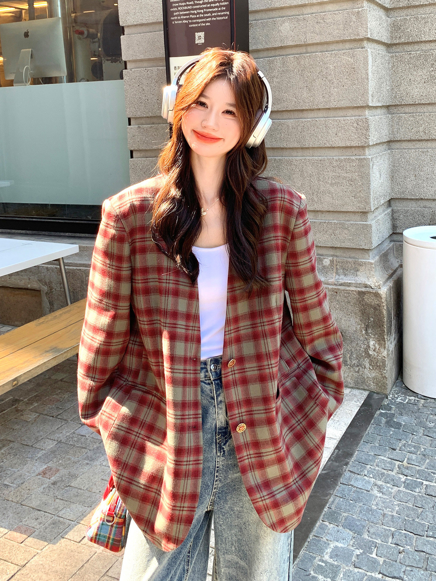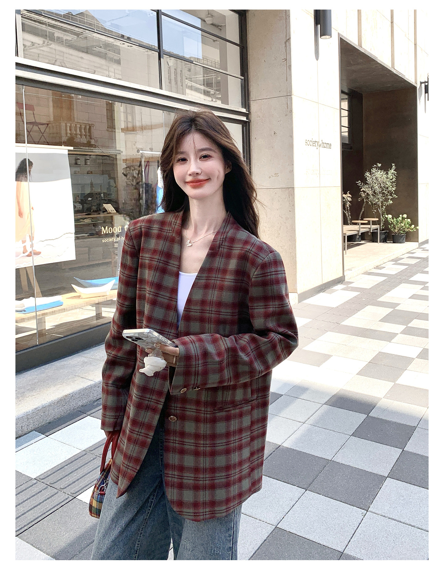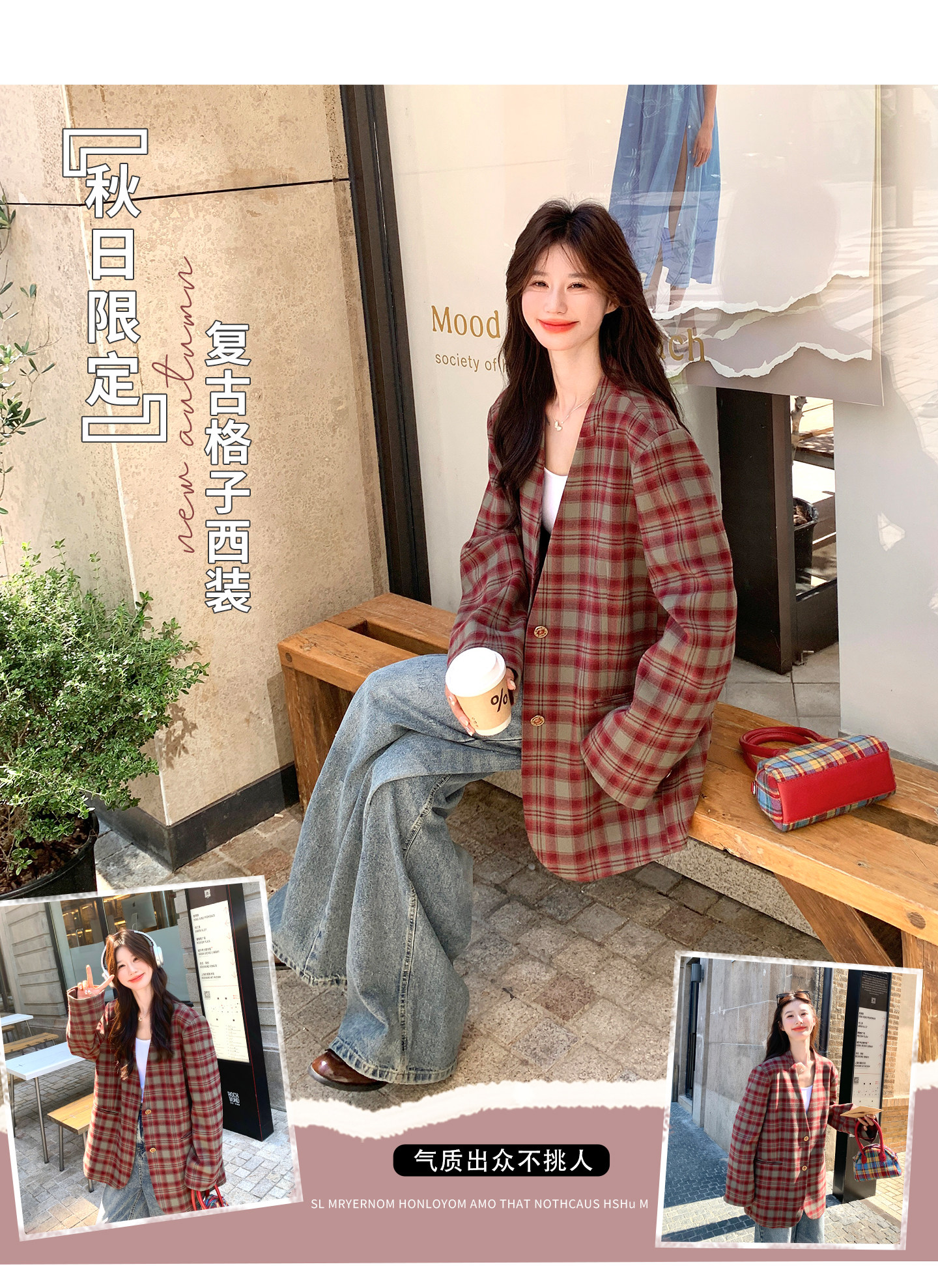 Красный пиджак классического кроя для отдыха, изысканный стиль, V-образный вырез, осенний