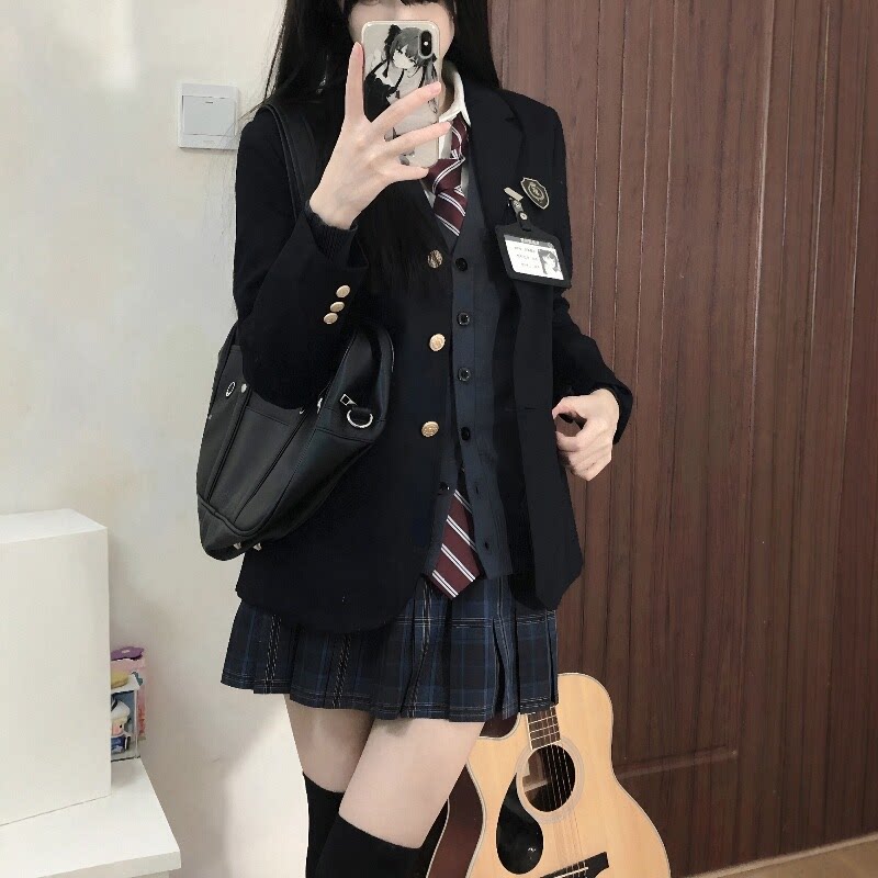 Черная студенческая юбка в складку, оригинальный костюм, комплект, демисезонный приталенный корсет, 3 предмета
