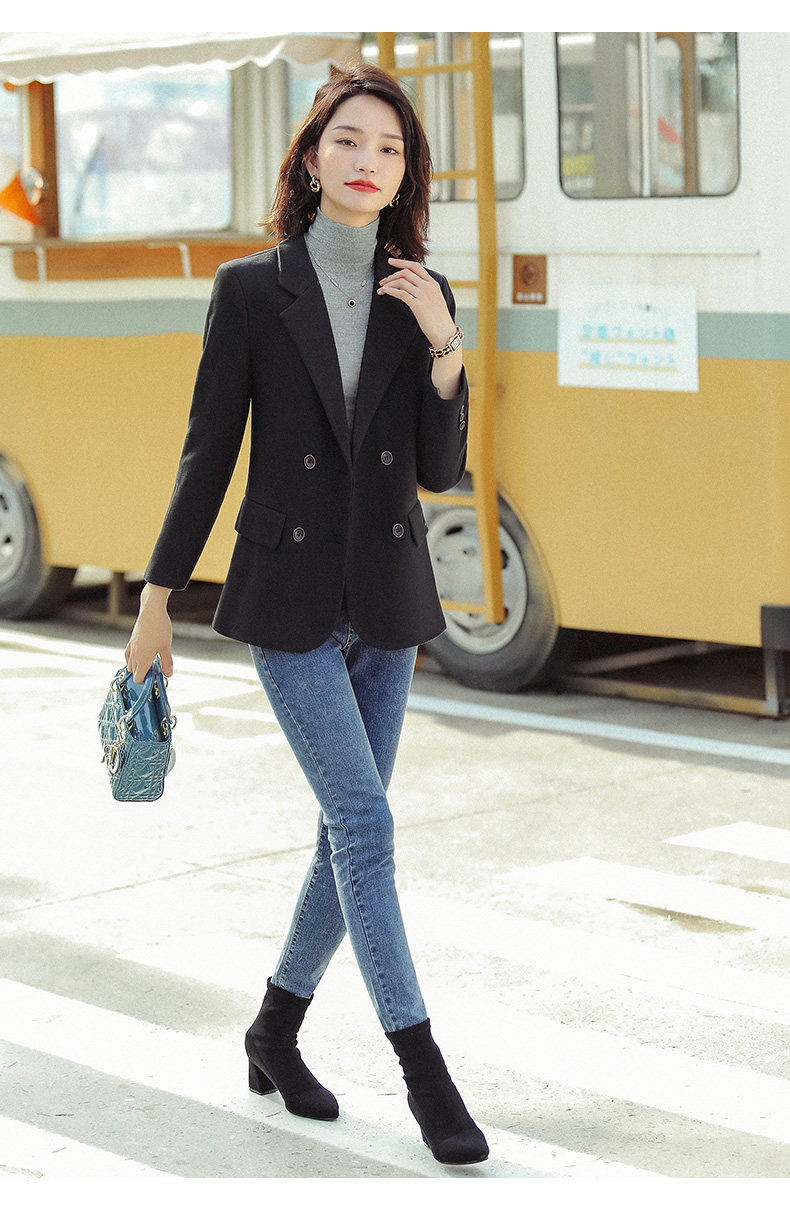 Черный шерстяной демисезонный стеганый пиджак классического кроя, изысканный стиль, подходит для подростков