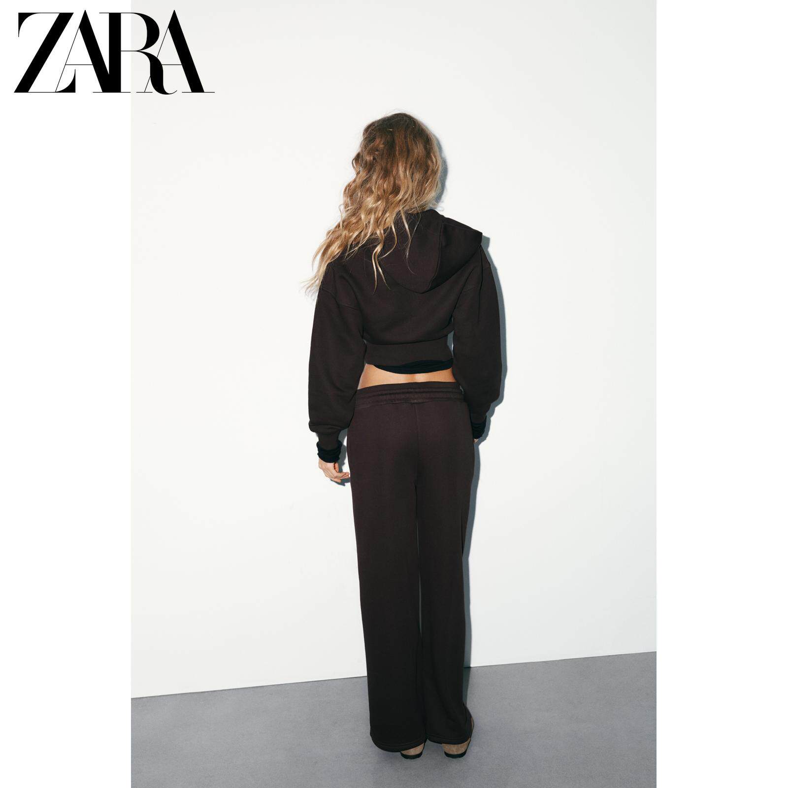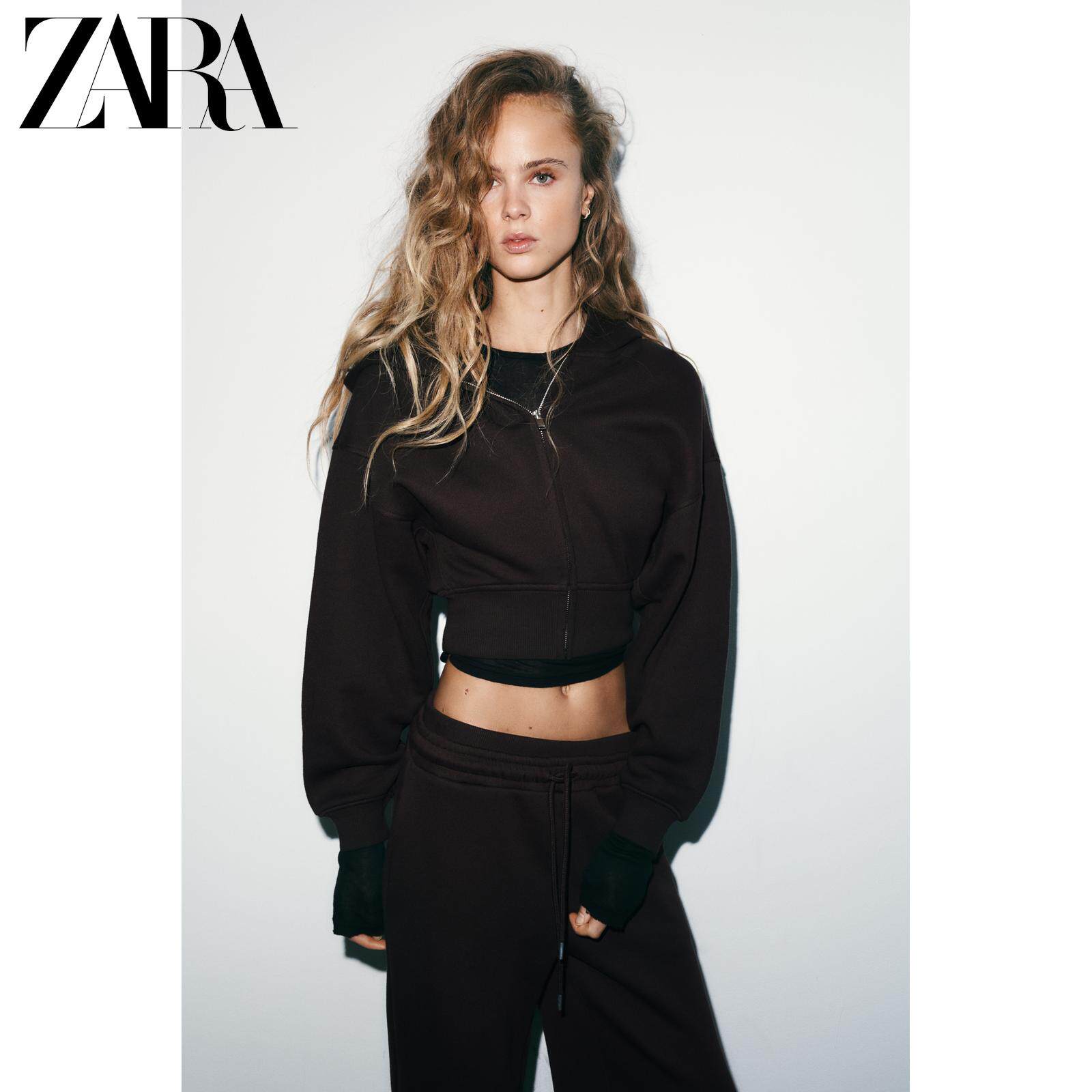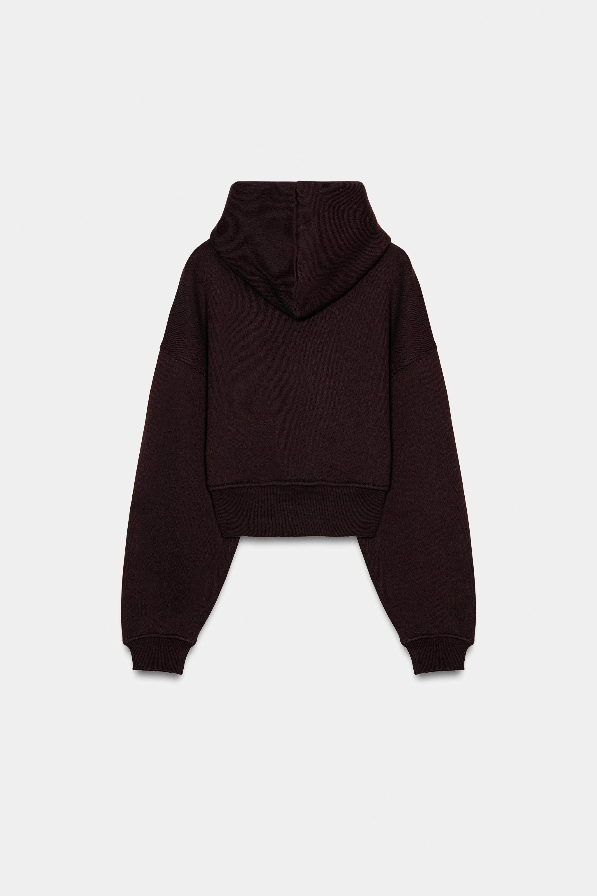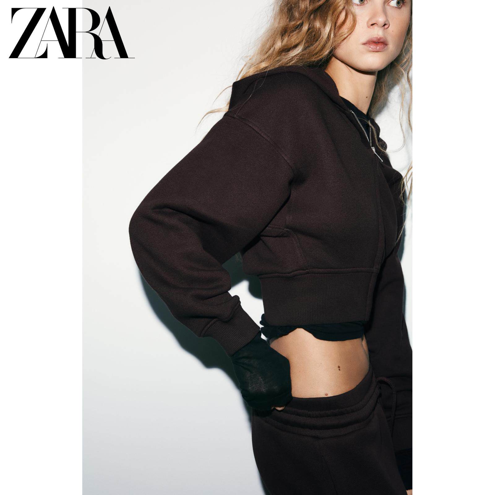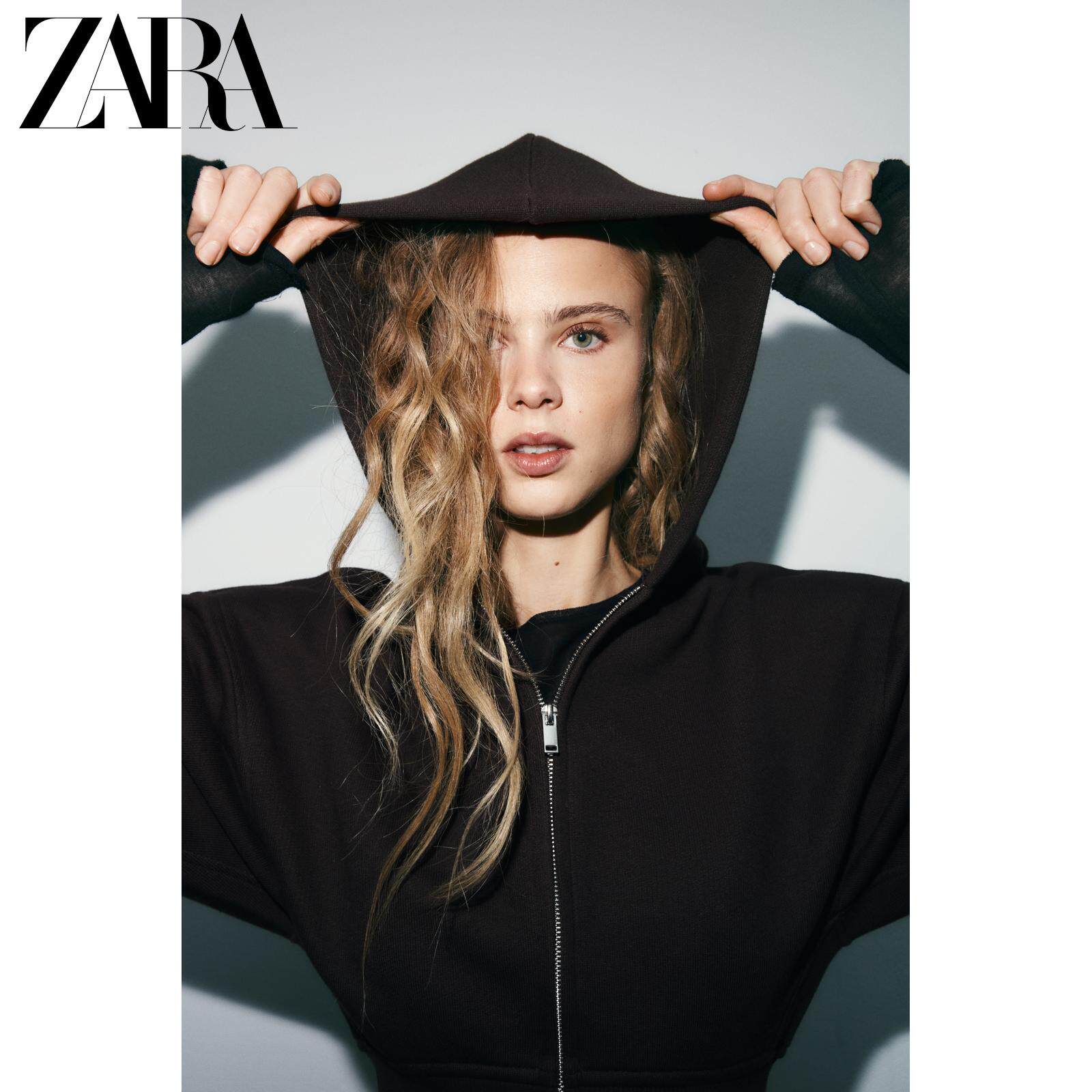 ZARA Зимняя новинка 2025 года, женская короткая толстовка с длинными рукавами и круглым вырезом с капюшоном 3199303 700