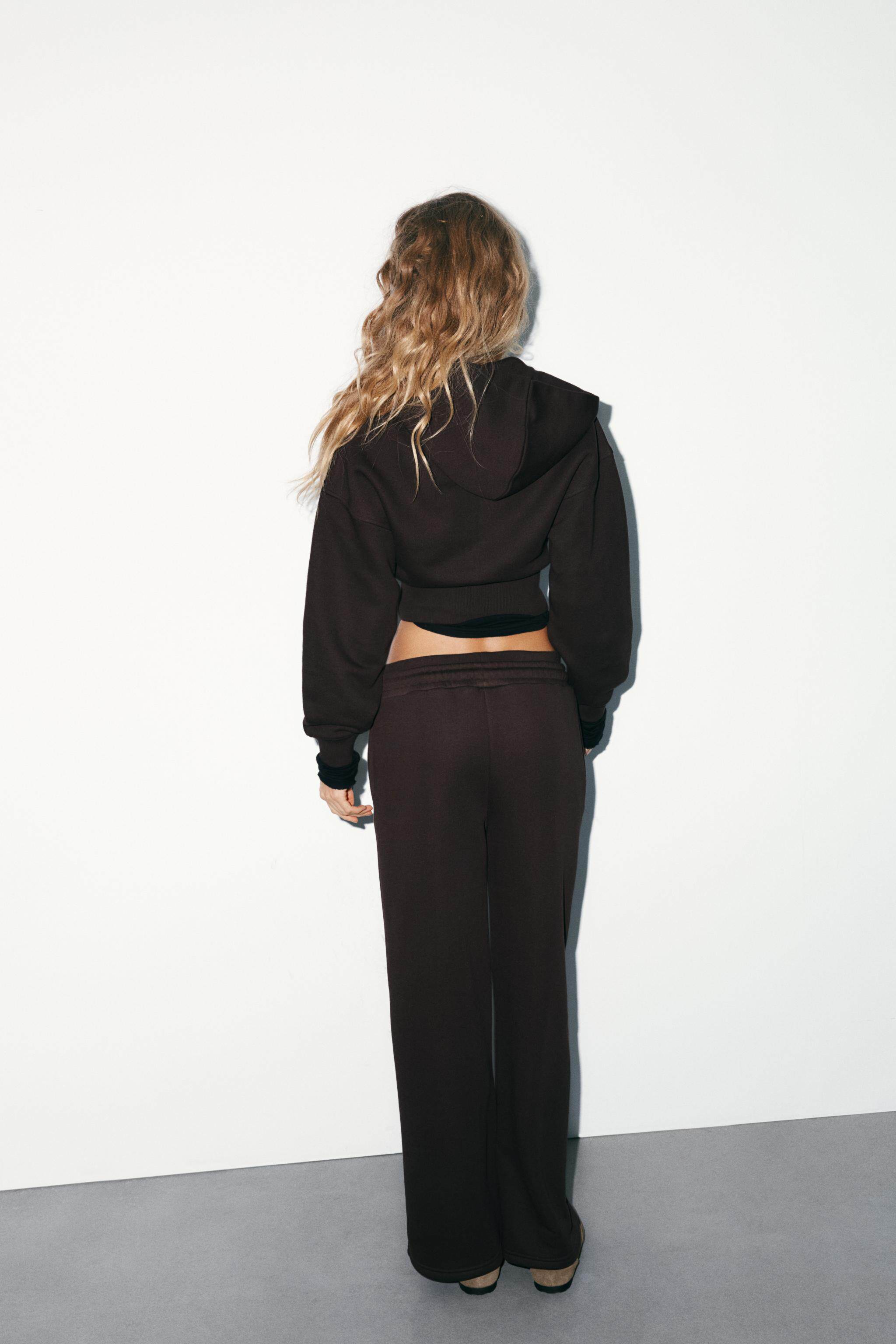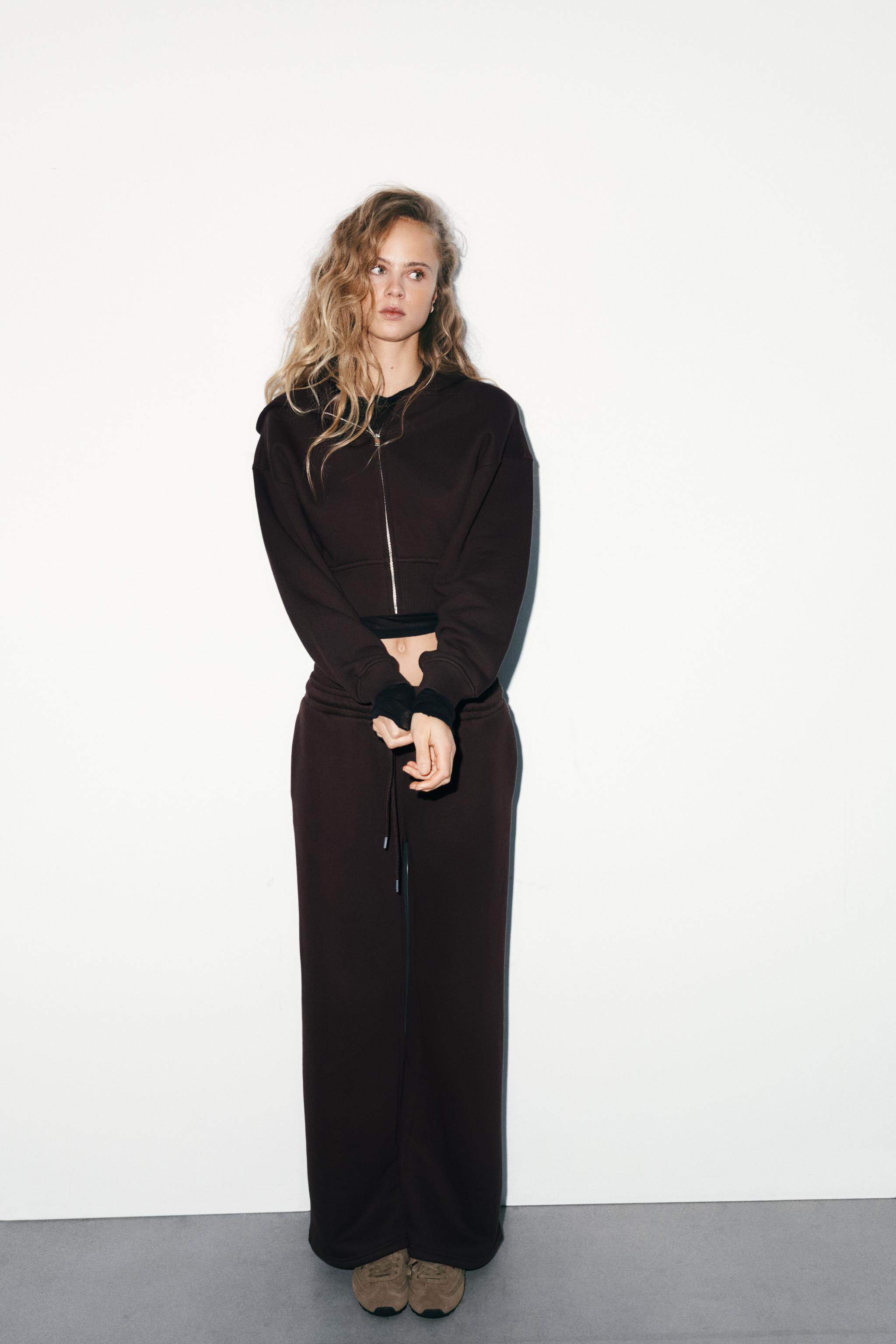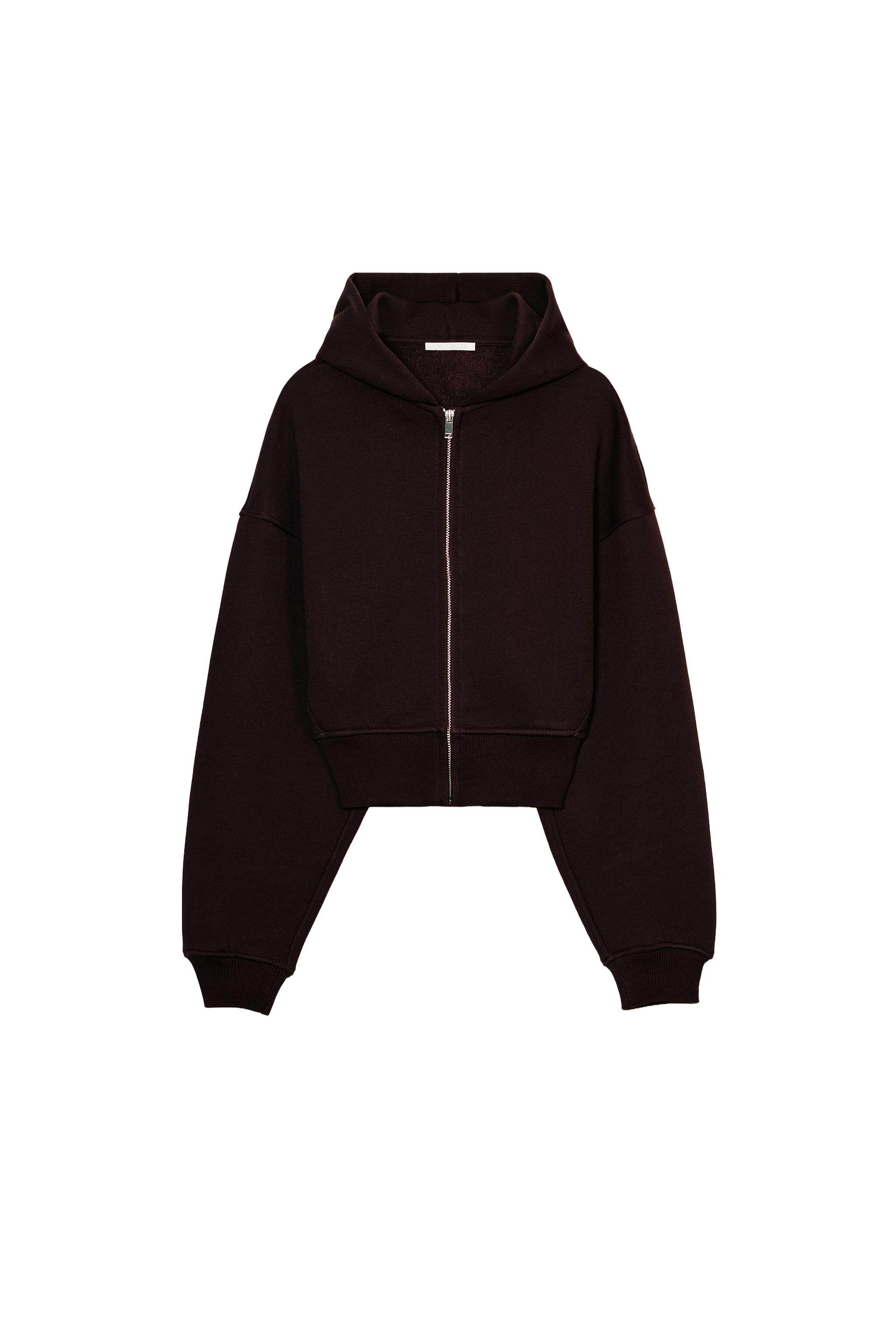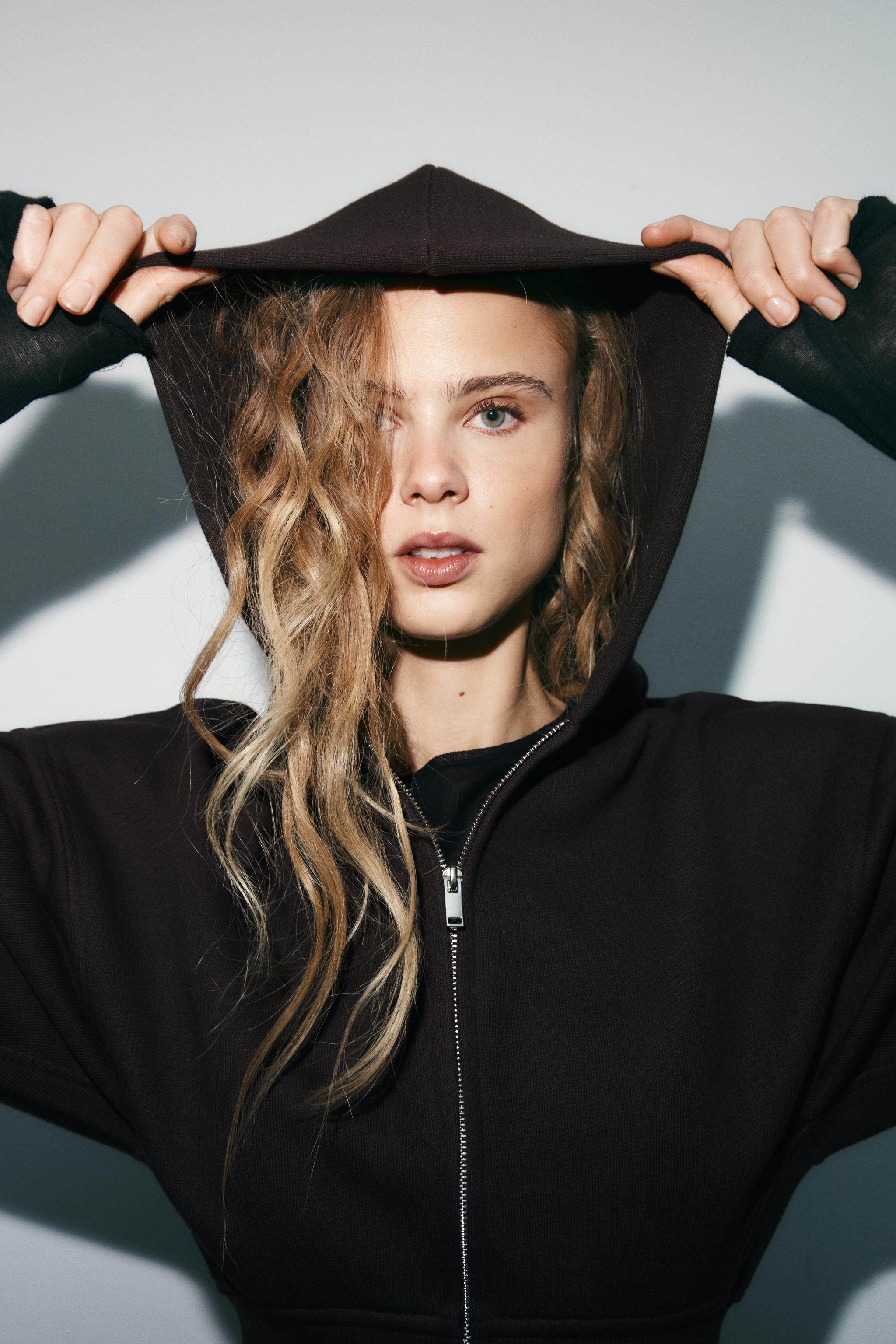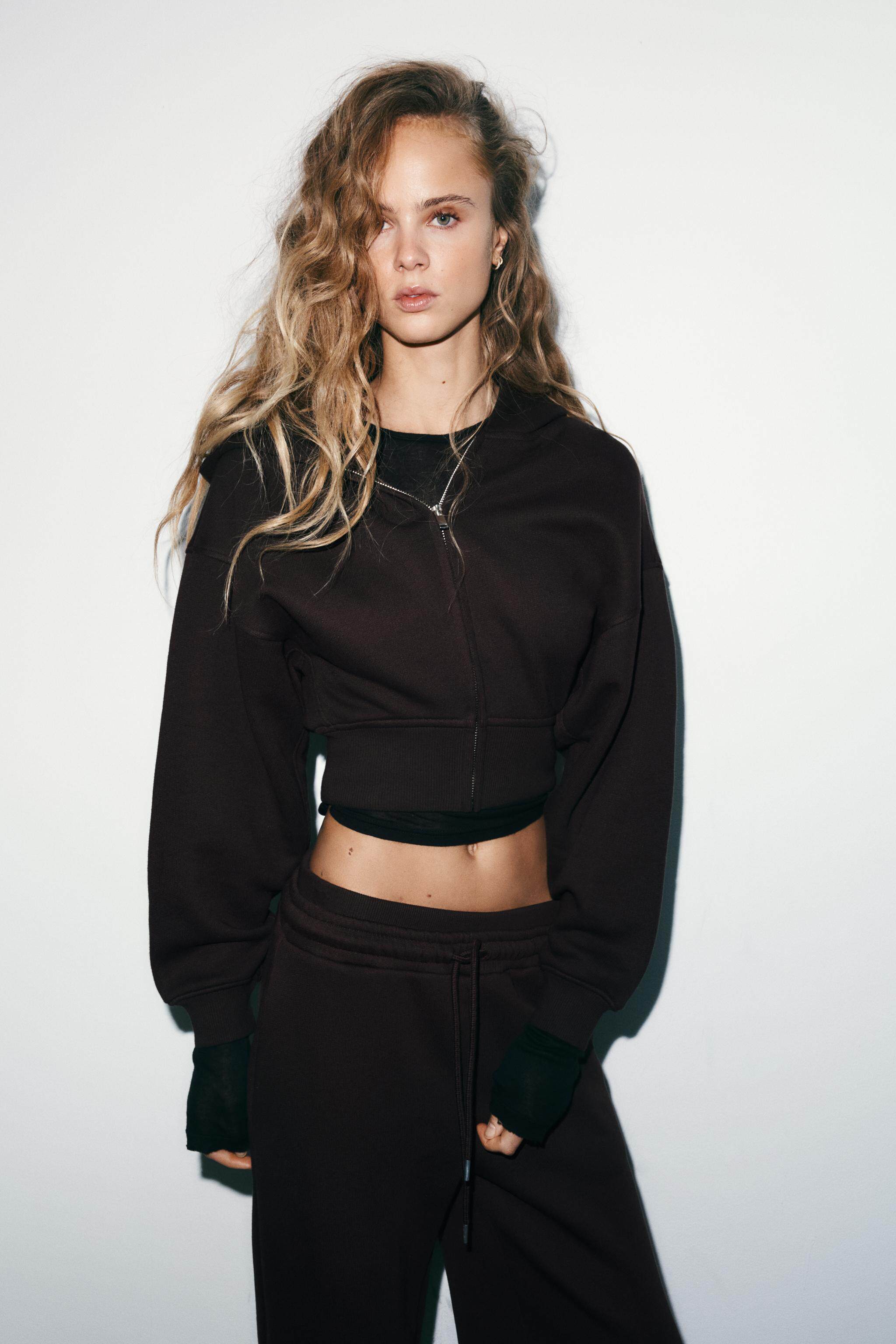 ZARA Зимняя новинка 2025 года, женская короткая толстовка с длинными рукавами и круглым вырезом с капюшоном 3199303 700