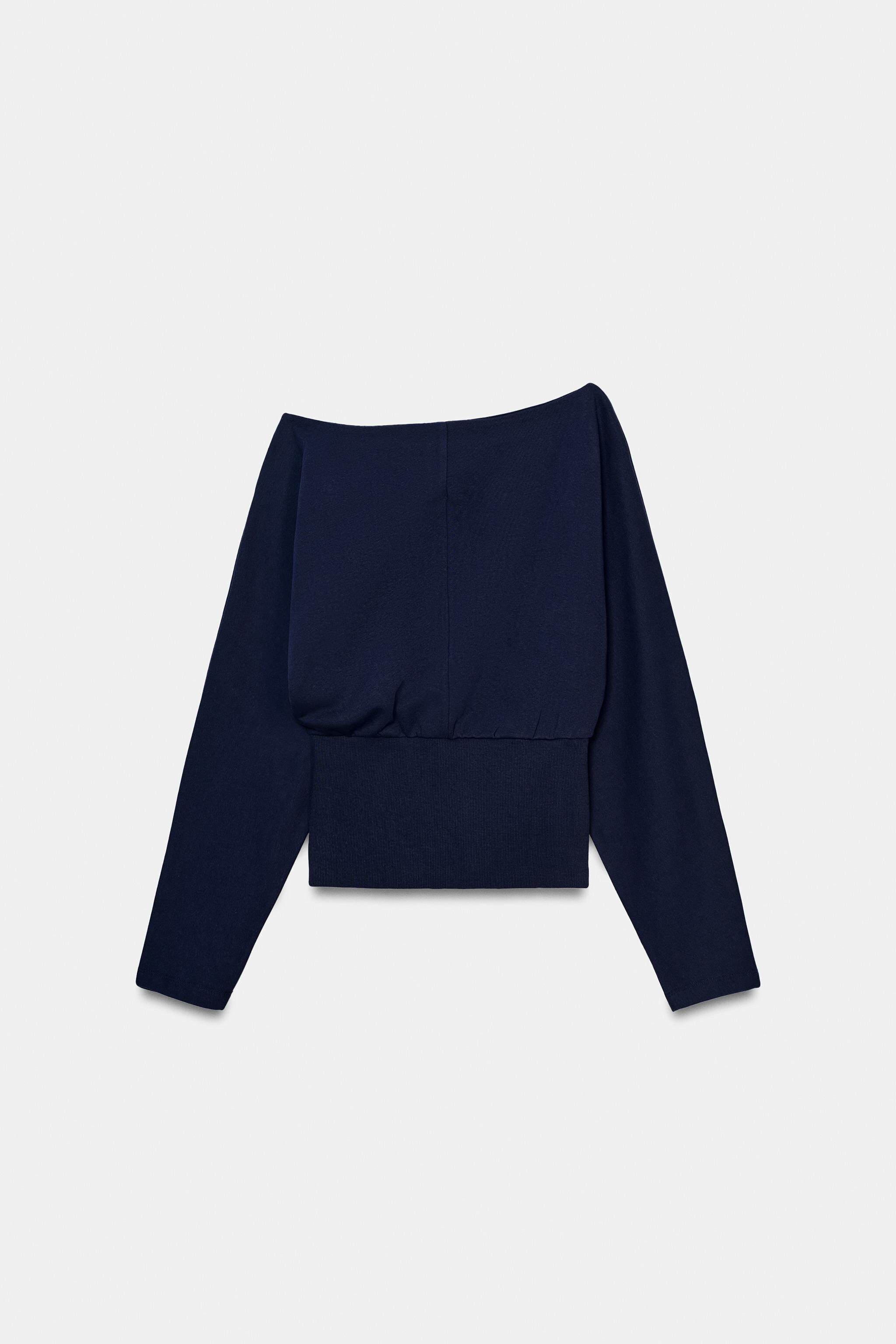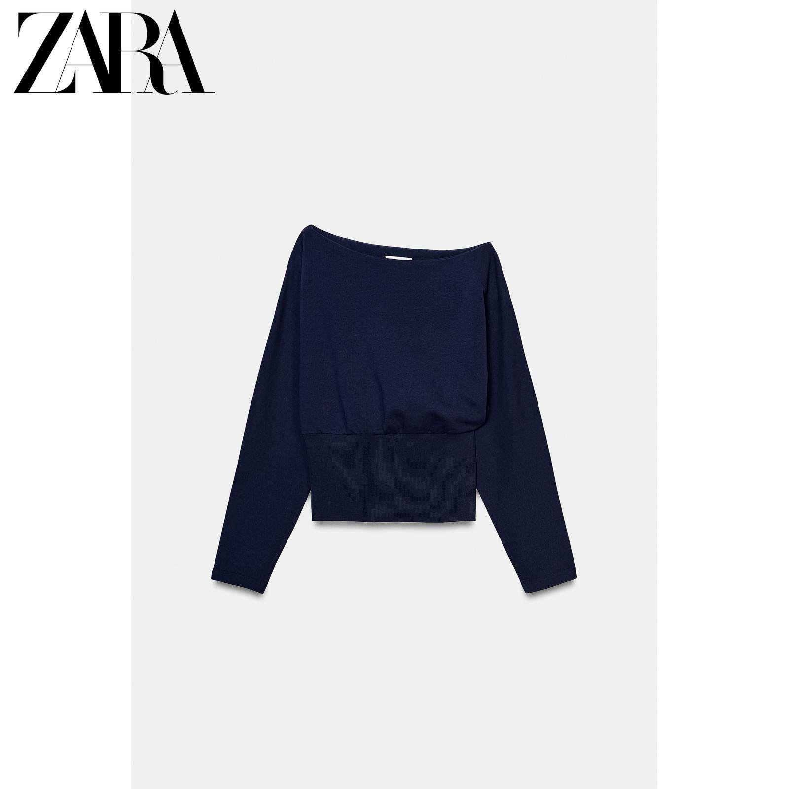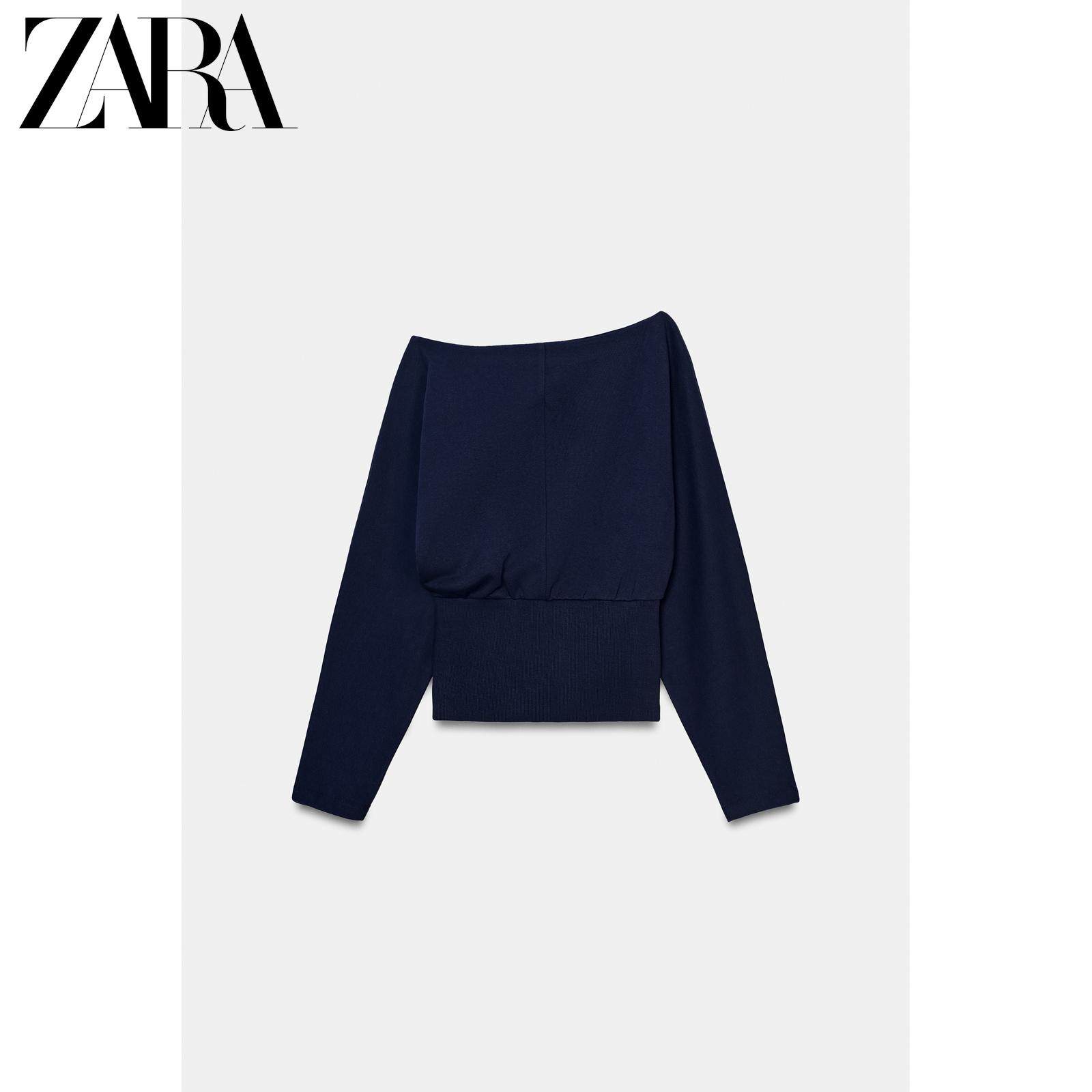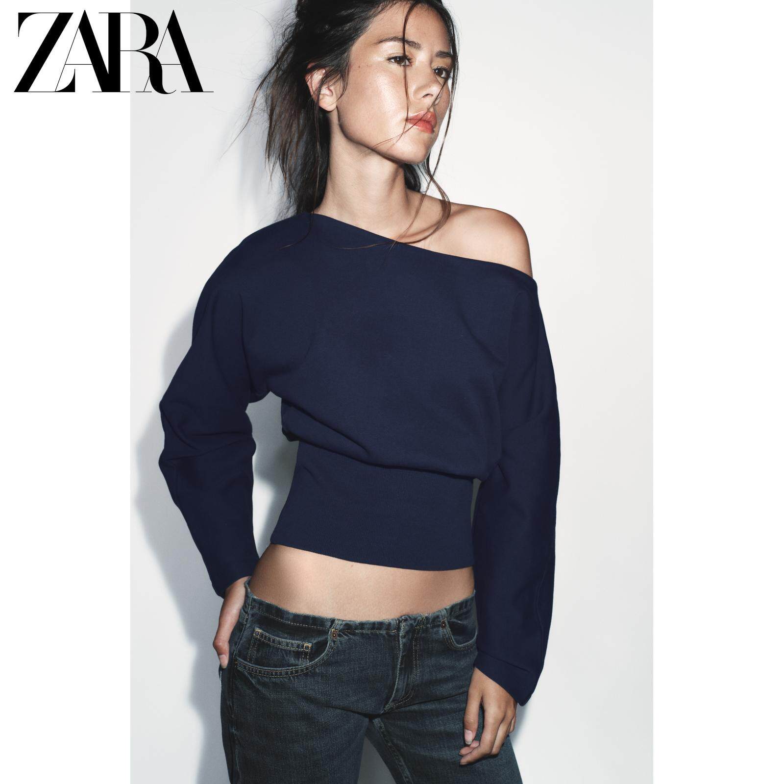 ZARA Новое поступление весны и лета 2026, женский однотонный хлопковый свитер с длинным рукавом и асимметричным вырезом 1058301 401