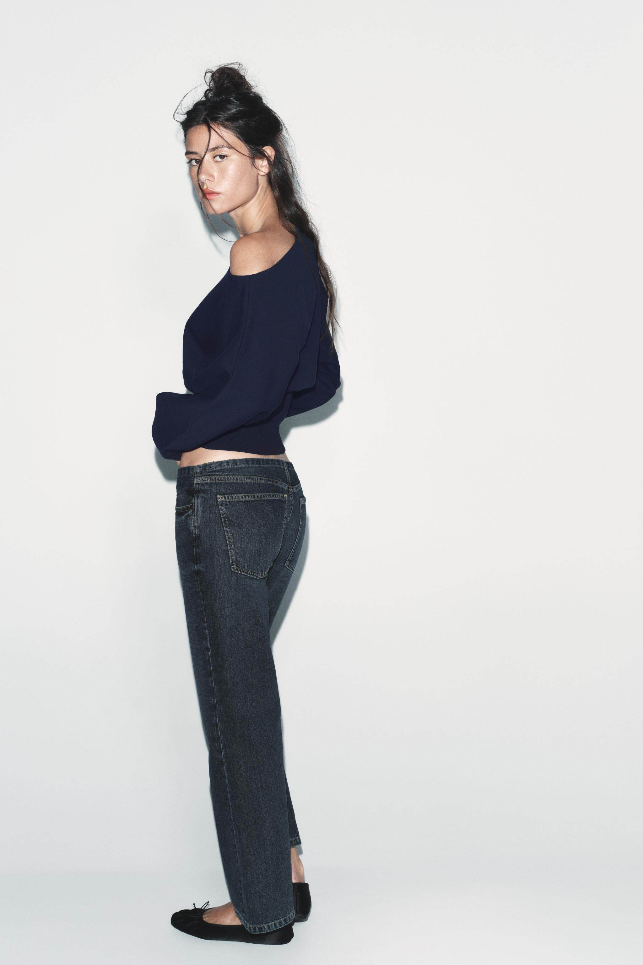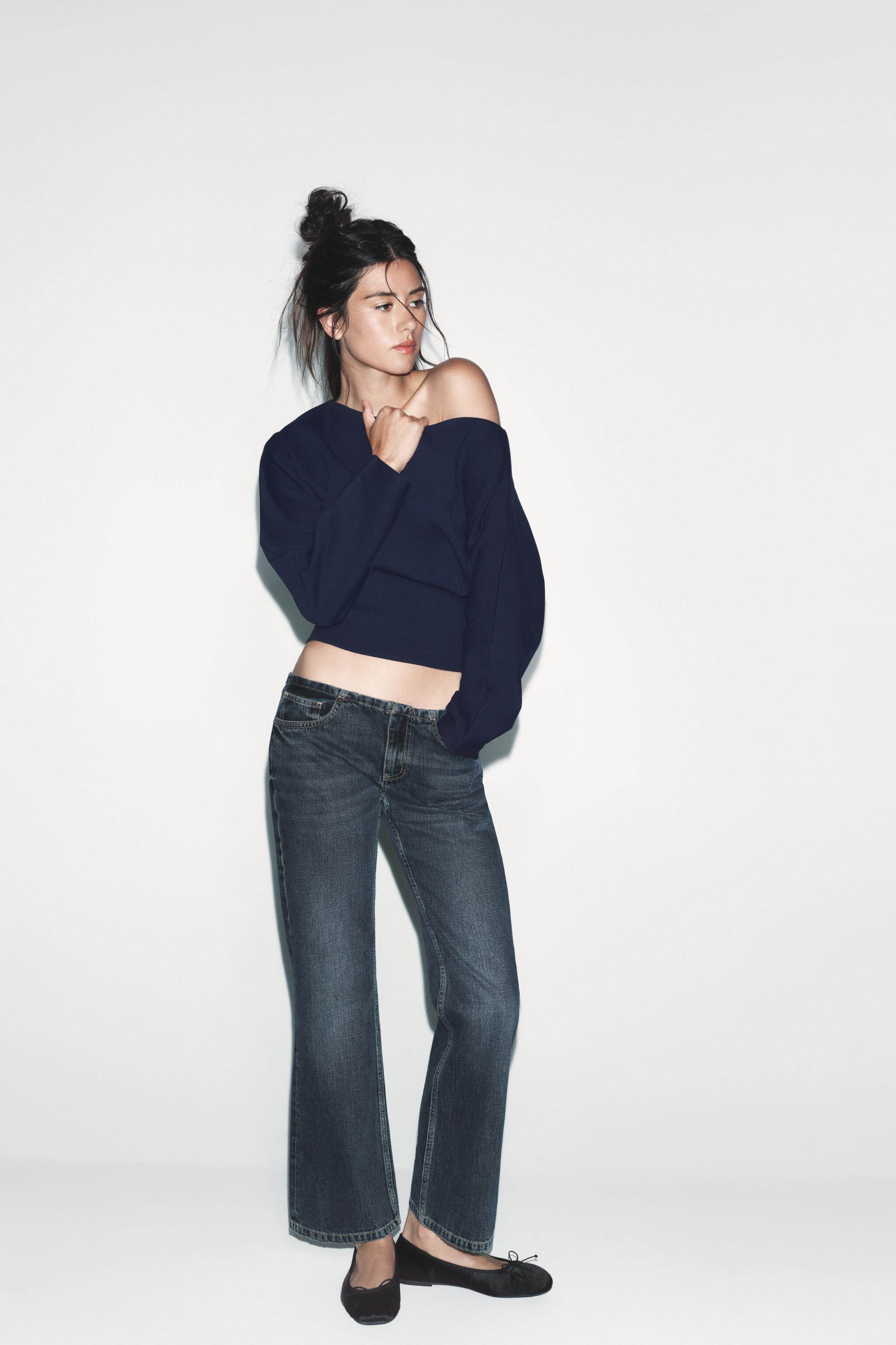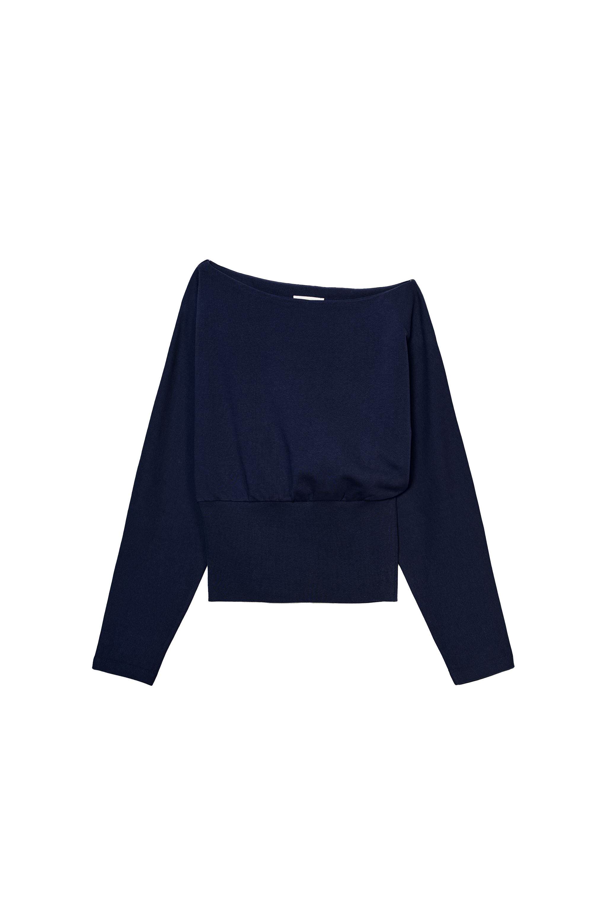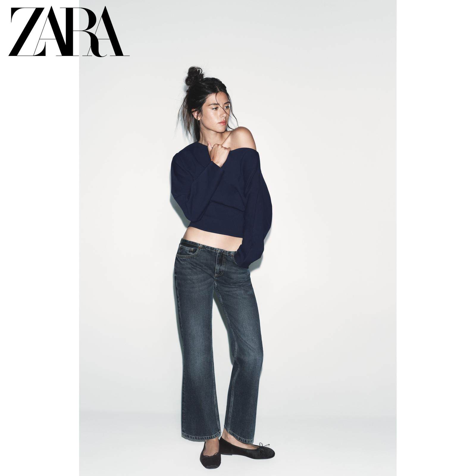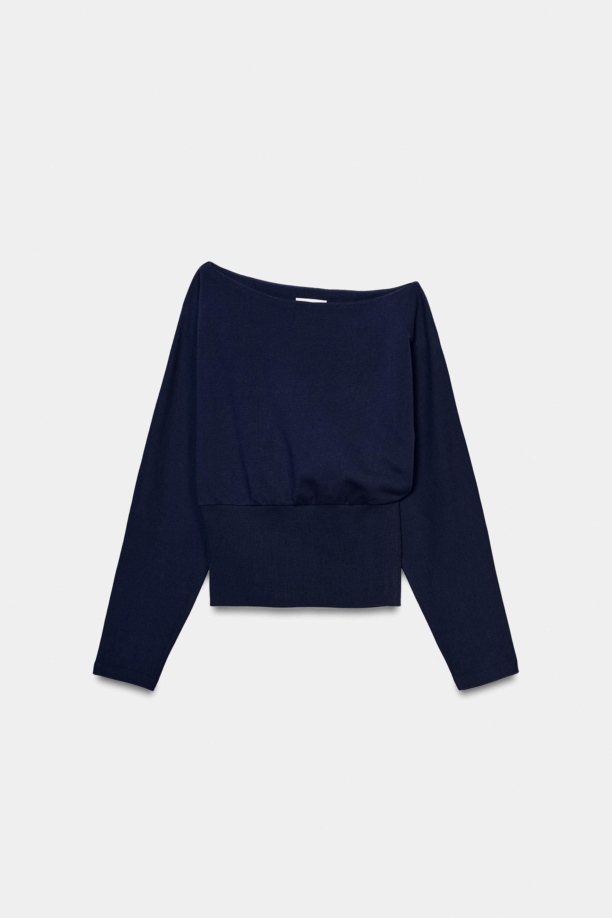 ZARA Новое поступление весны и лета 2026, женский однотонный хлопковый свитер с длинным рукавом и асимметричным вырезом 1058301 401