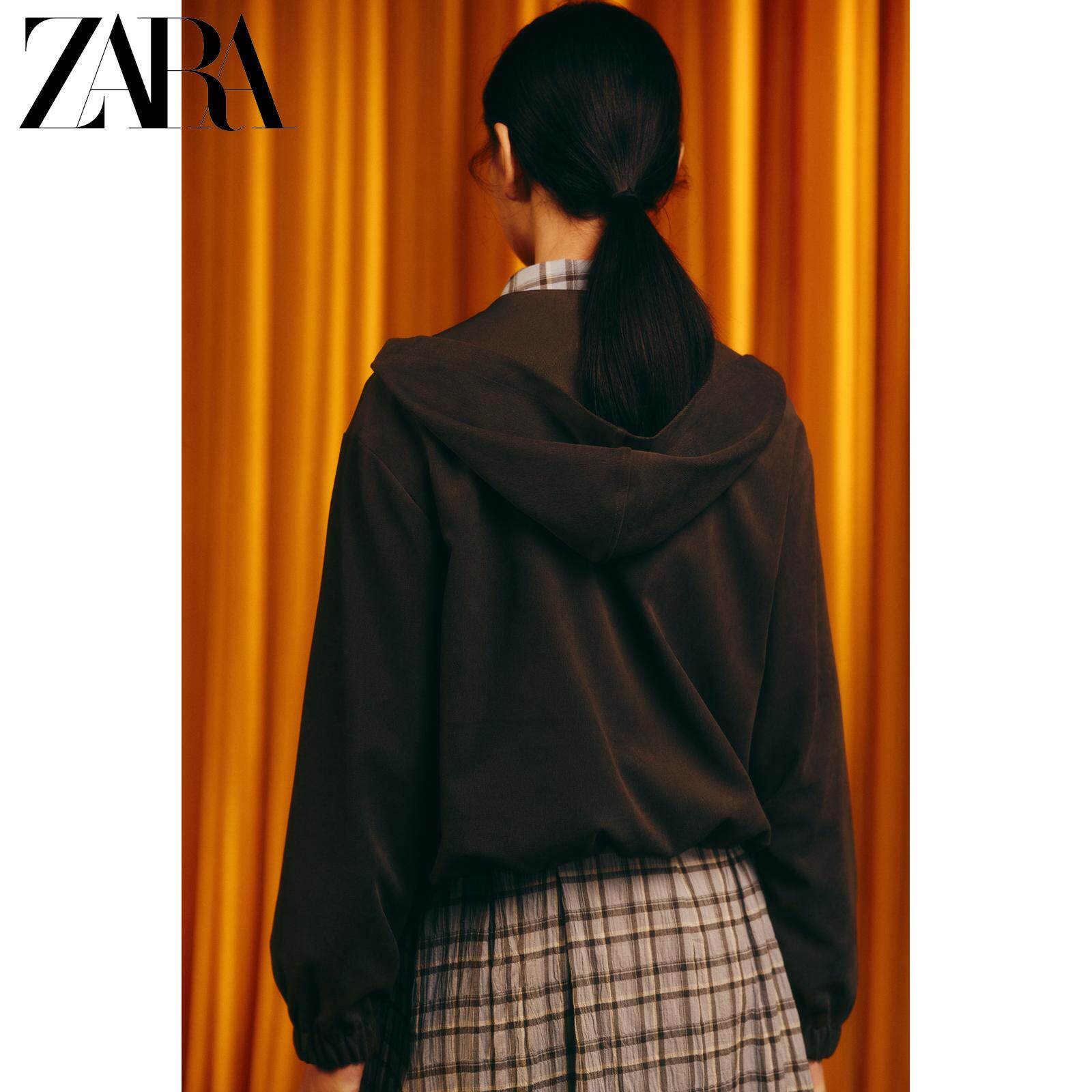 ZARA Новинка весны и лета 2026, женский однотонный однотонный повседневный свитер с капюшоном и молнией с длинными рукавами 8372133 922