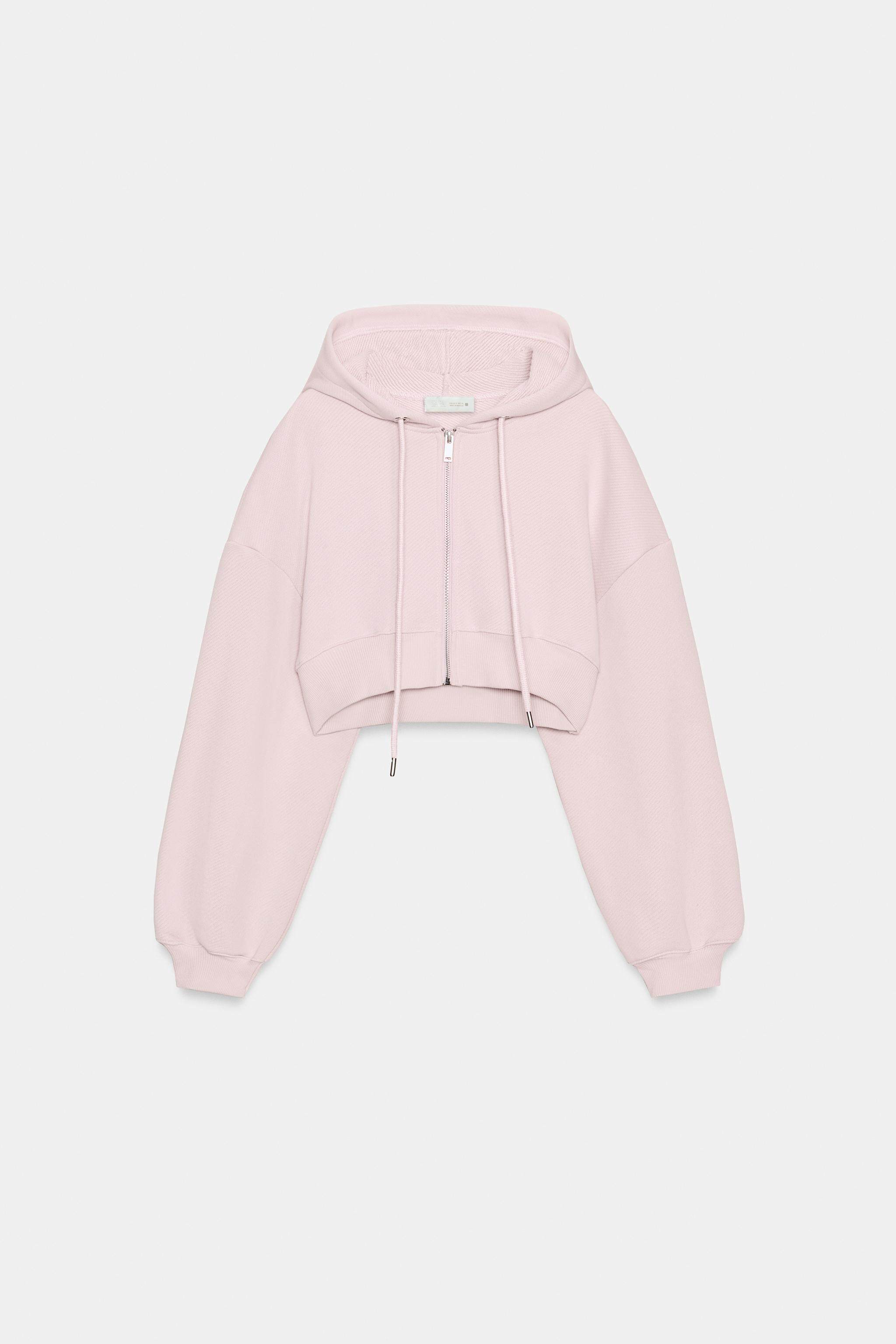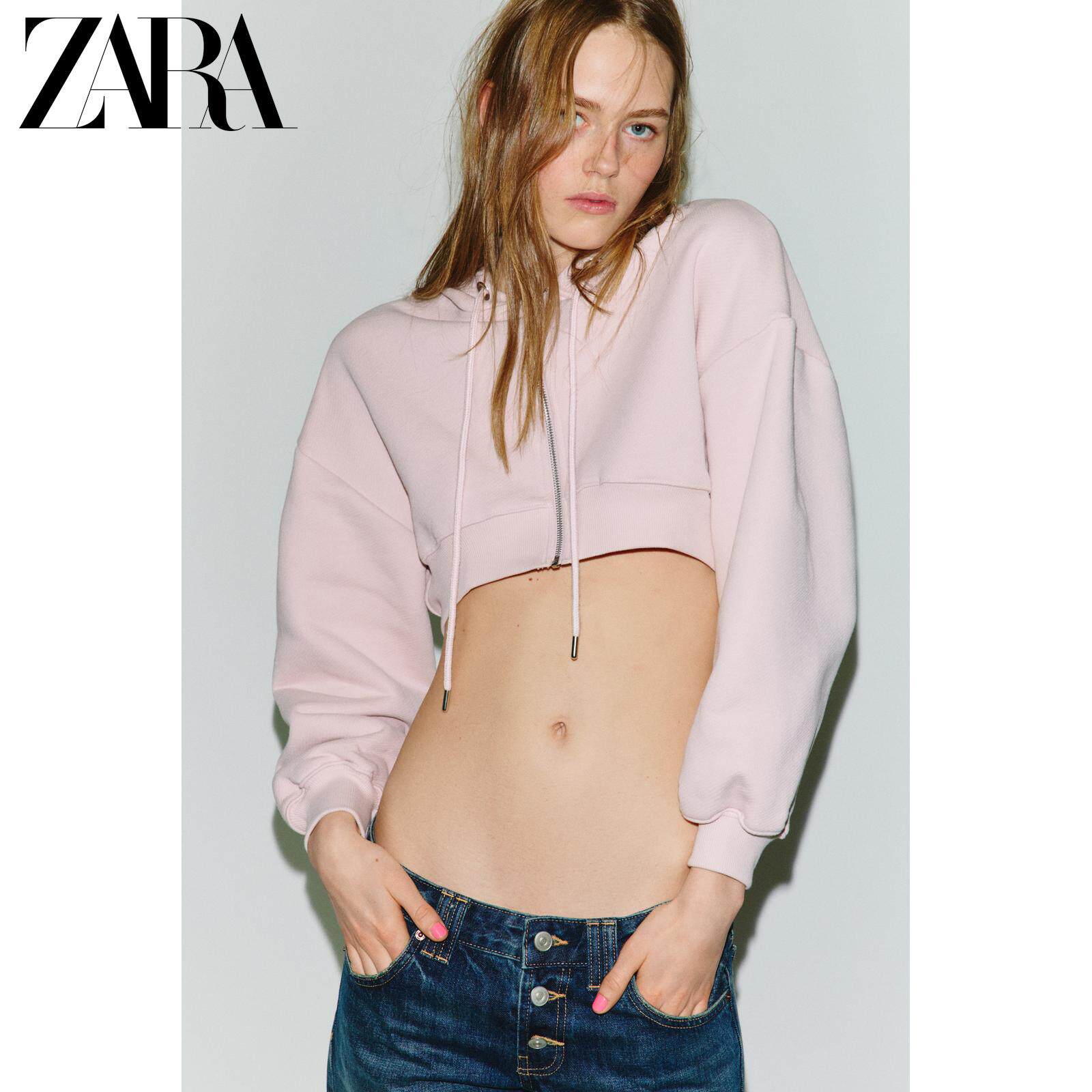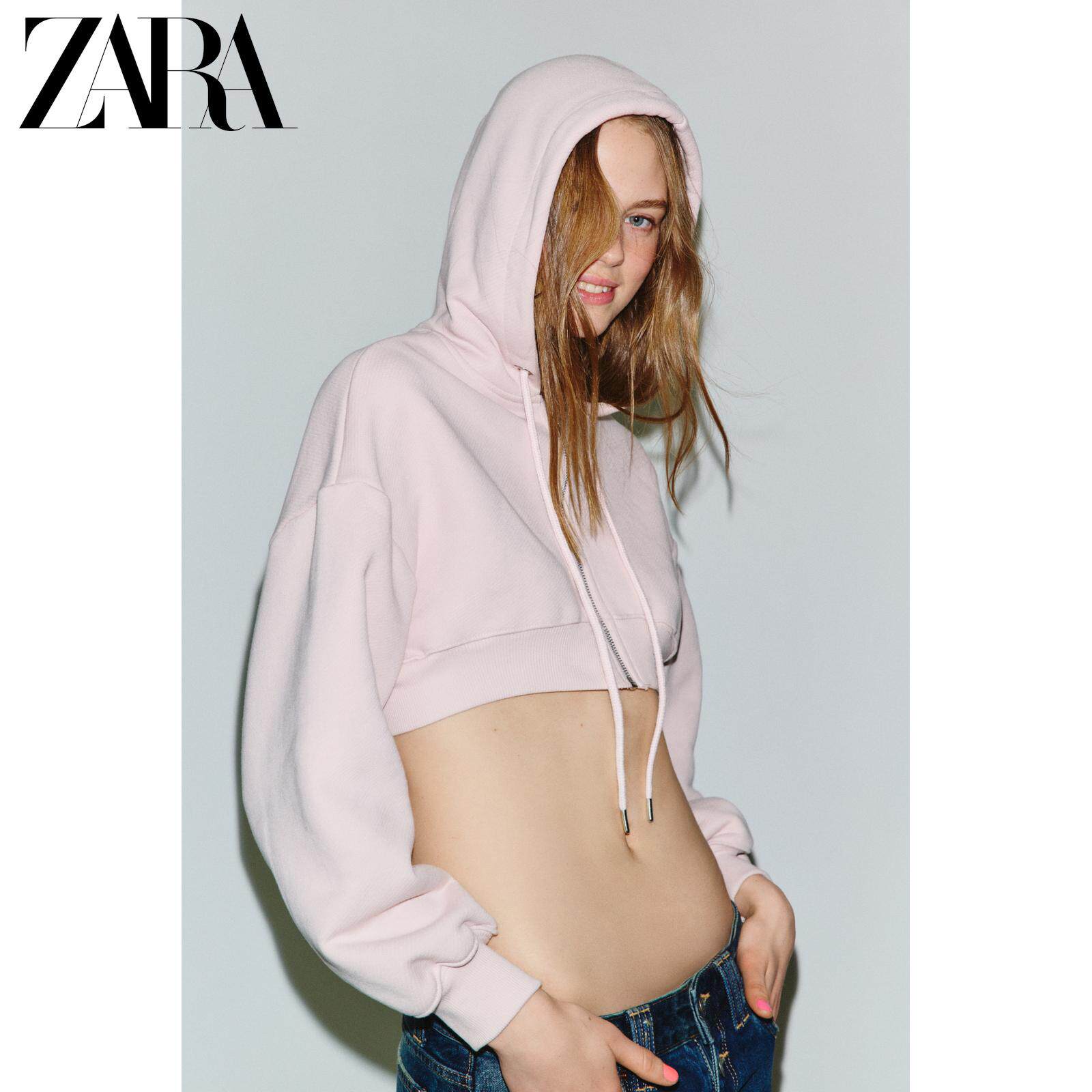 ZARA Новинка весны и лета 2026, женская короткая толстовка с длинными рукавами и круглым вырезом и капюшоном на талии 5584352 687
