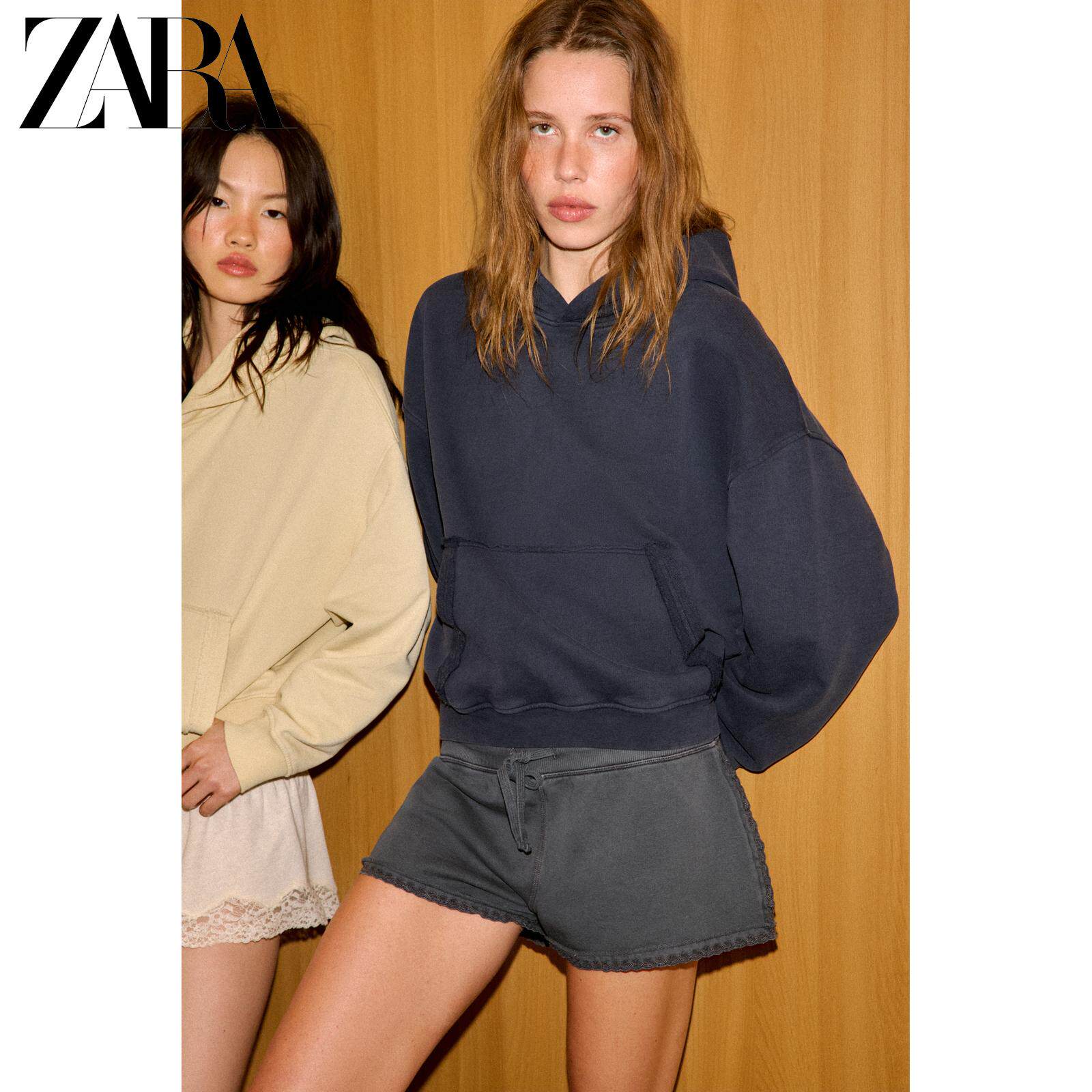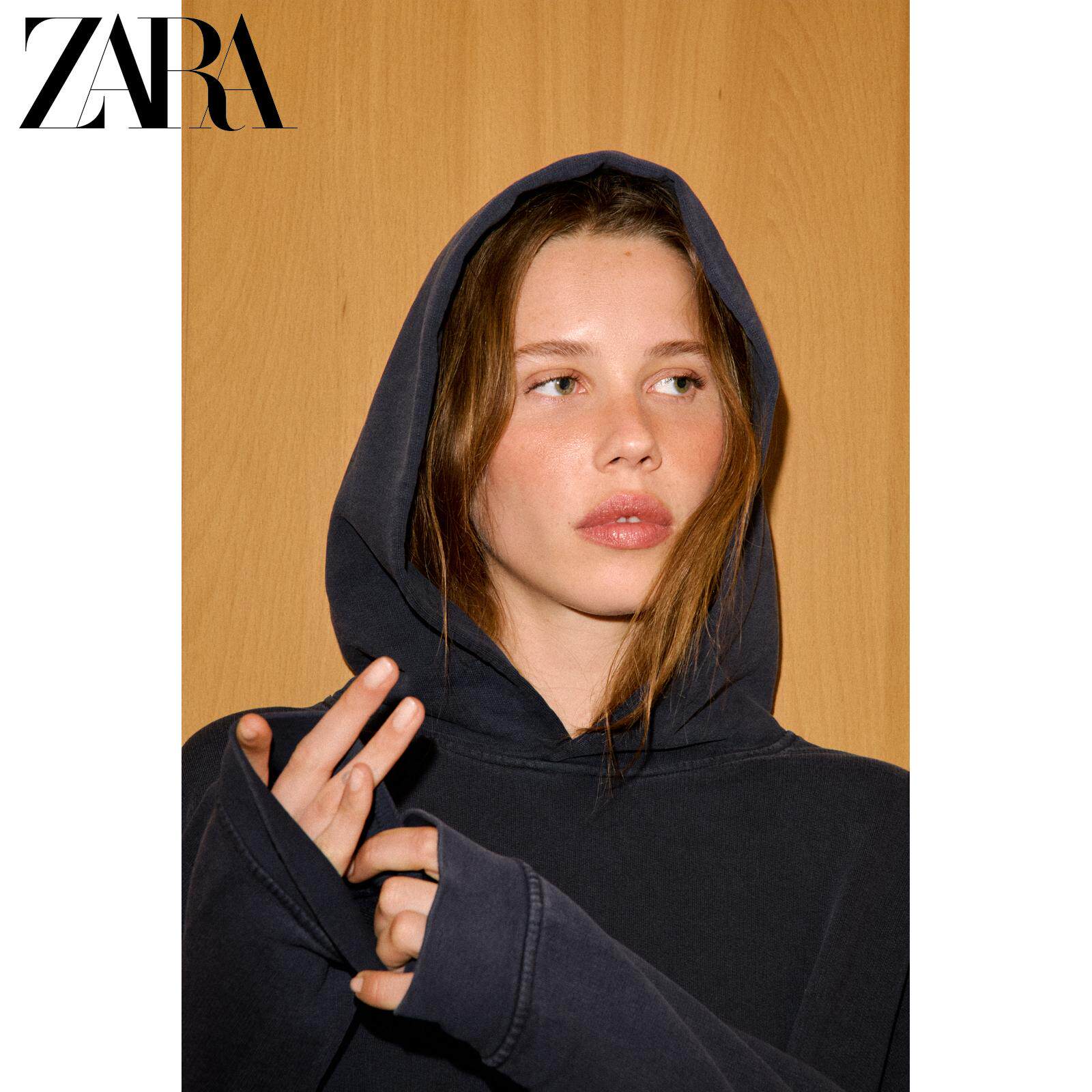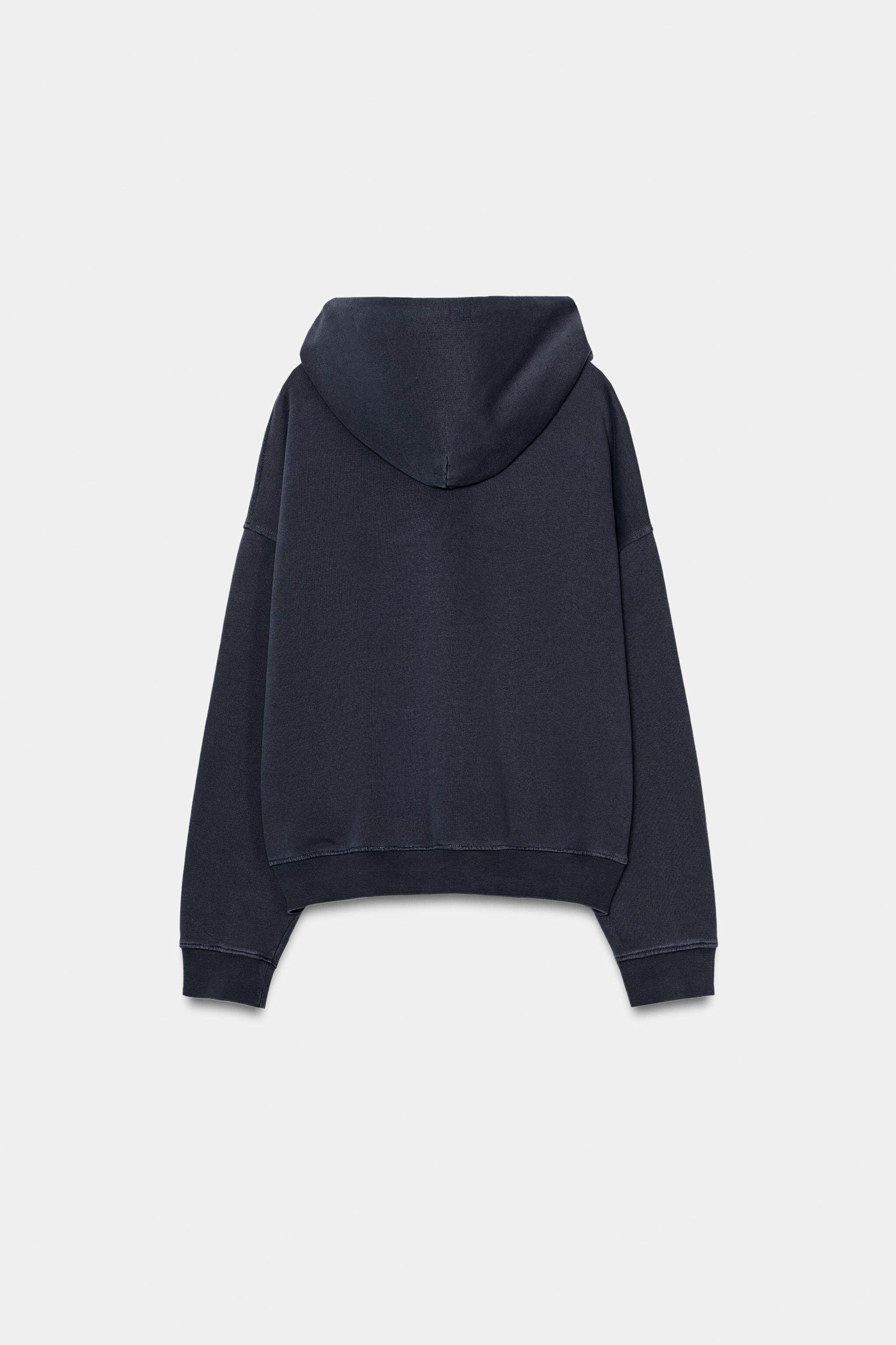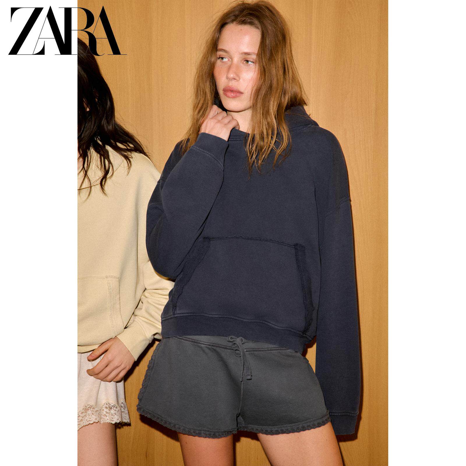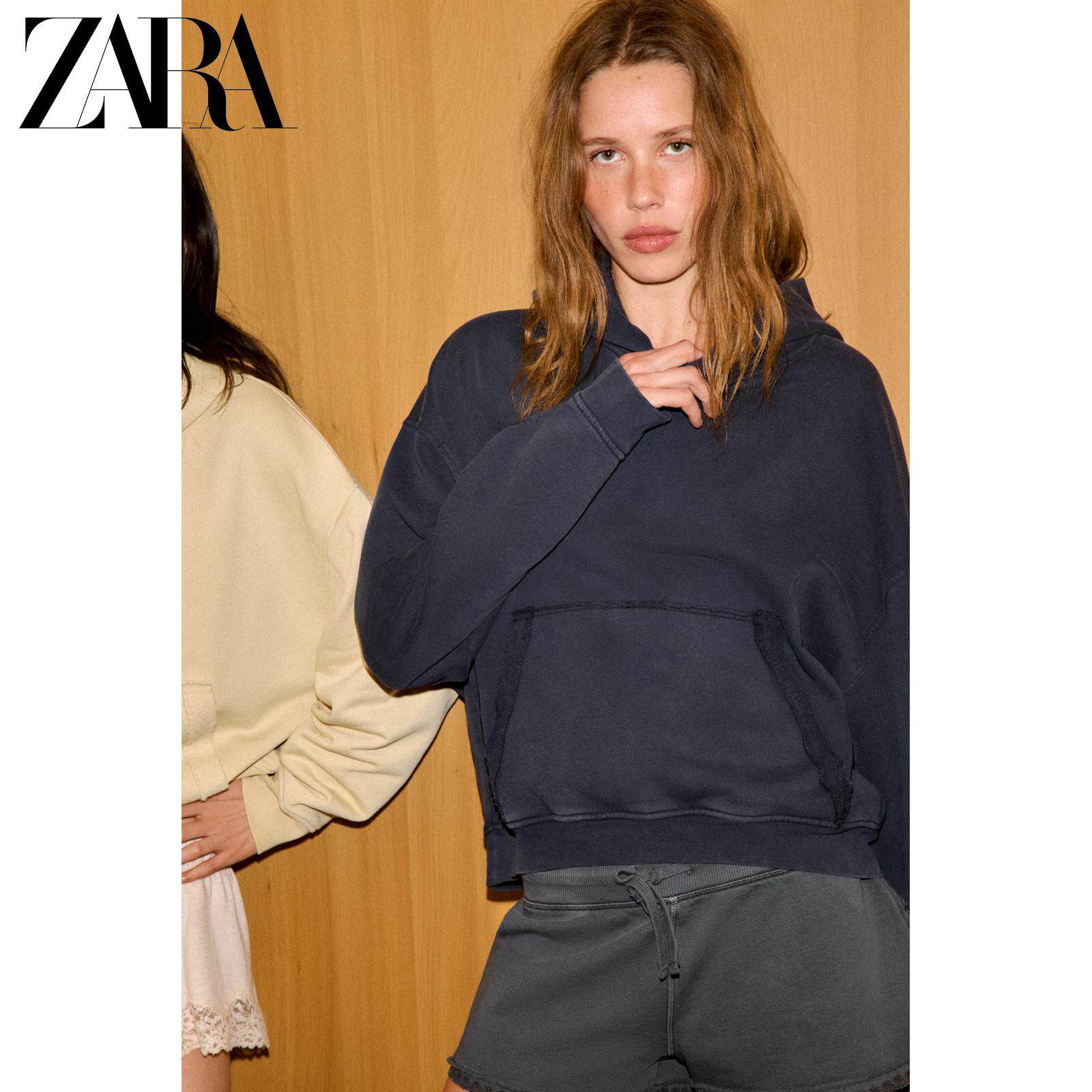 ZARA Новинка весны и лета 2026, женская повседневная толстовка с капюшоном с длинными рукавами и эффектом стирки 5643034 400