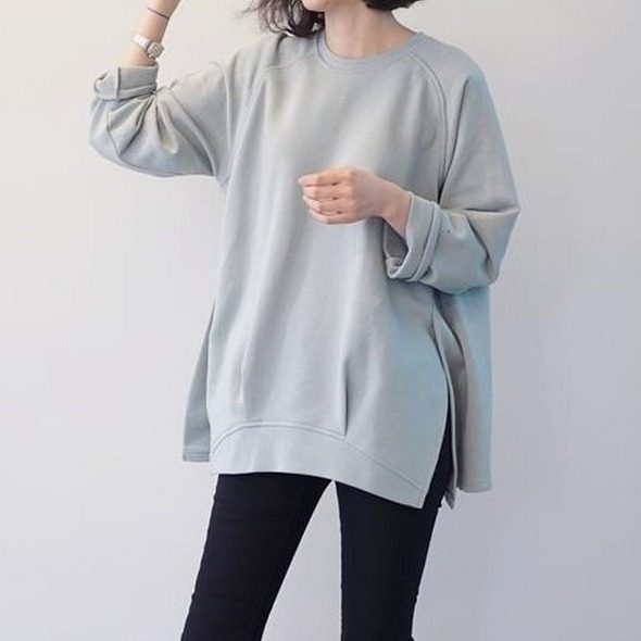 Дизайнерский лонгслив с круглым воротником, нарукавники, демисезонная толстовка, 2023, оверсайз